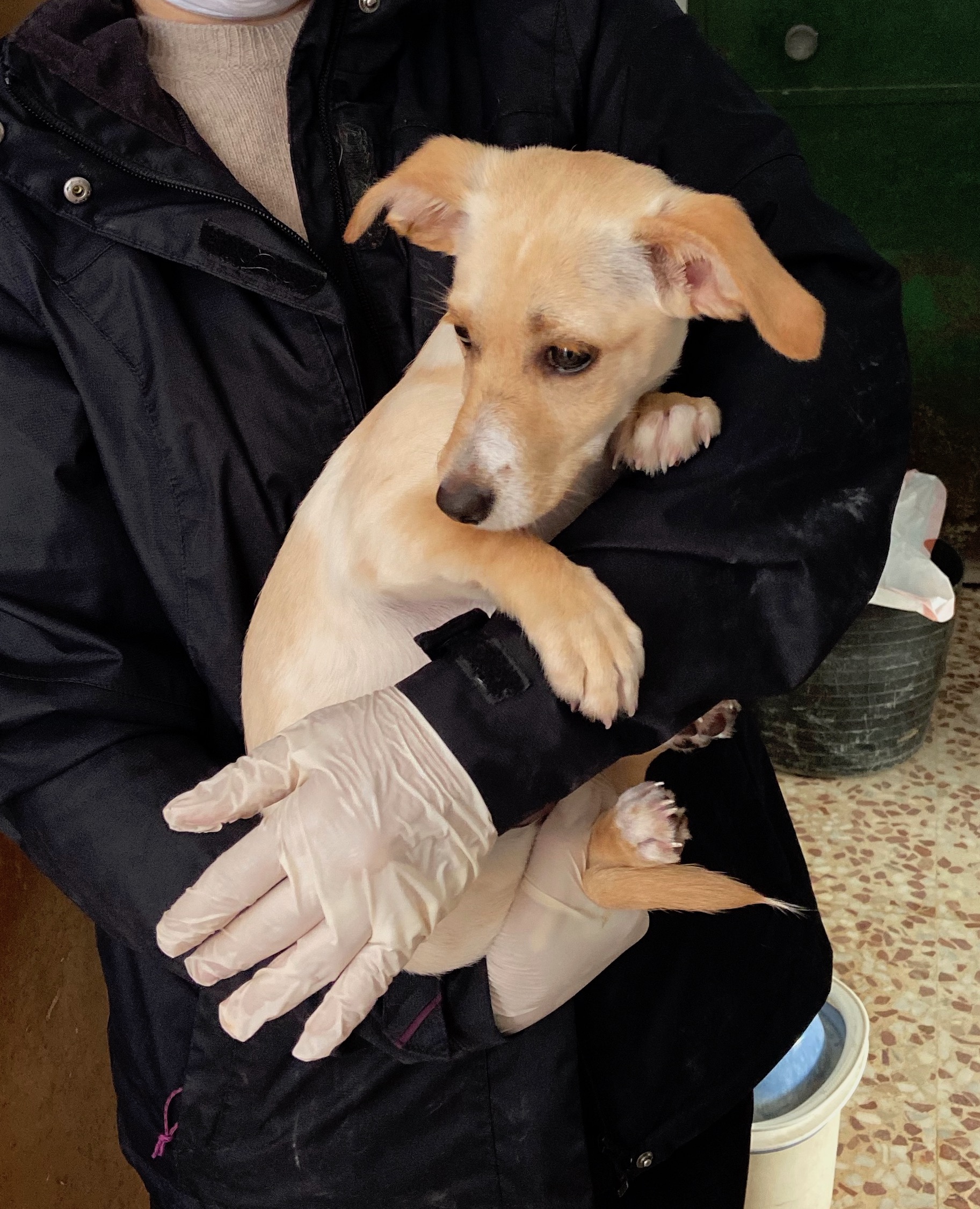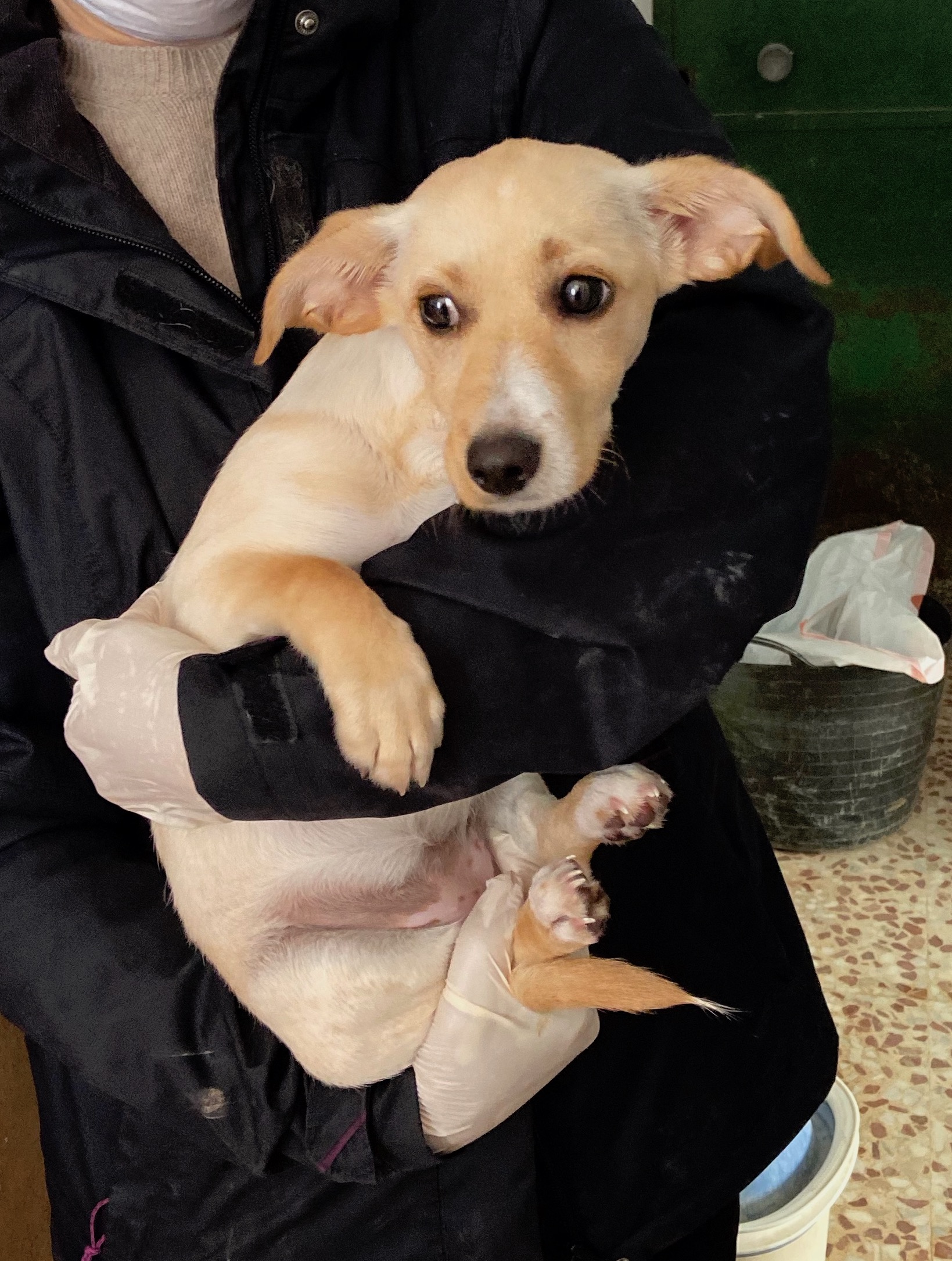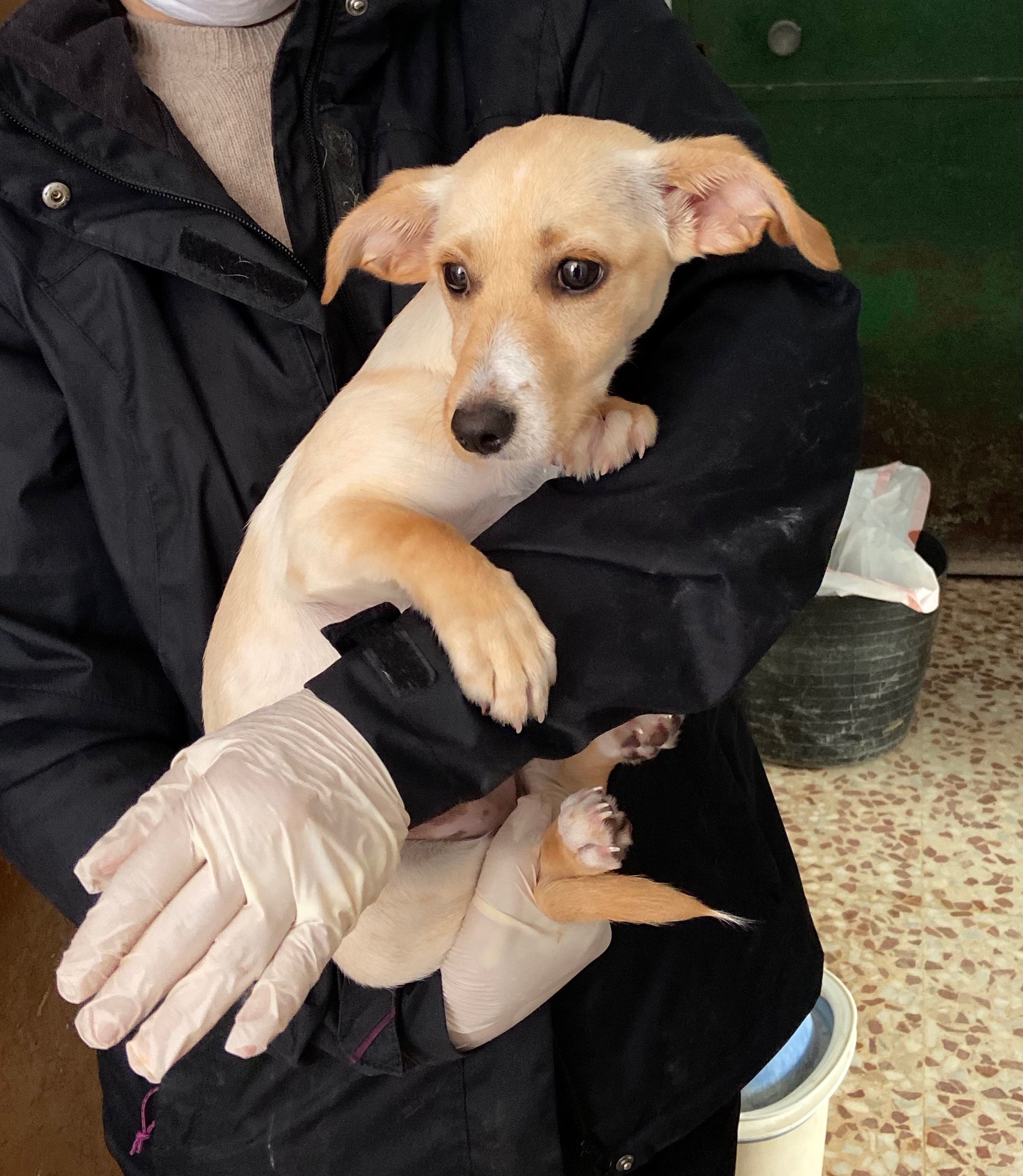 El sábado por la mañana nos llamó la policia para decirnos que dos mujeres habian encontrado una cachorrita por la calle Calzada.