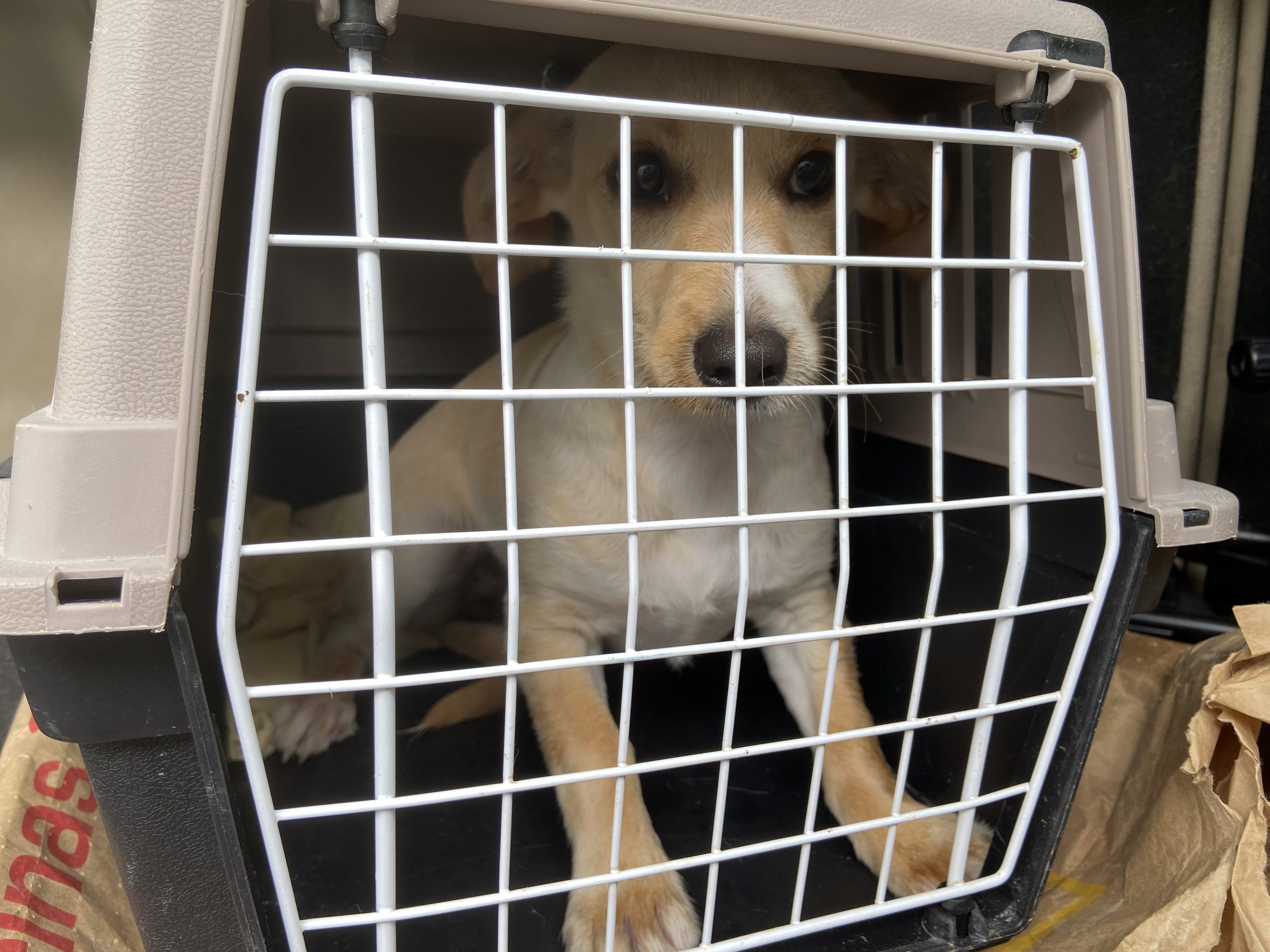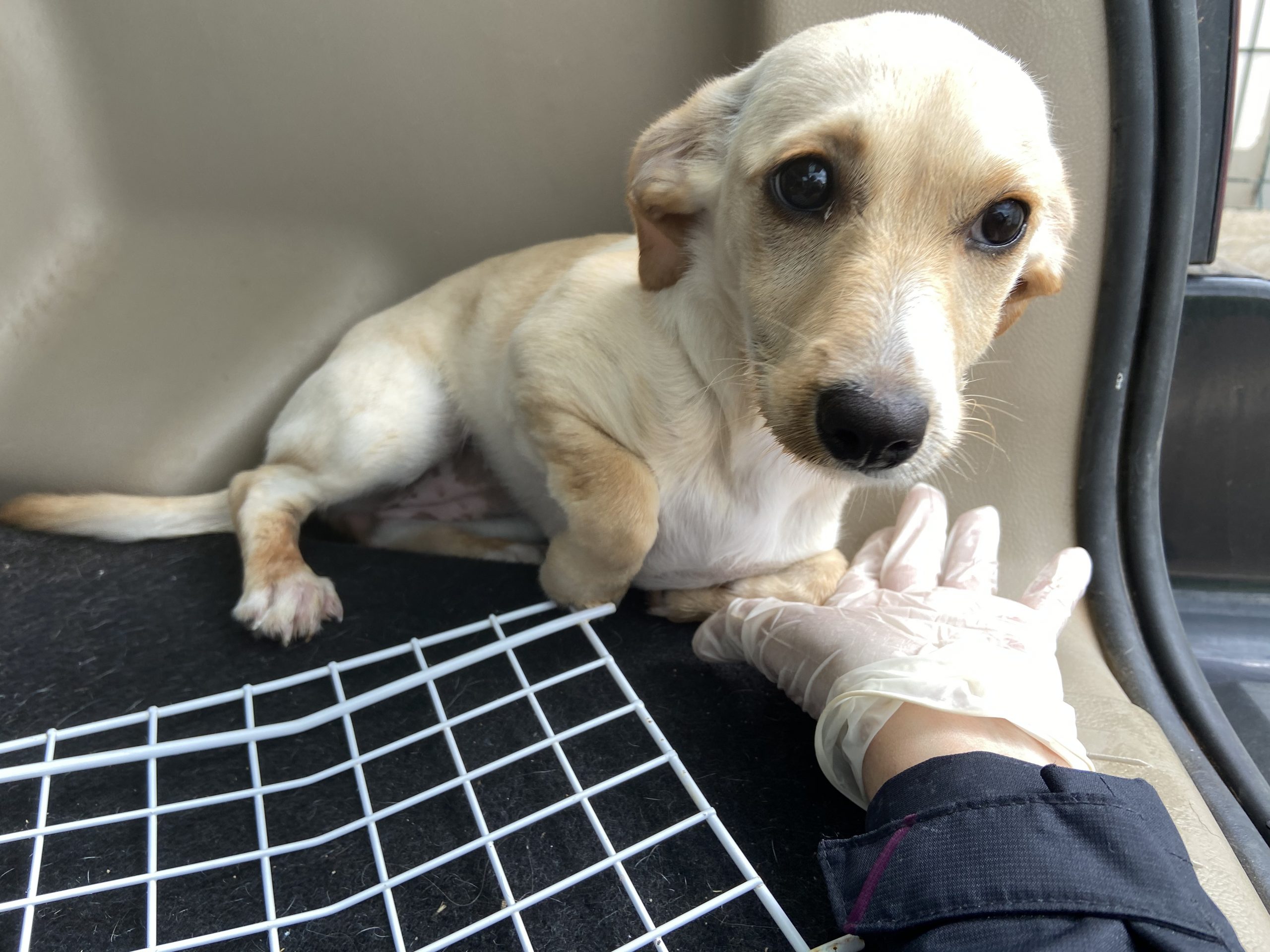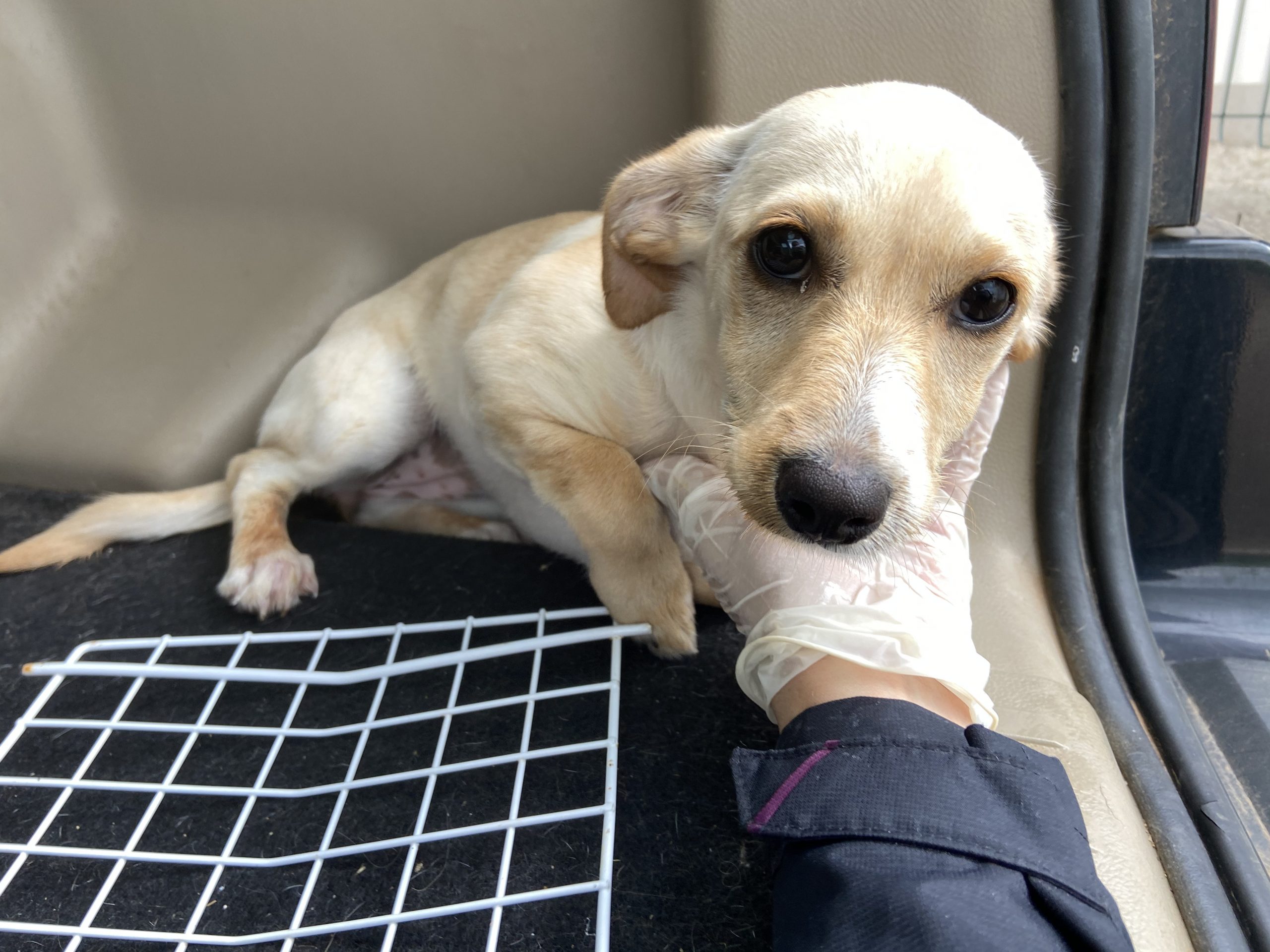 El sábado por la mañana nos llamó la policia para decirnos que dos mujeres habian encontrado una cachorrita por la calle Calzada.