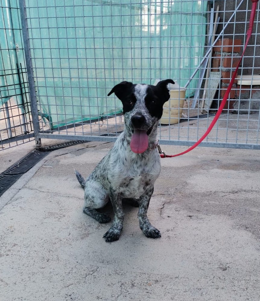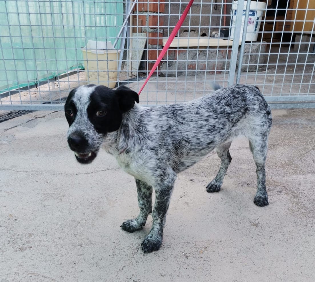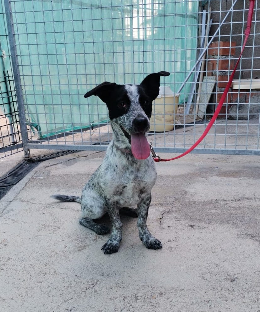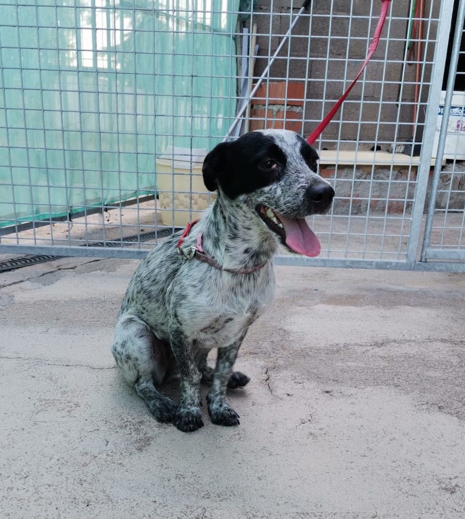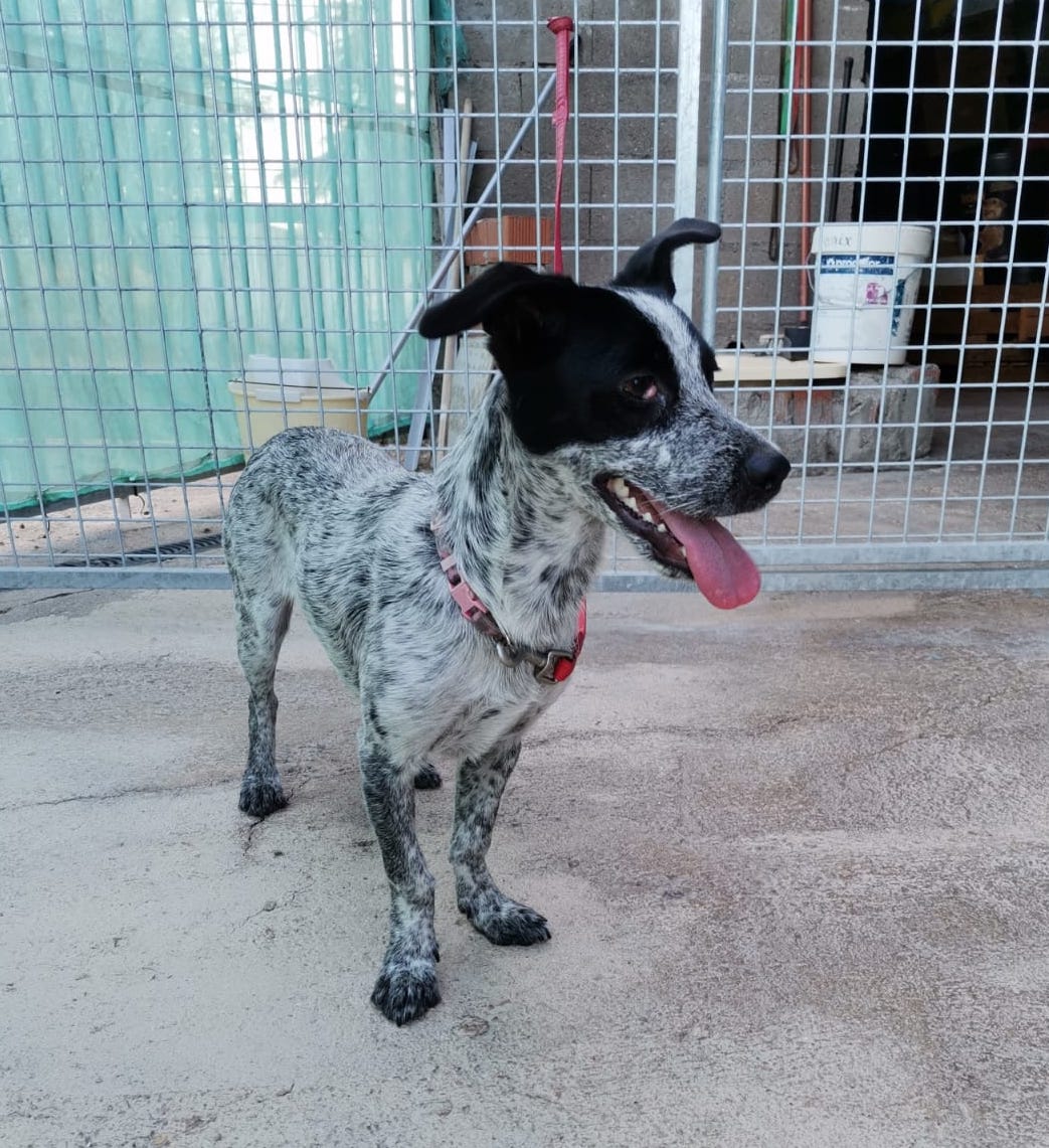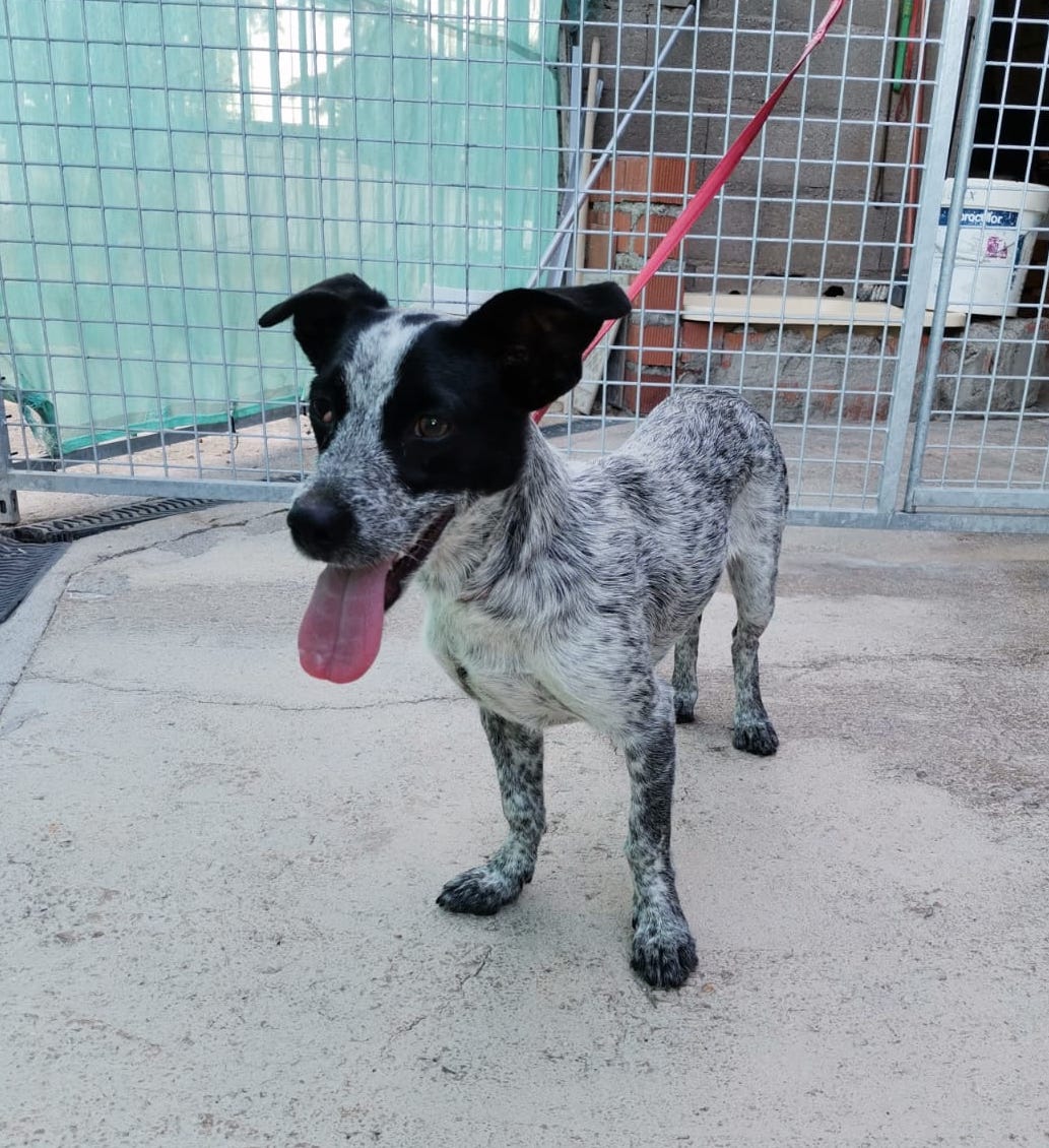 Perra muy pequeña y jovencita abandonada en una calle de Puertollano.