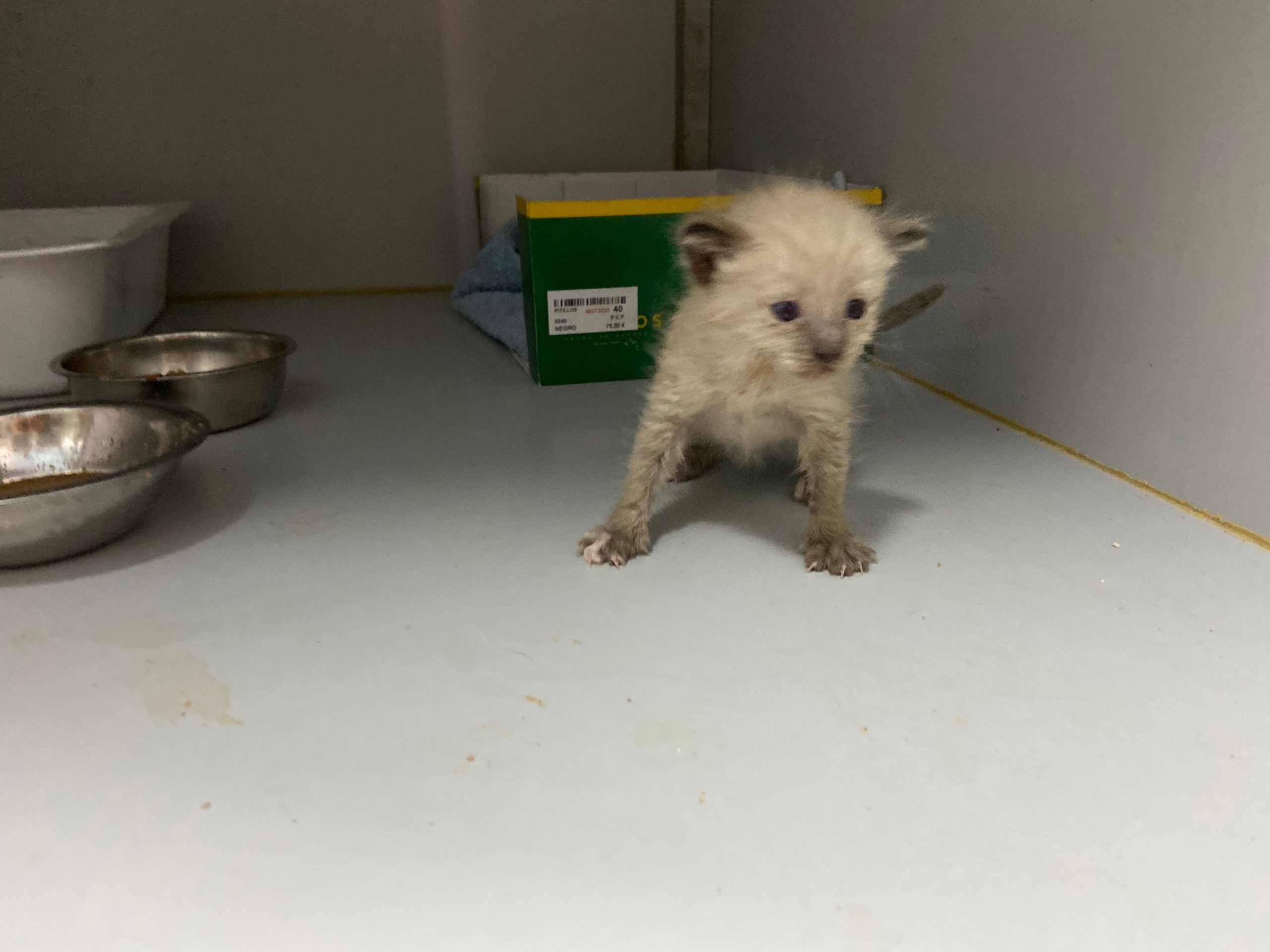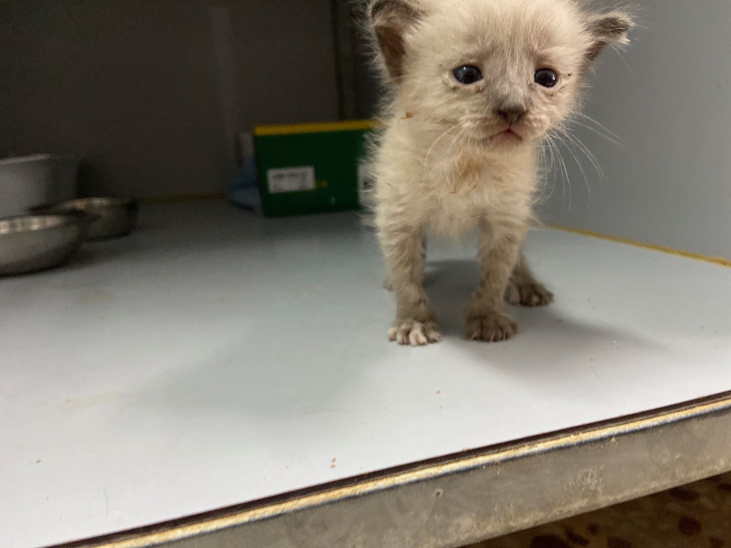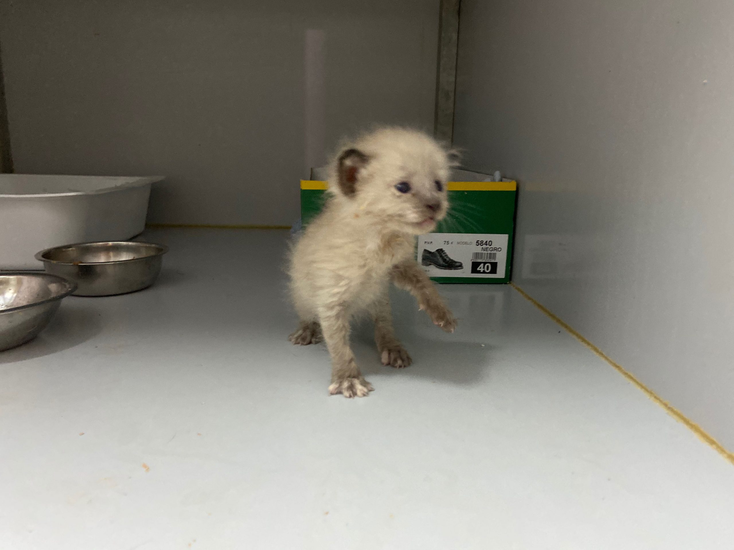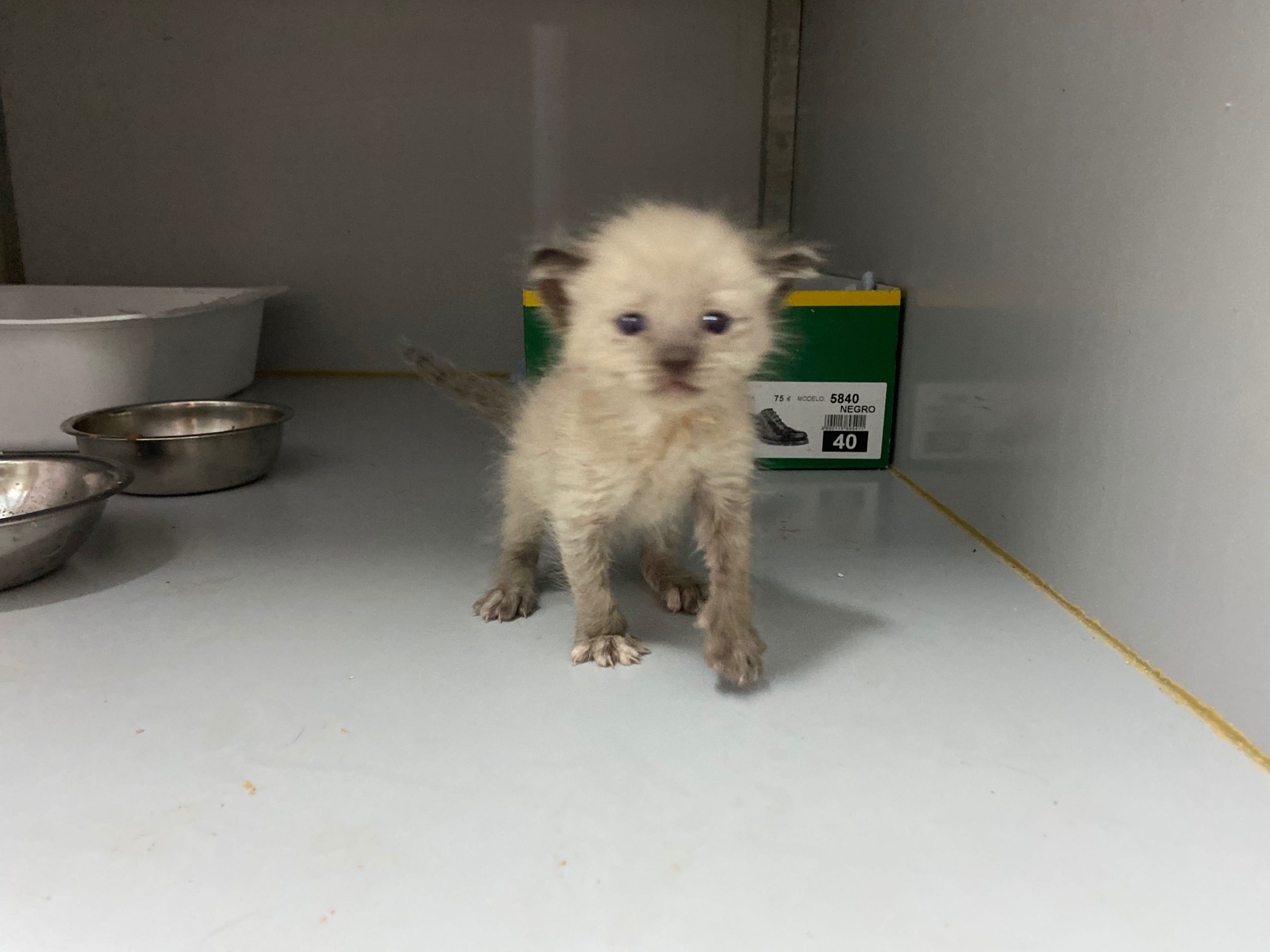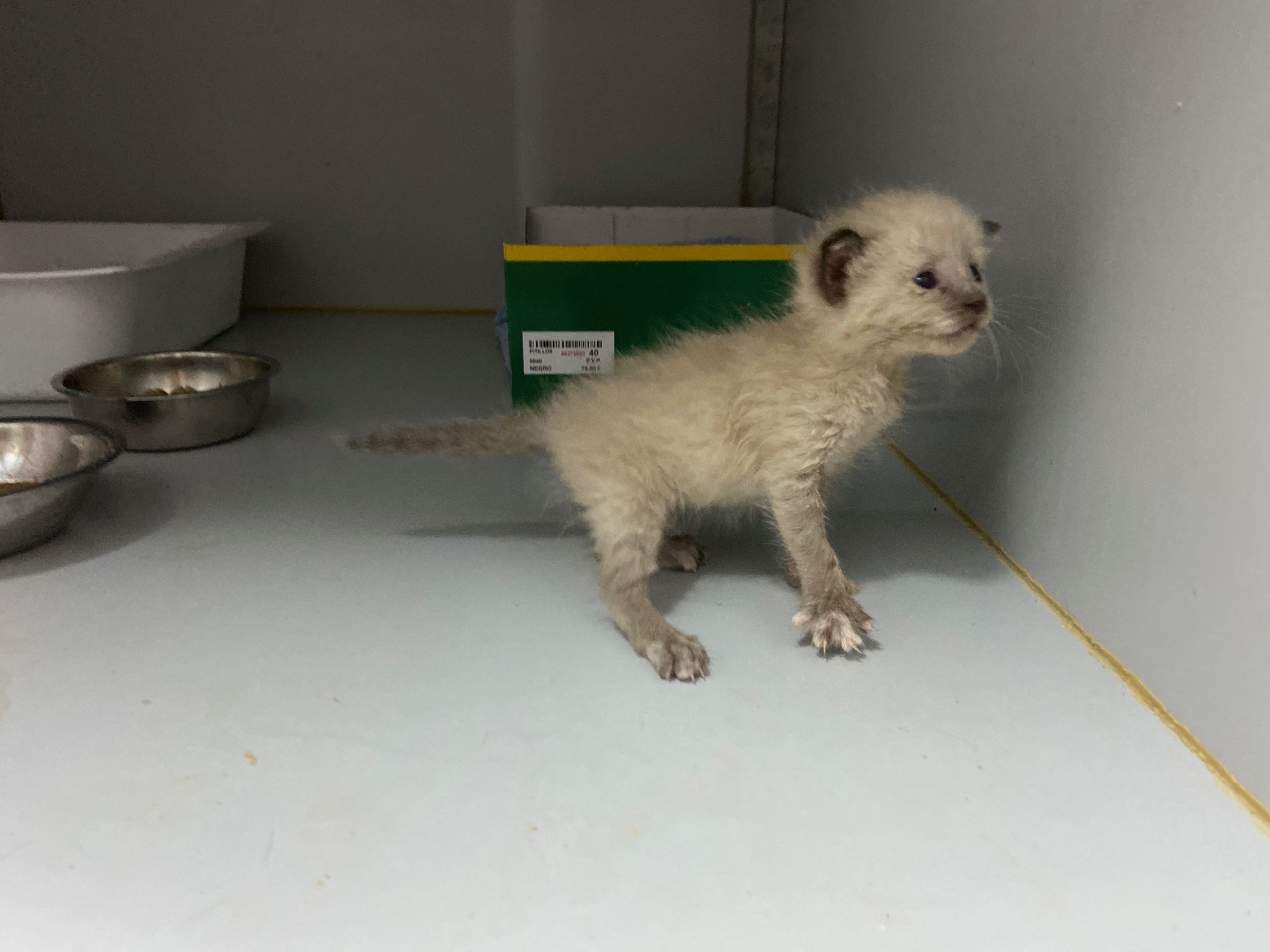 Michonne es una gatita siamesa de tan solo 1 mes, no puede estar en el albergue, ya come sola.