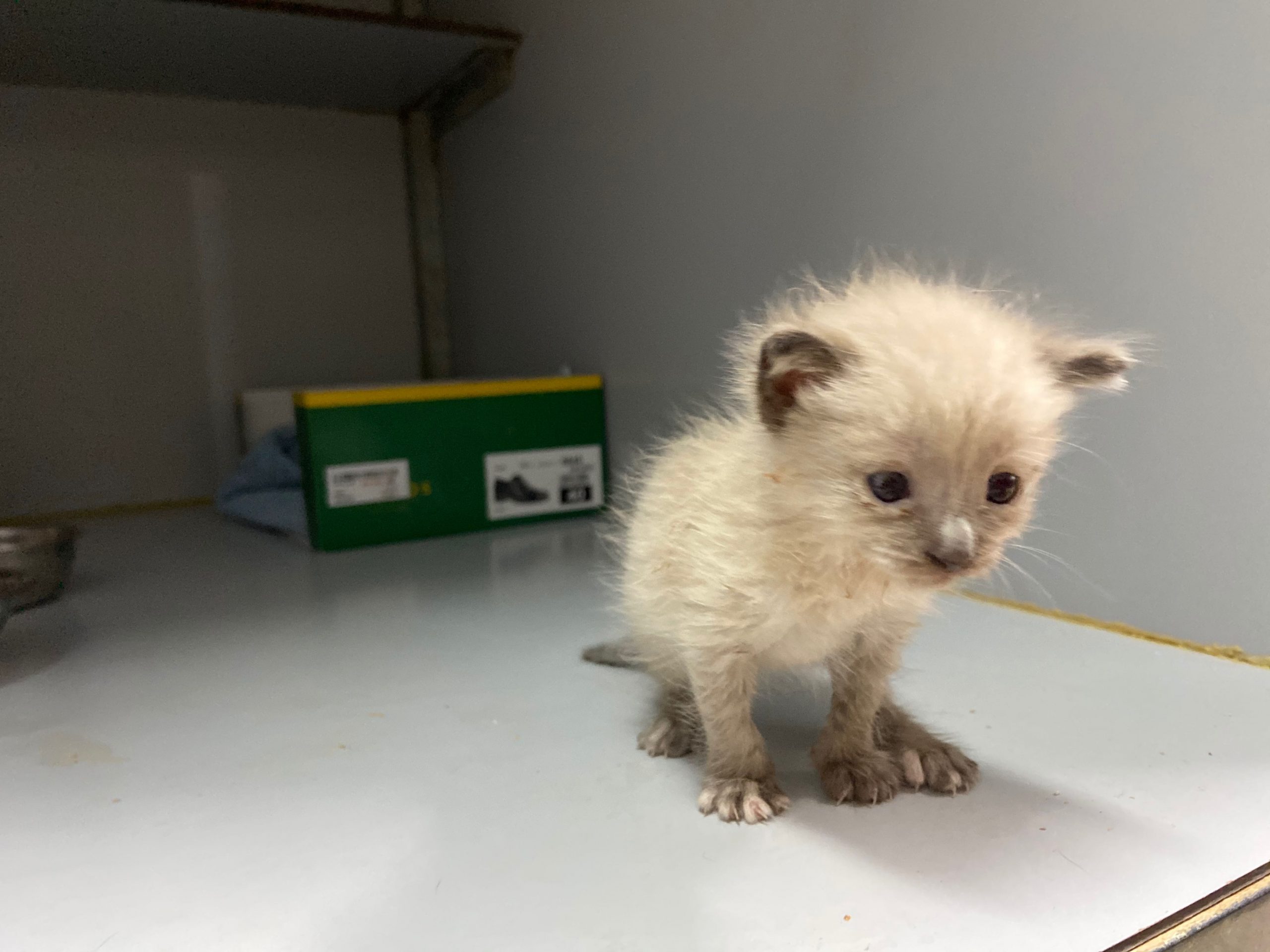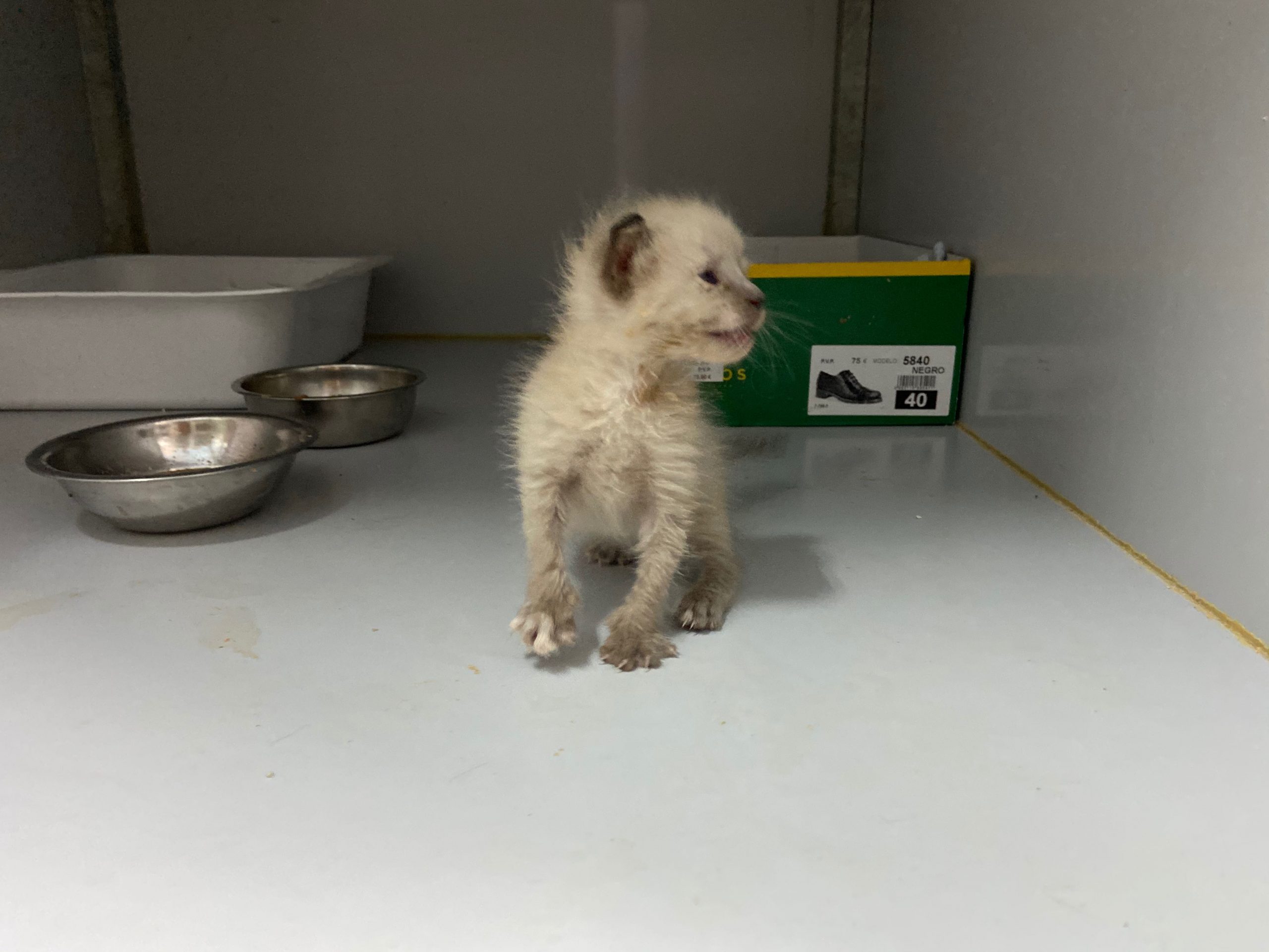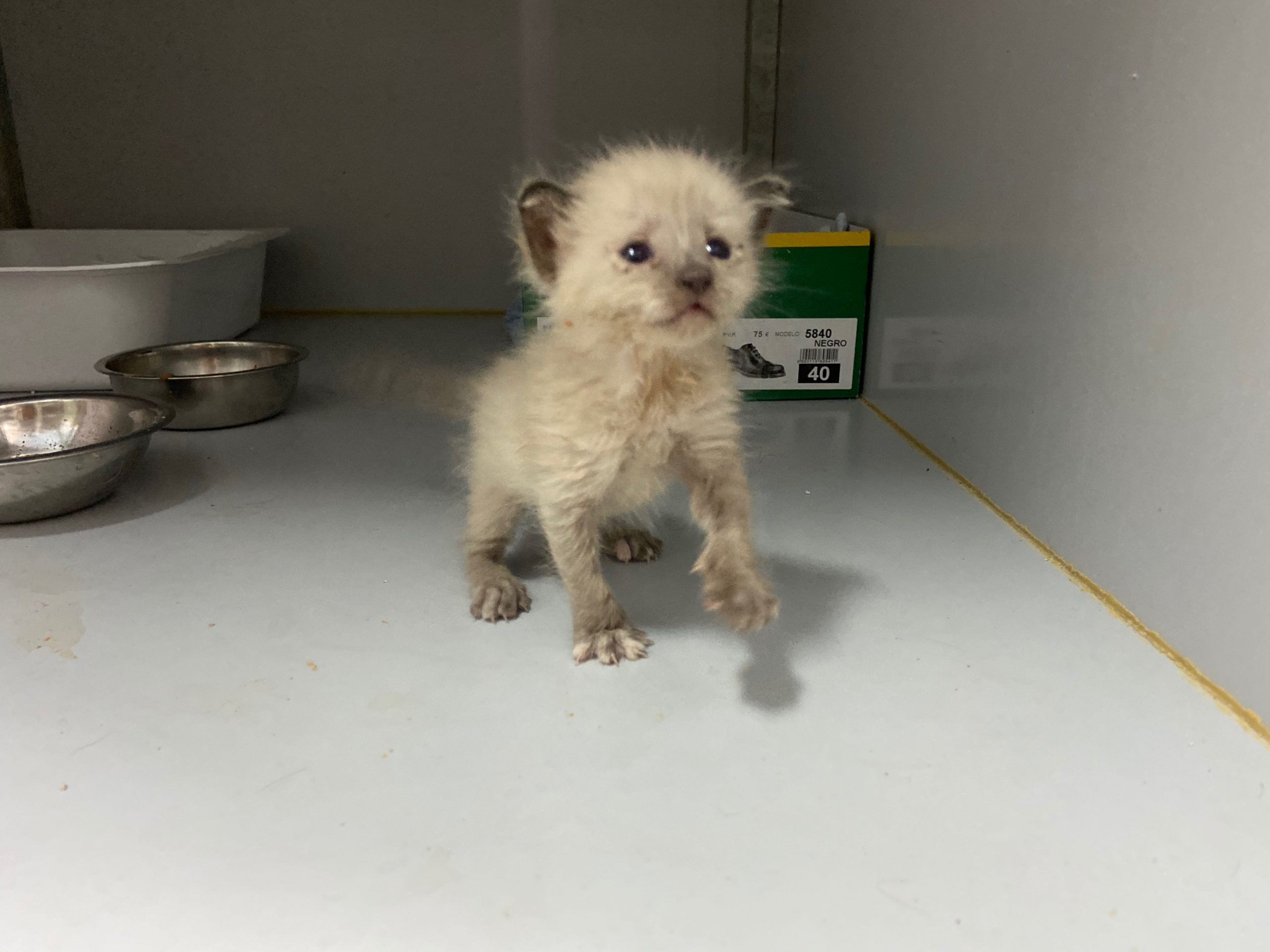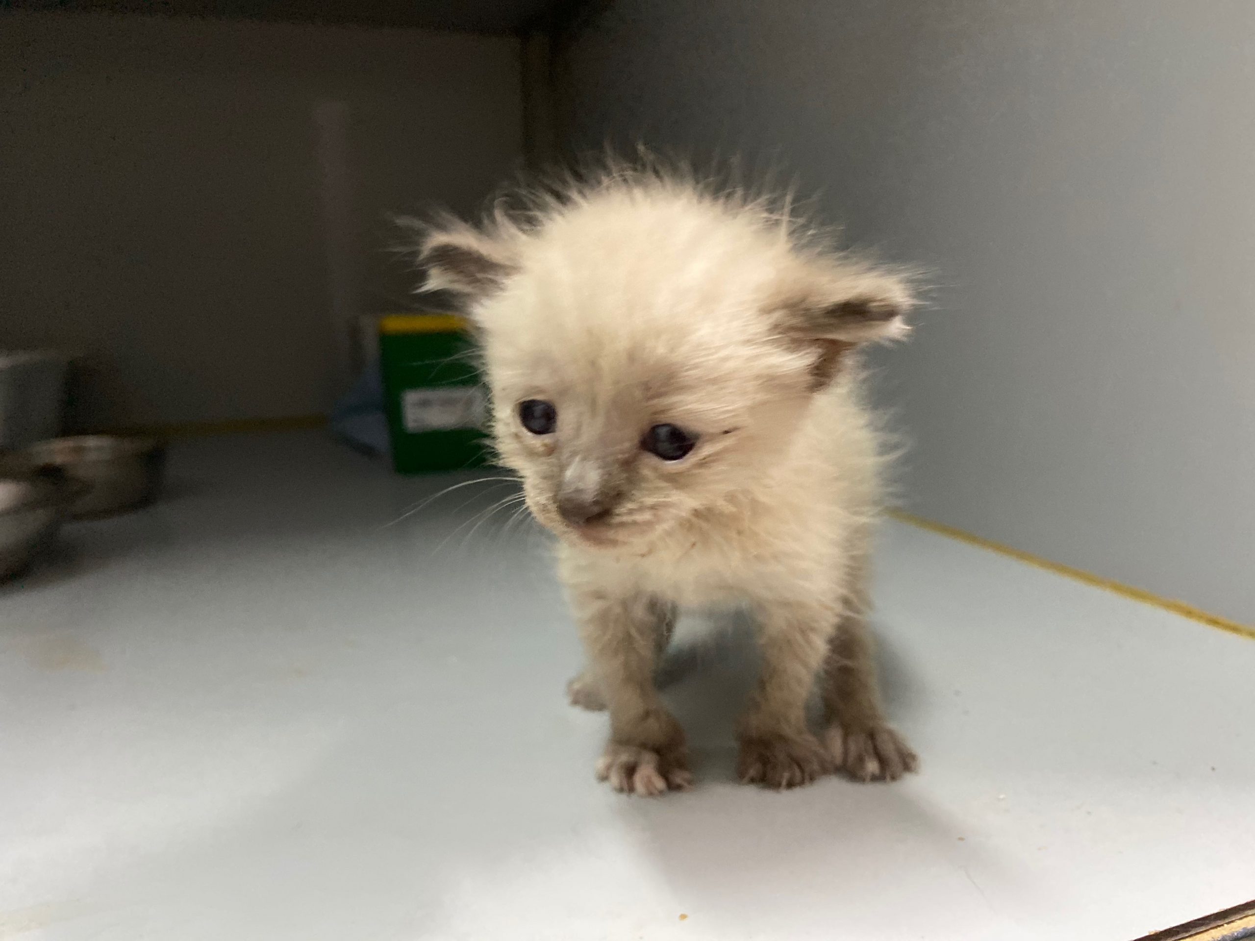Michonne es una gatita siamesa de tan solo 1 mes, no puede estar en el albergue, ya come sola.