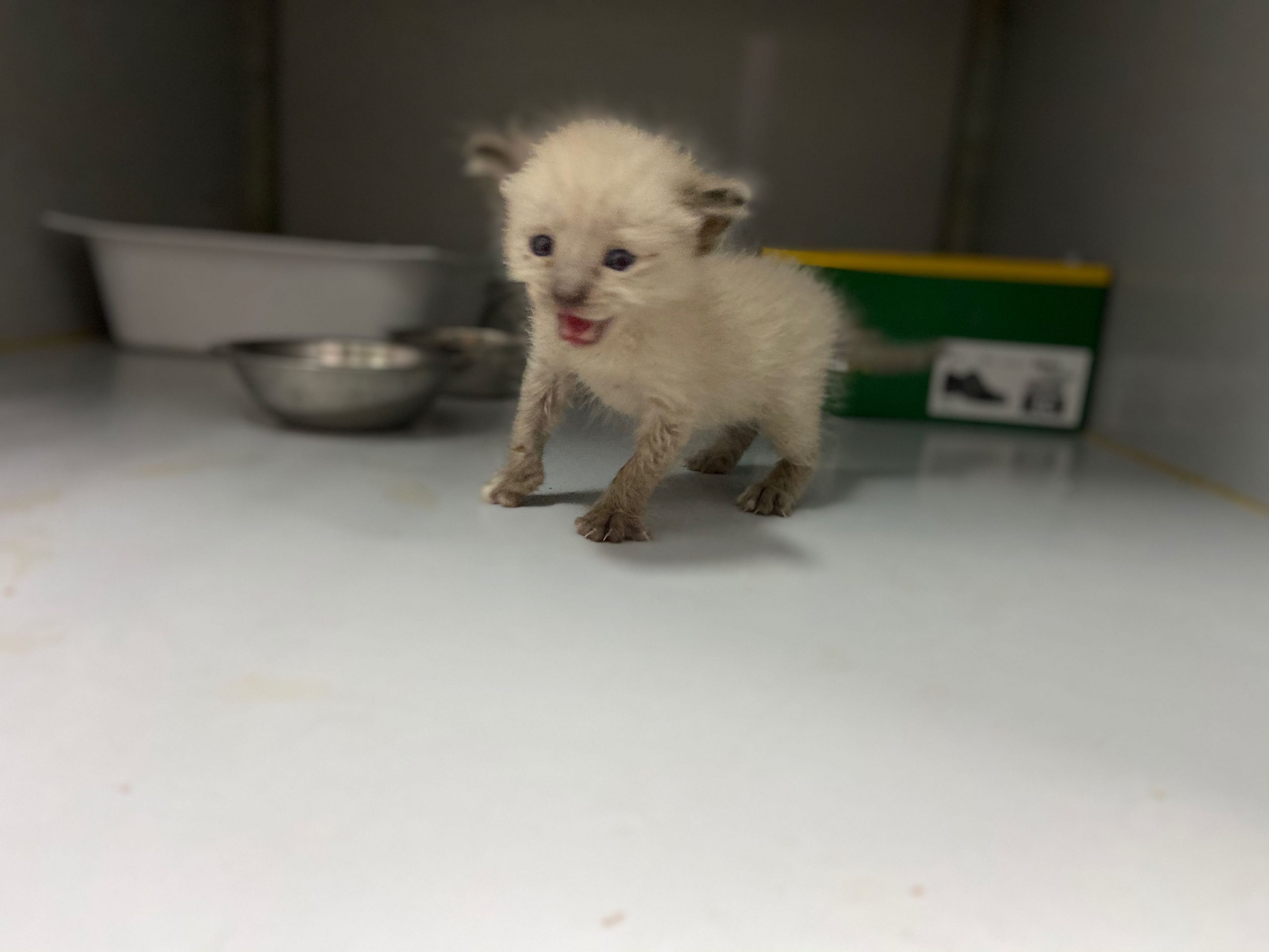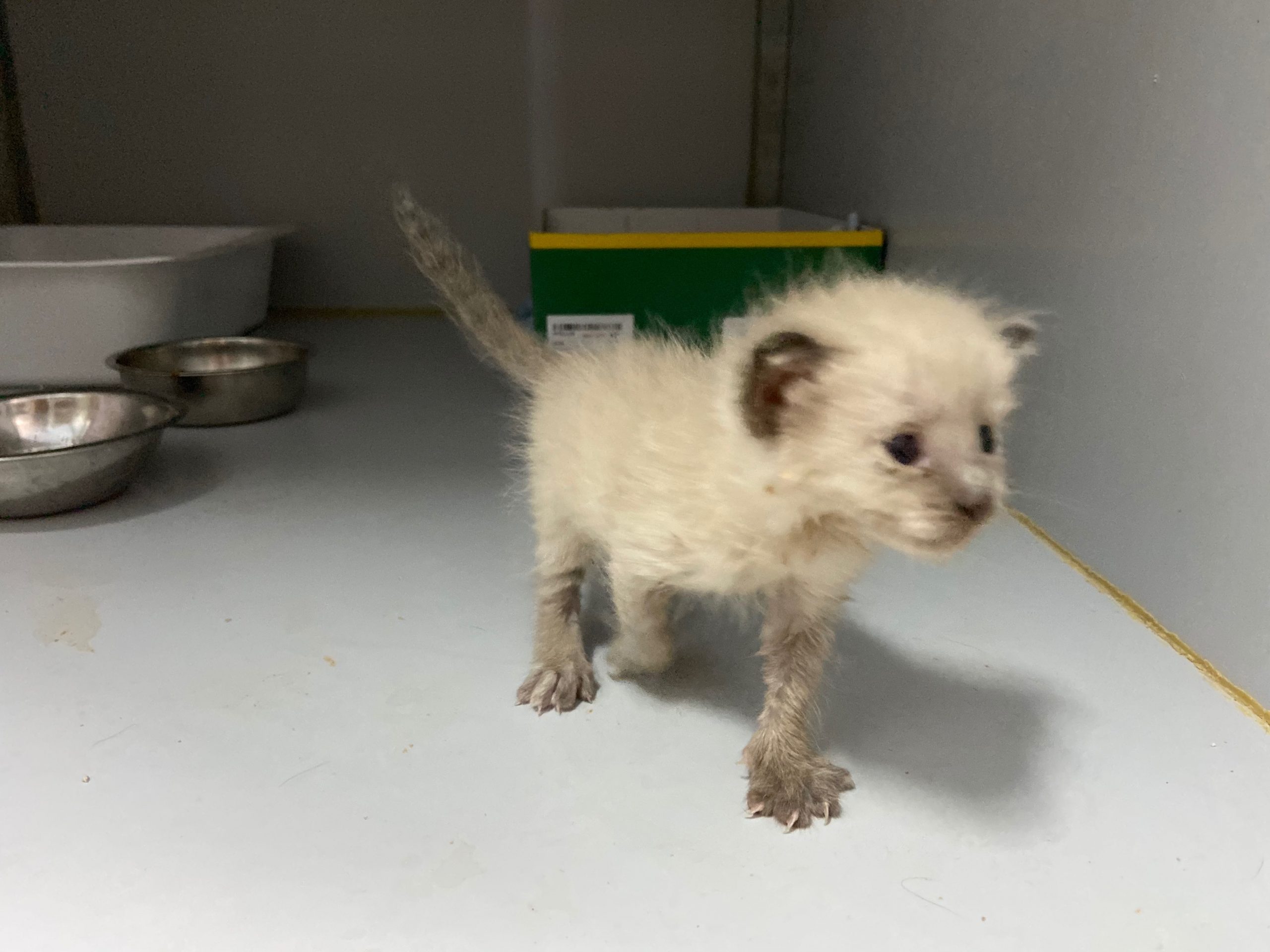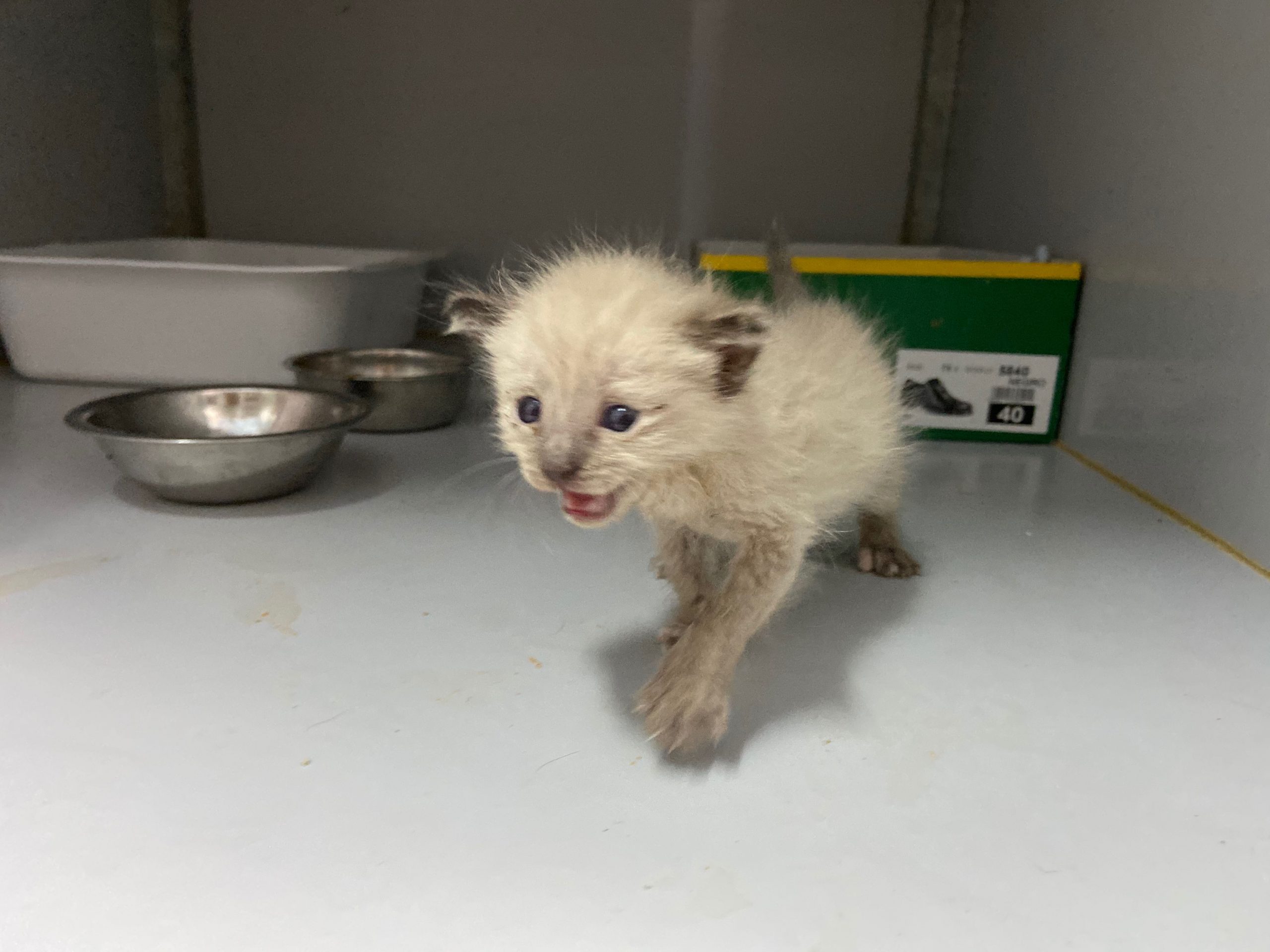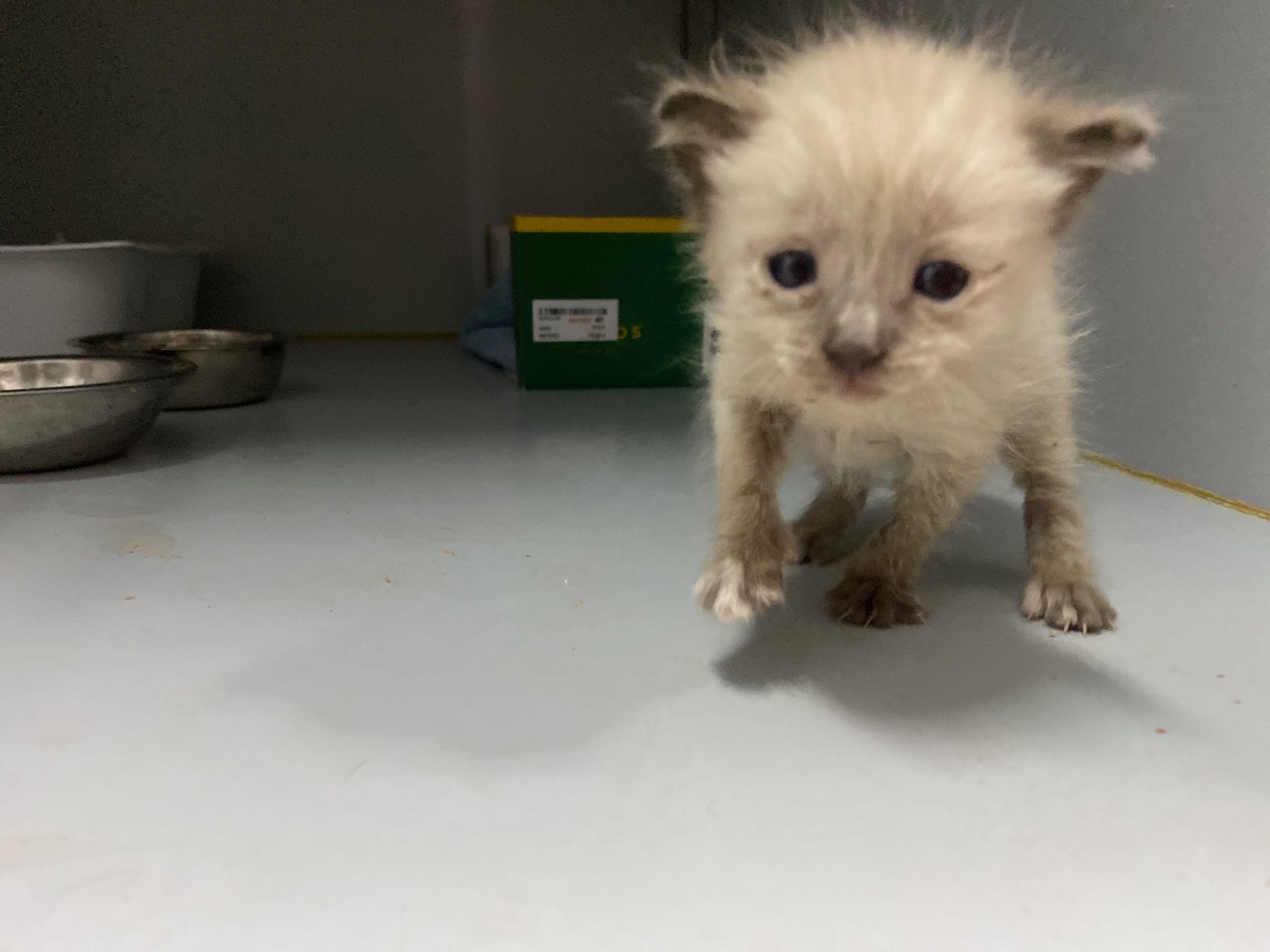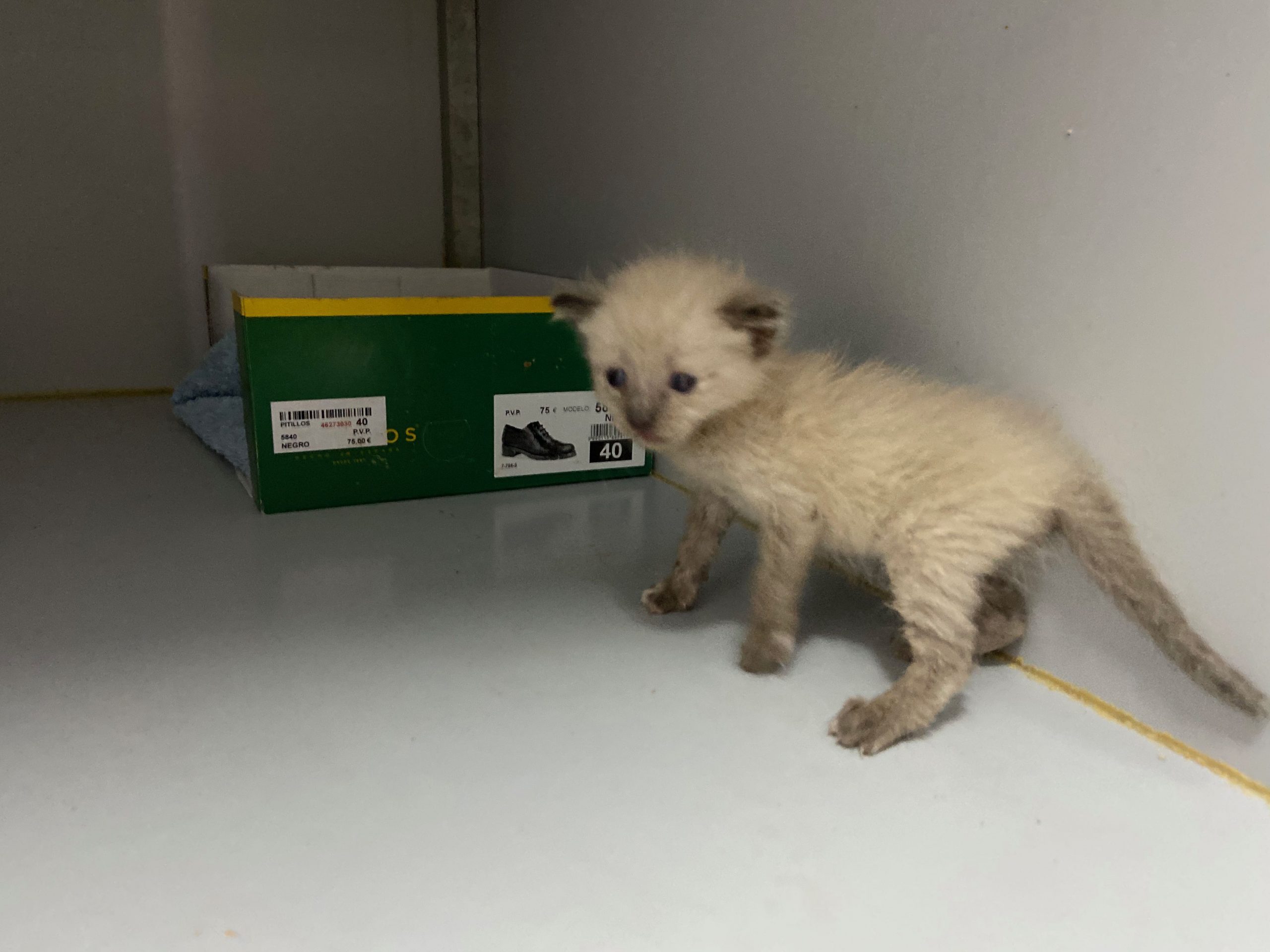 Michonne es una gatita siamesa de tan solo 1 mes, no puede estar en el albergue, ya come sola.