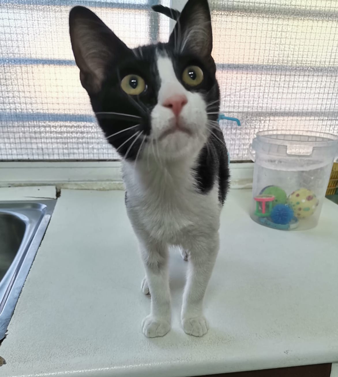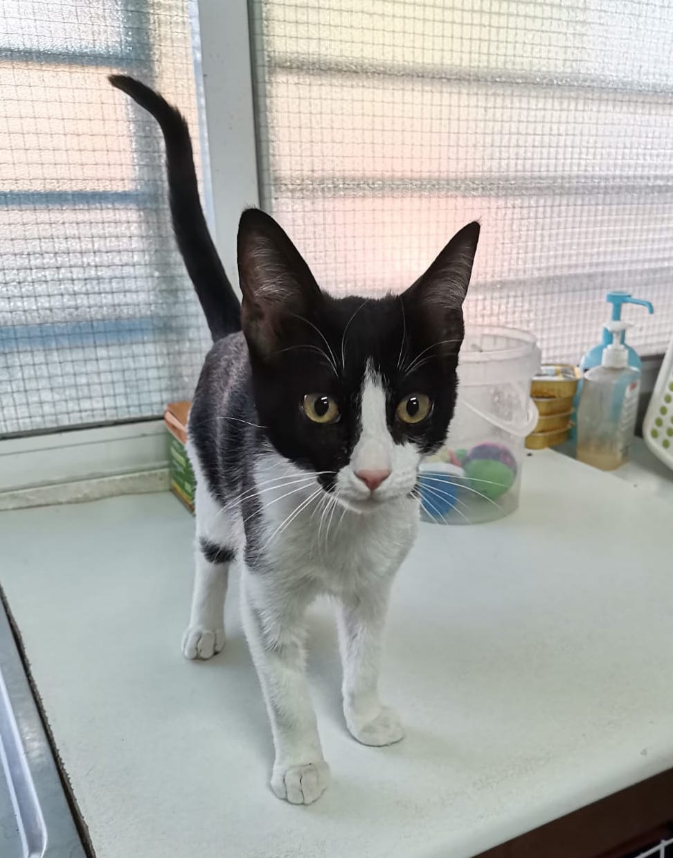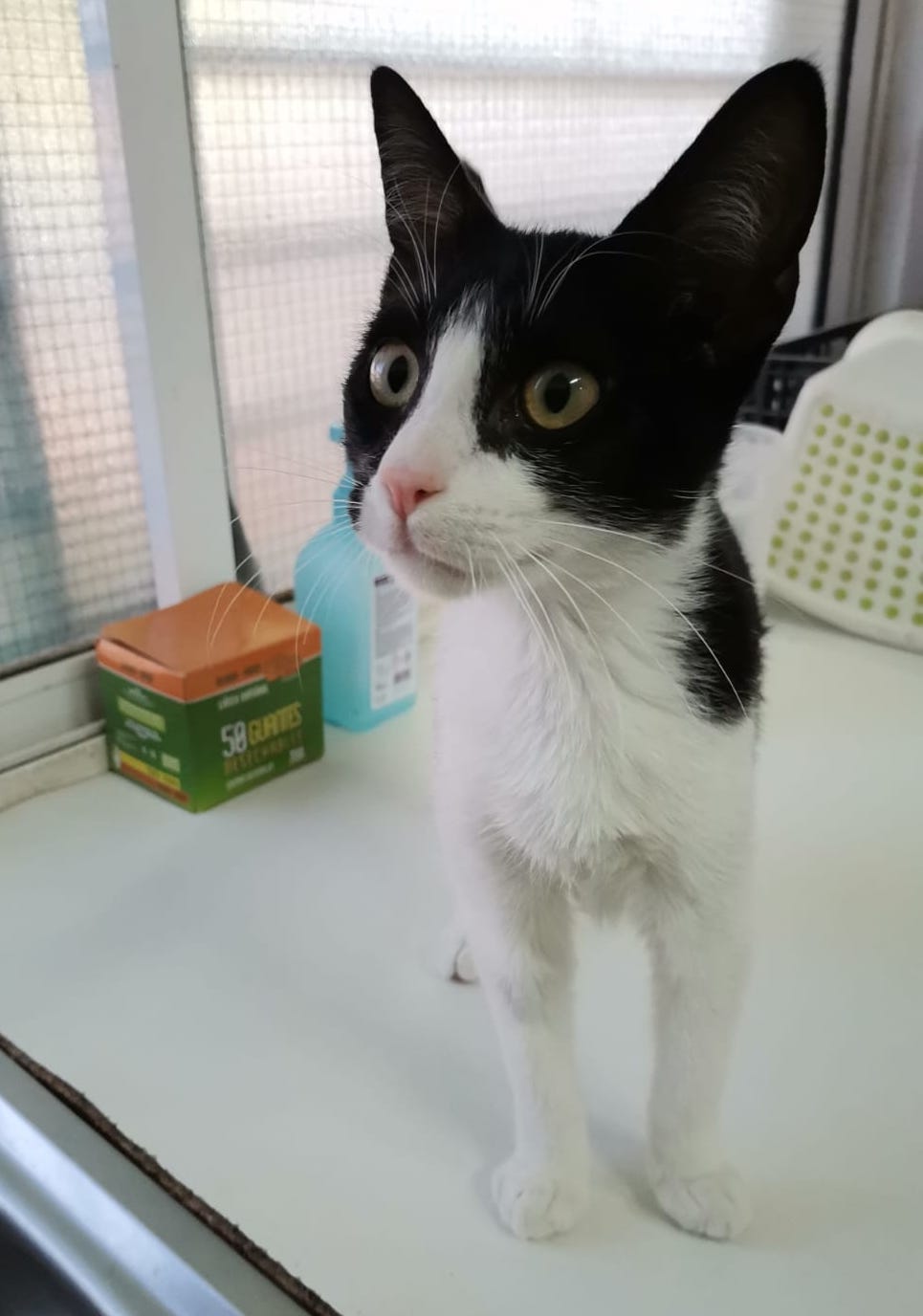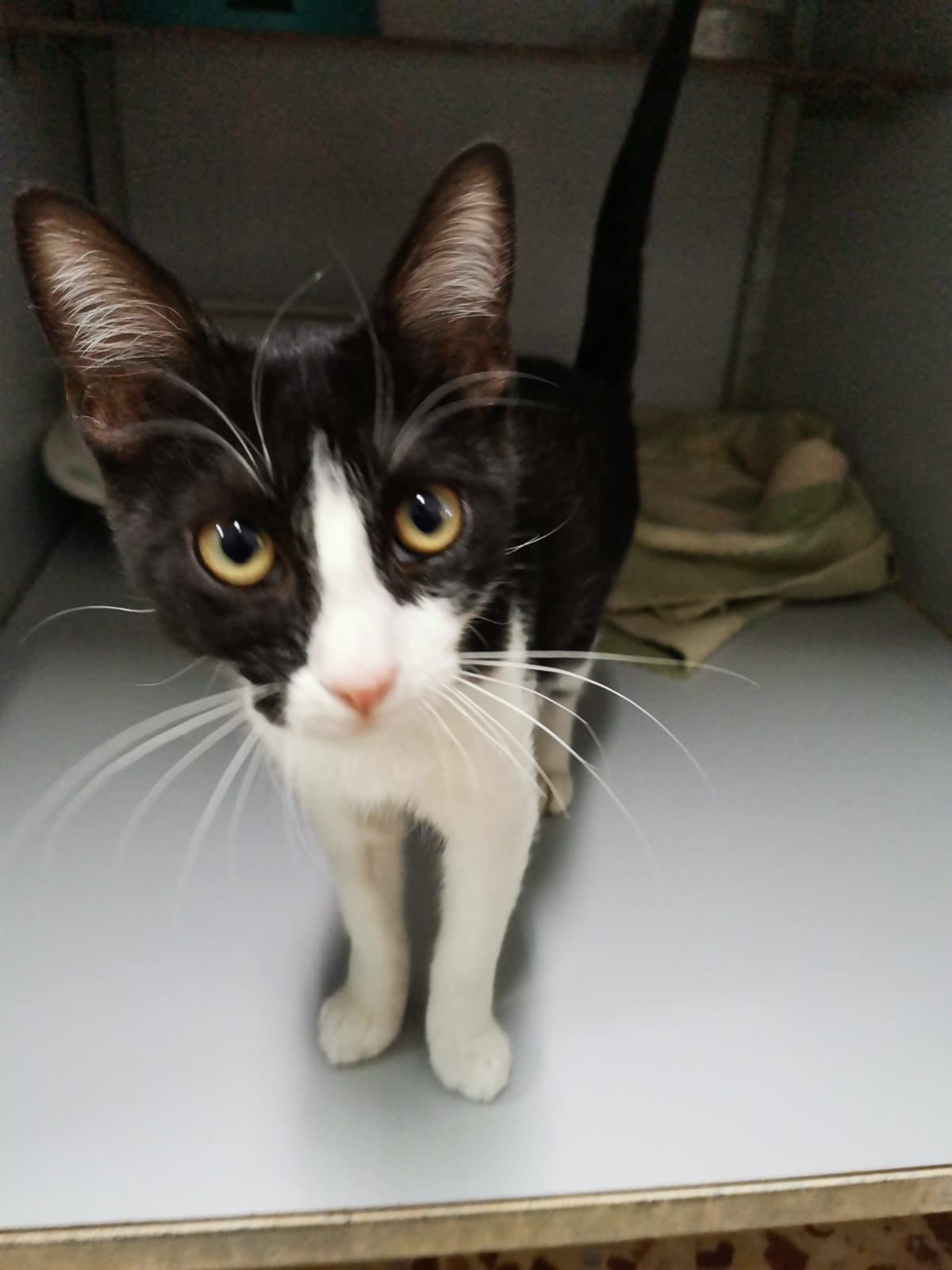 Es un gatito de 6 meses, estaba solo vagando por una calle de Puertollano