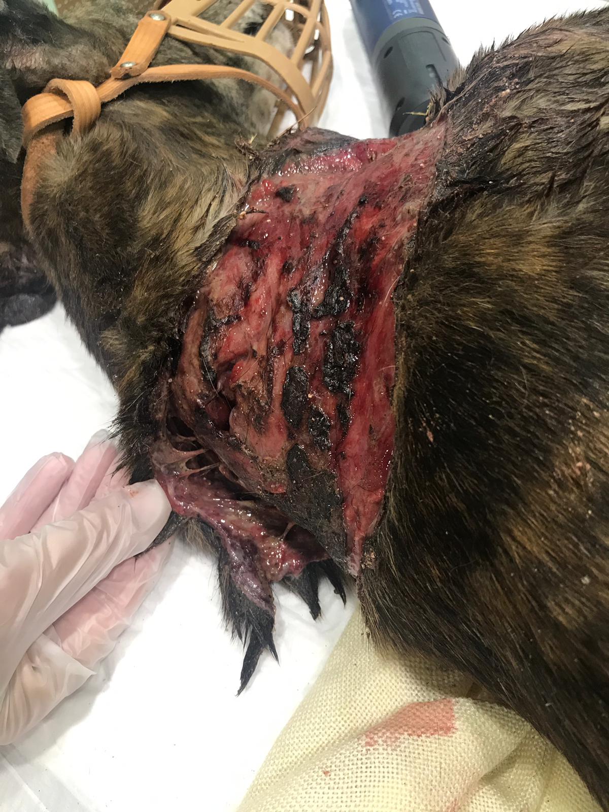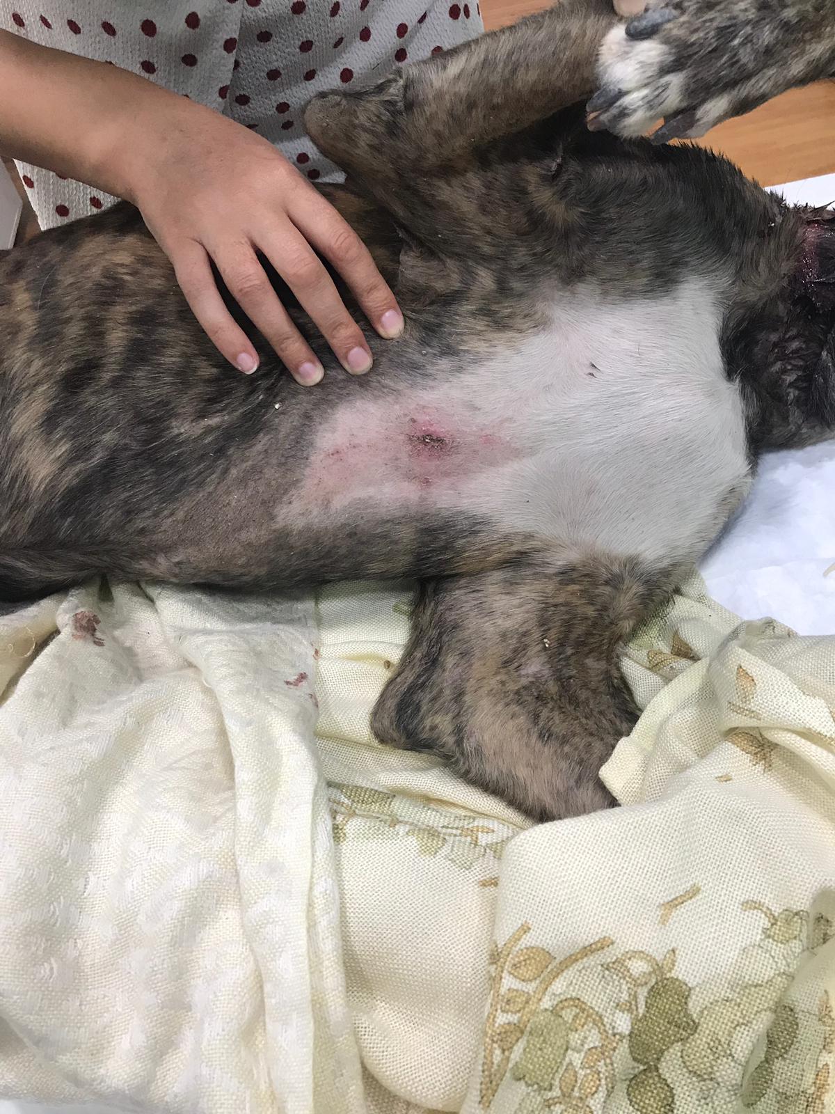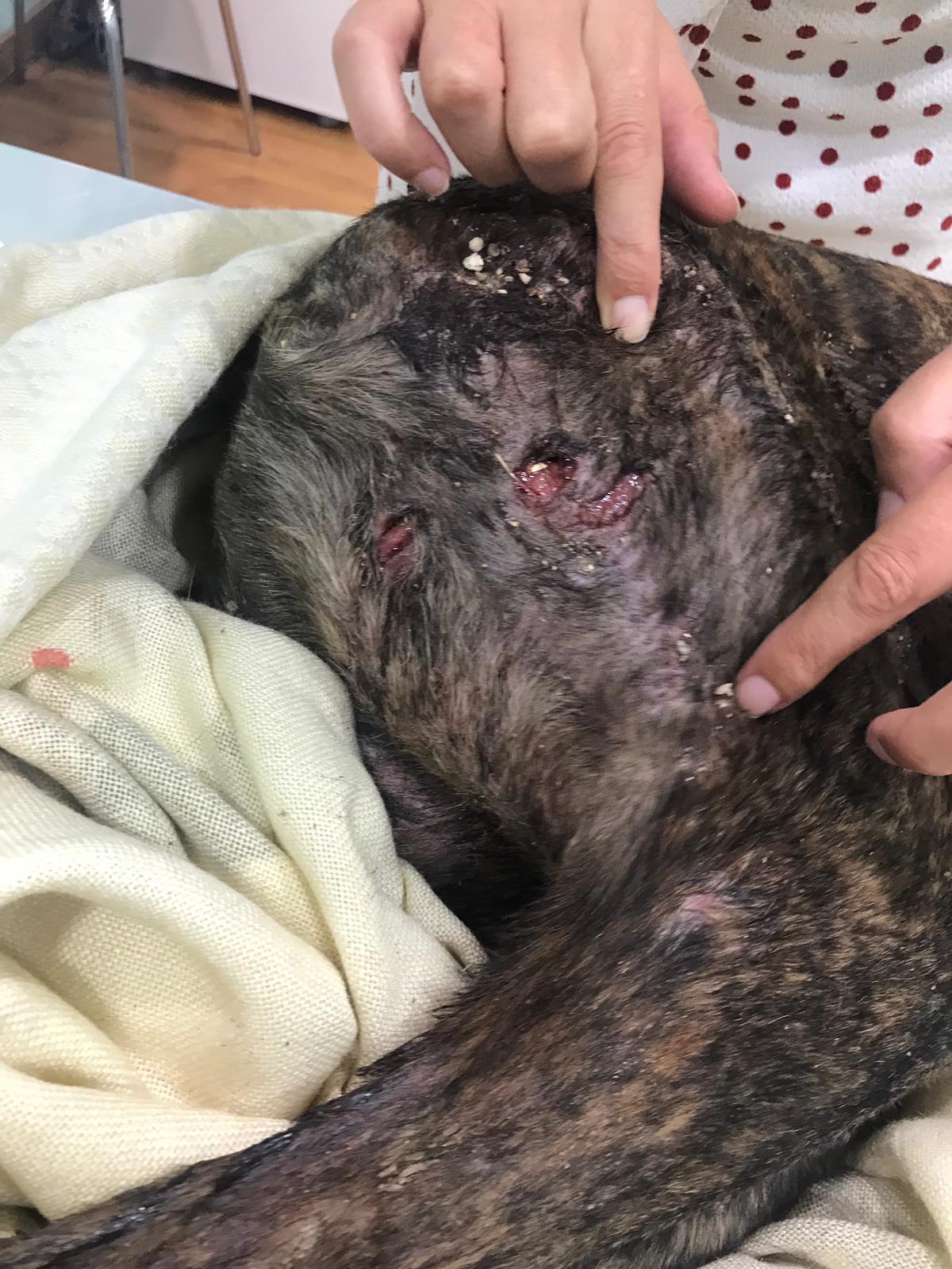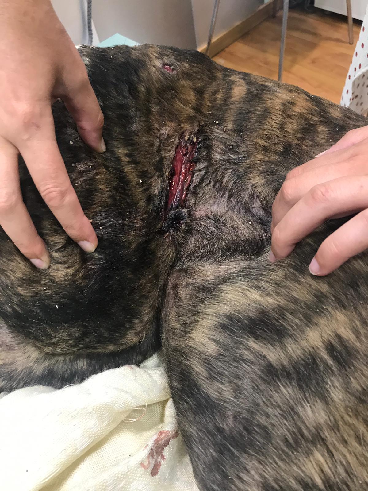 Así se trata a los galgos en este país…..creen que las heridas son del ataque de otros perros, no sabemos si sería utilizado como sparring, pero seguramente fue abandonado por su anterior propietario al ver la crudeza de las heridas, en vez de llevarlo a que lo curasen; increíble pero tristemente cierto.