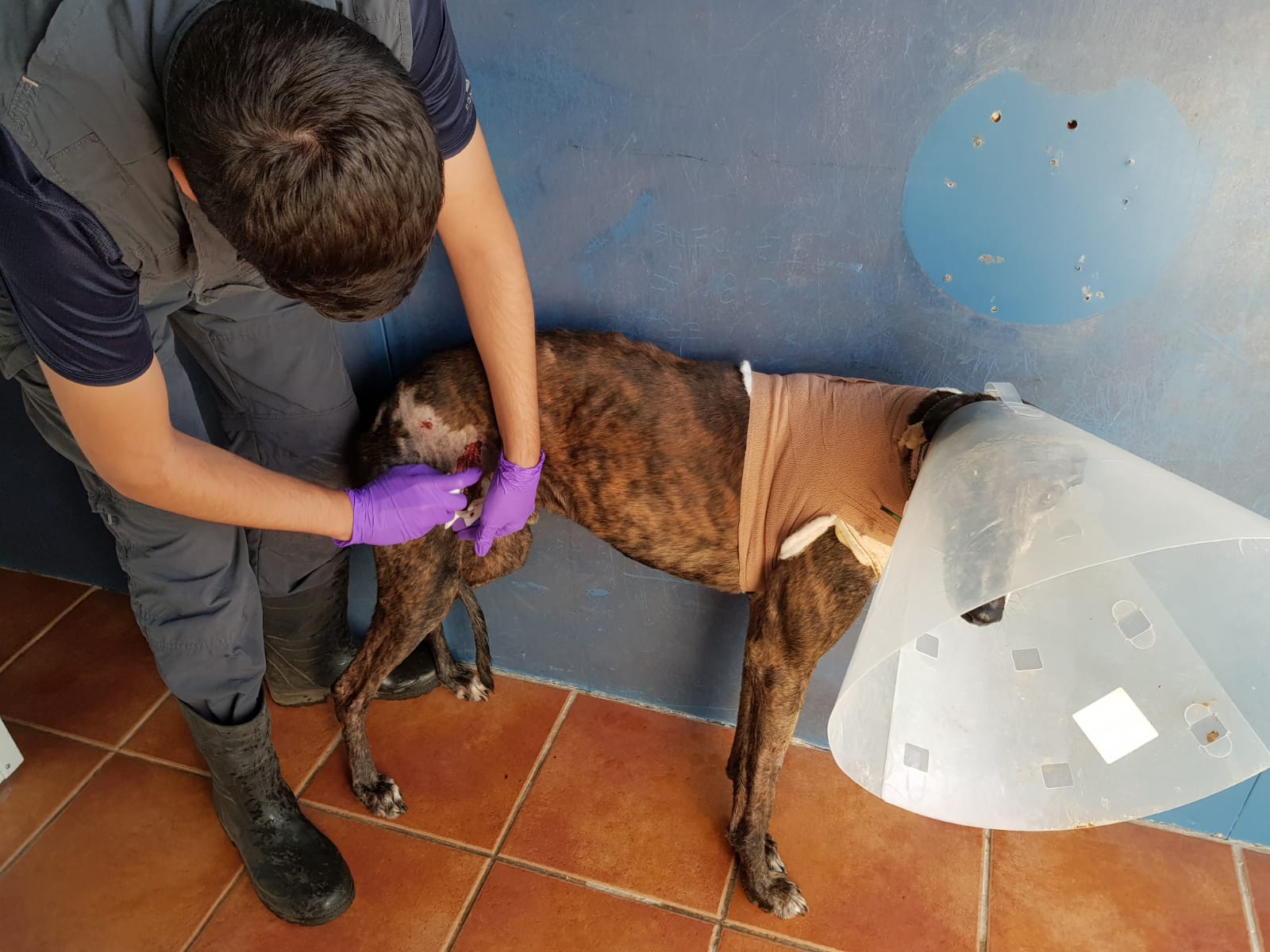 Atila andaba con múltiples heridas por las calle el sábado por la noche, se llevó inmediatamente de urgencia a la clínica veterinaria, menos mal que se llegó a tiempo.