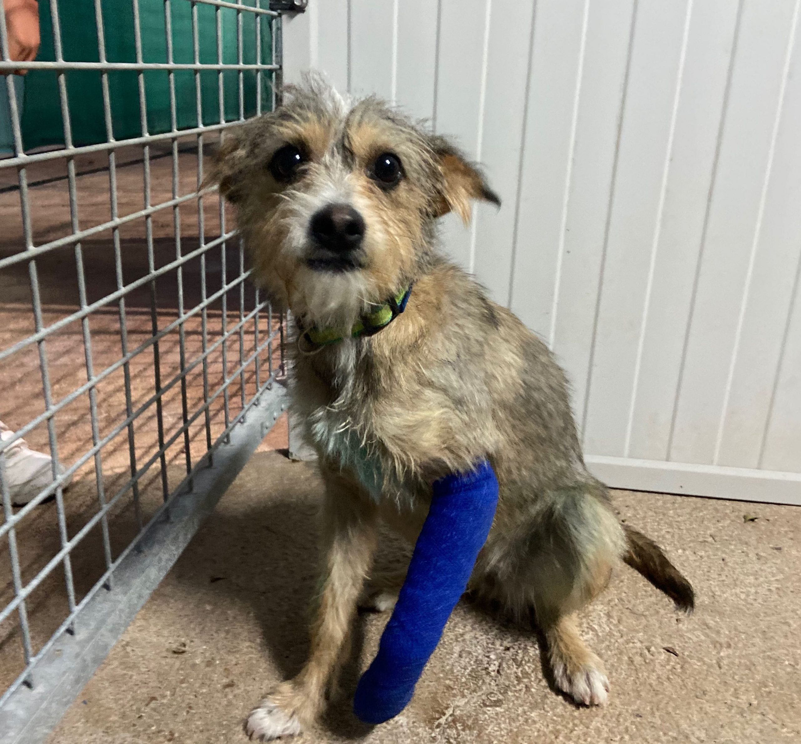 Estaba recien atropellada, la llevamos a la clínica Veterinaria y le hicieron radiografías, en ellas vieron que afortunadamente no tenía nada roto.
