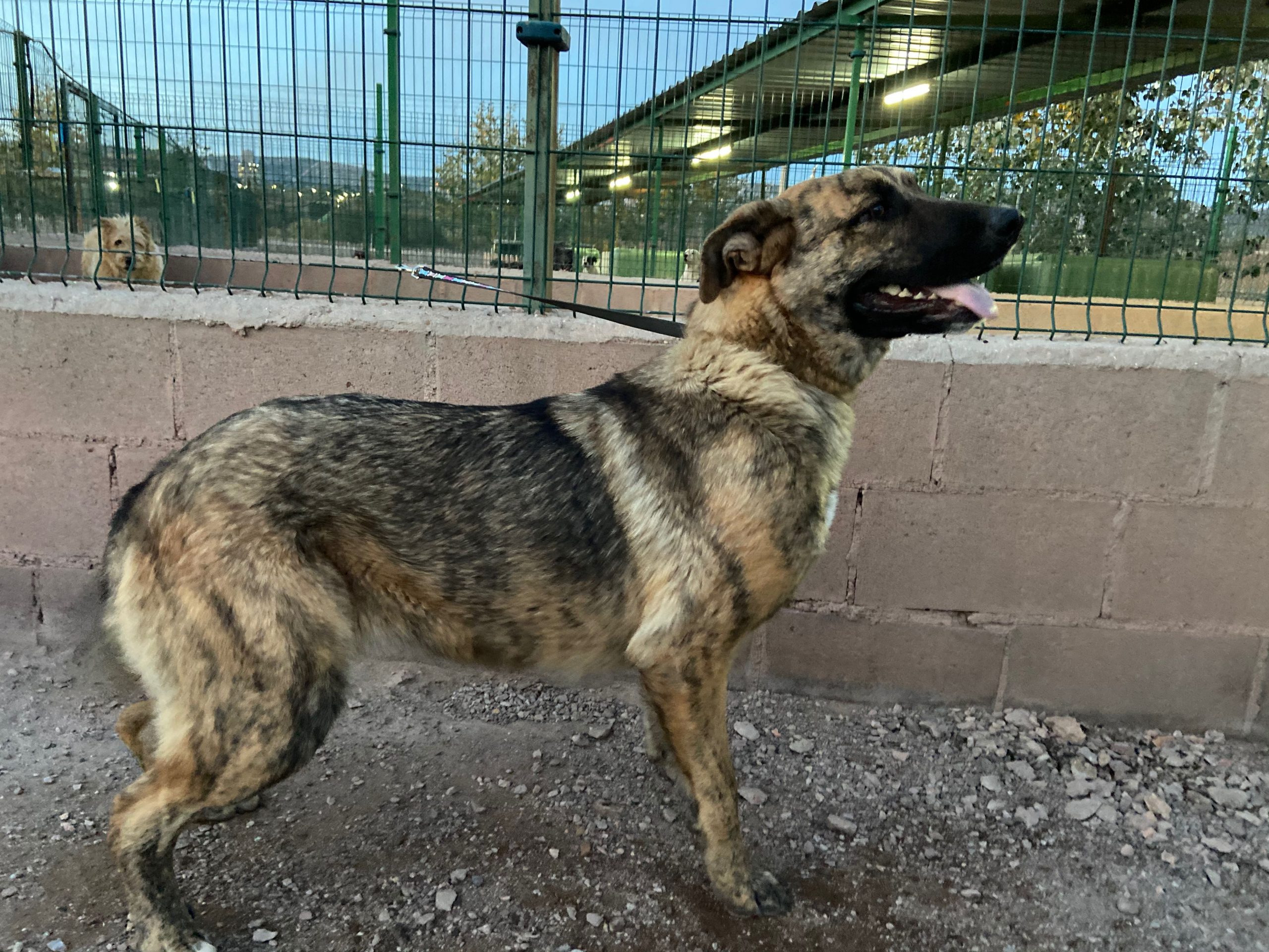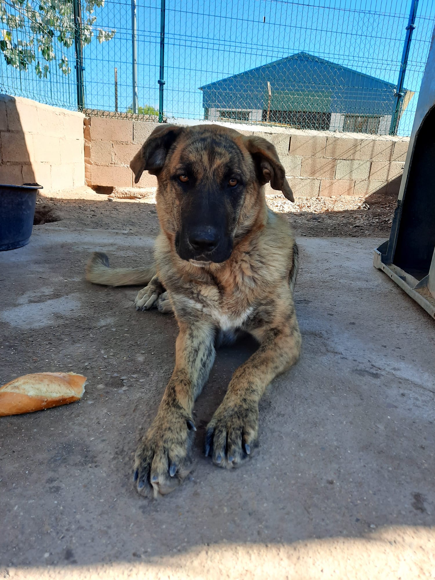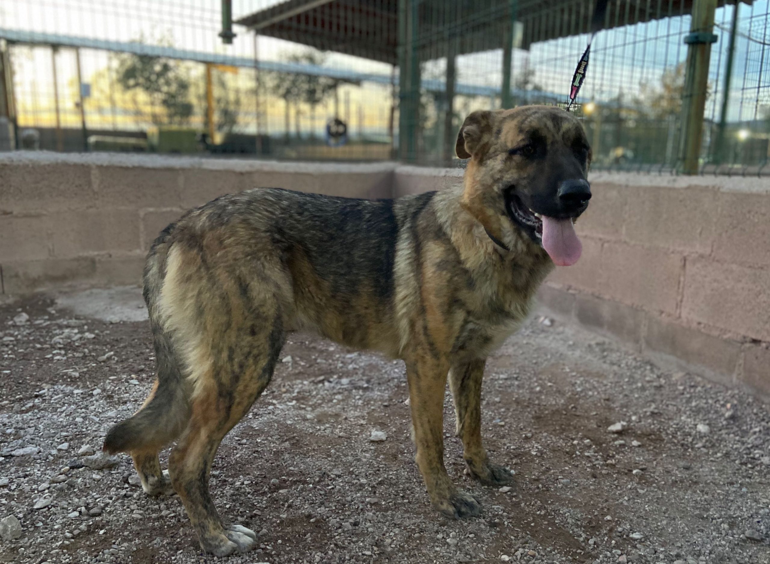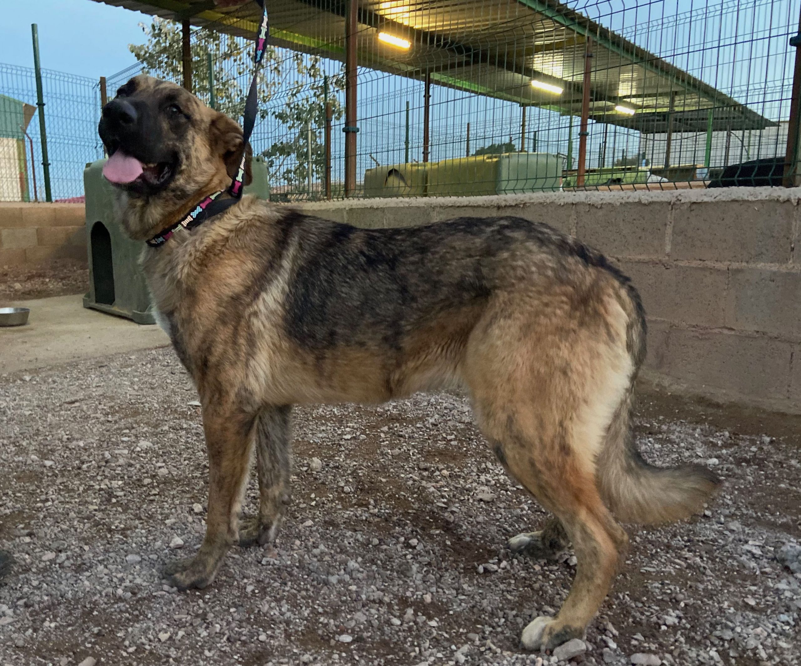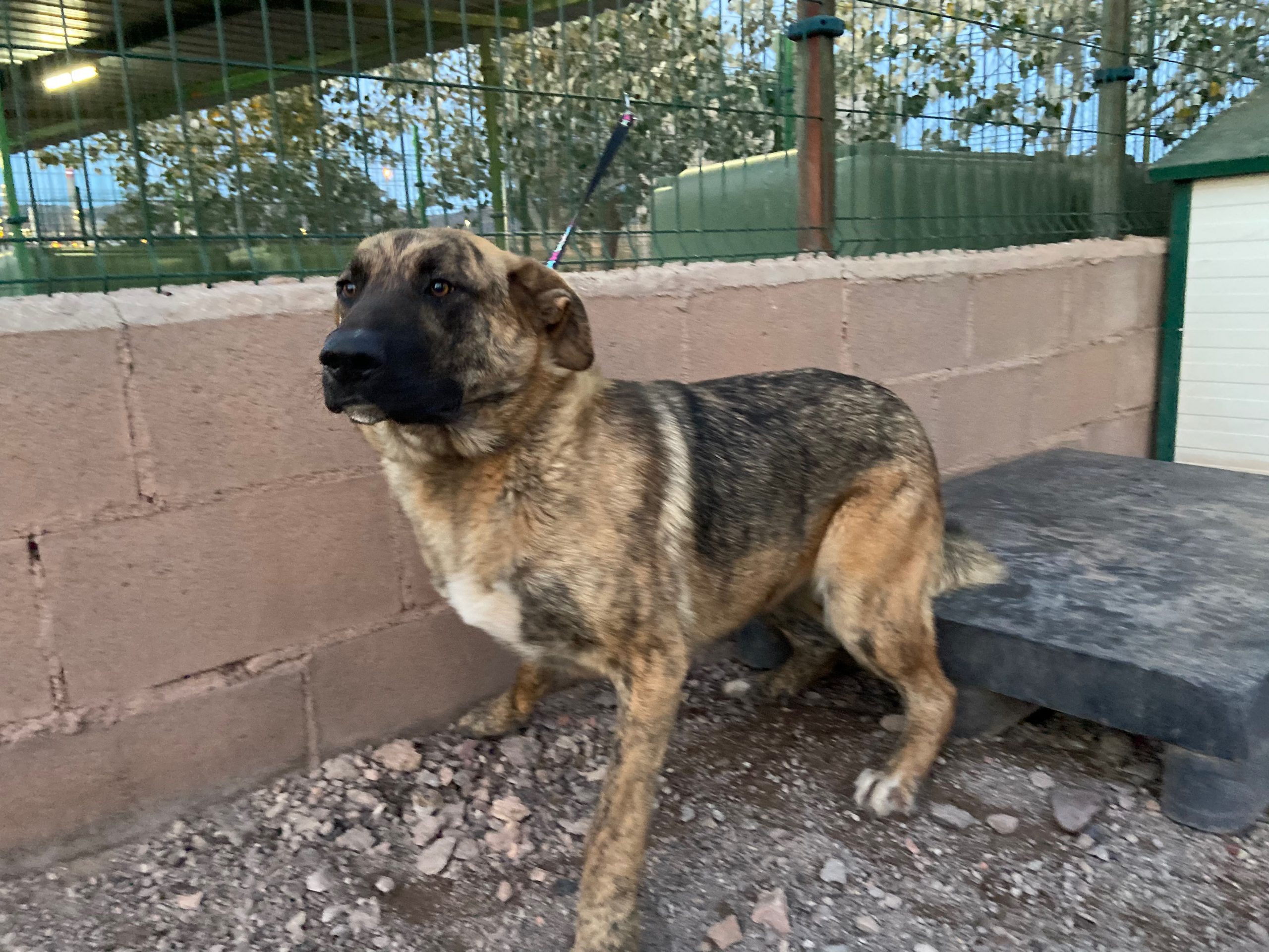Trona es una cachorrona cruce de mastín que ha sido encontrada vagando por la carretera .