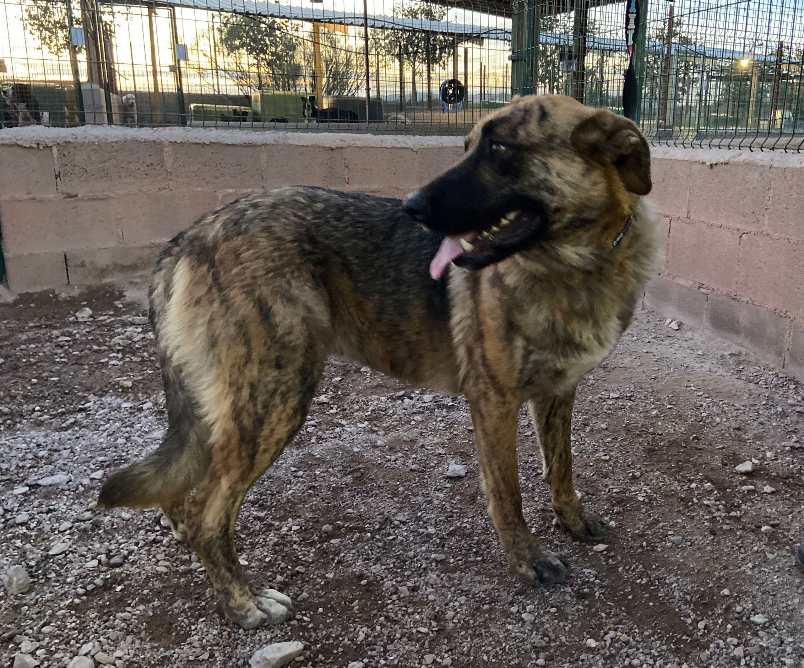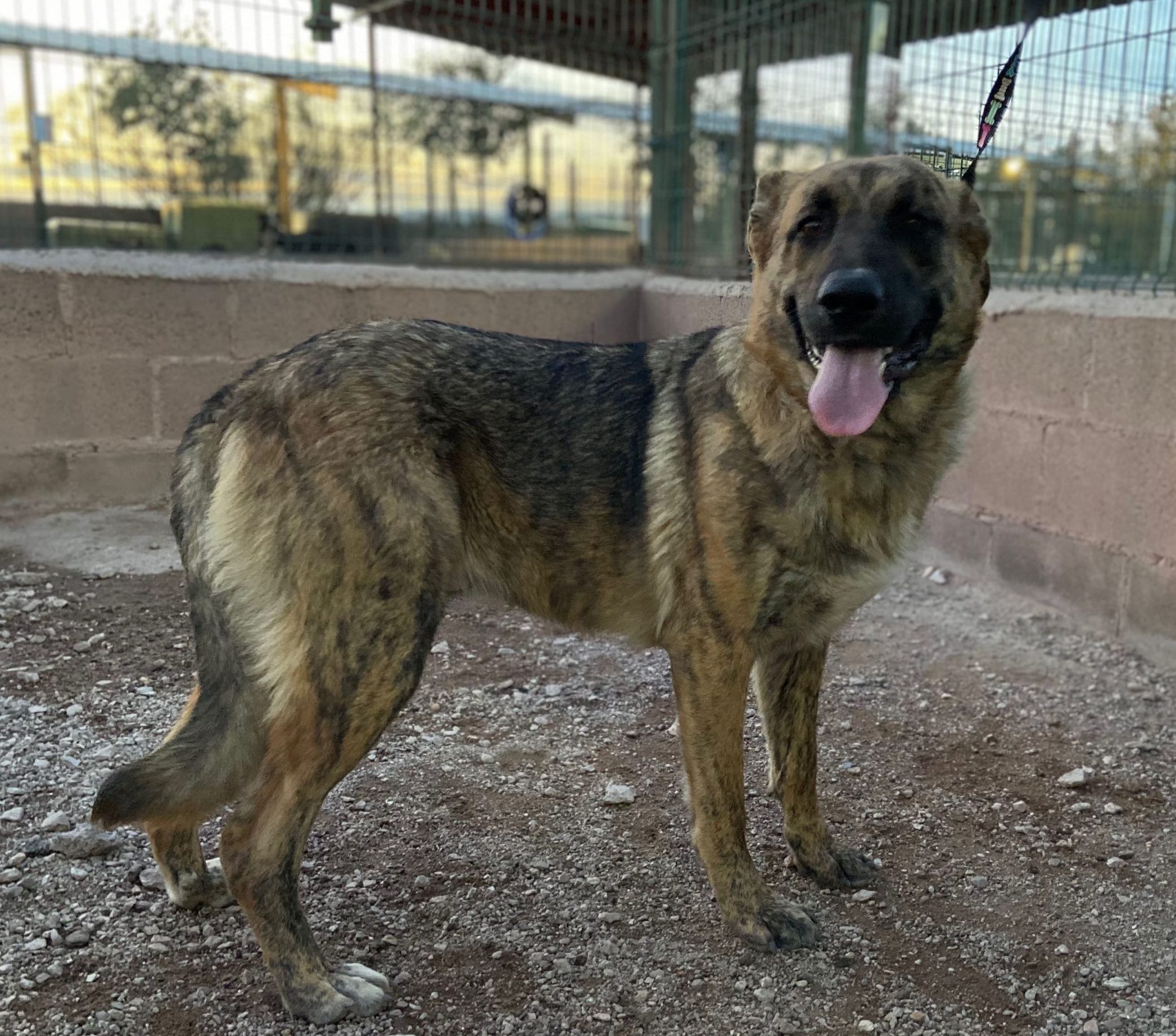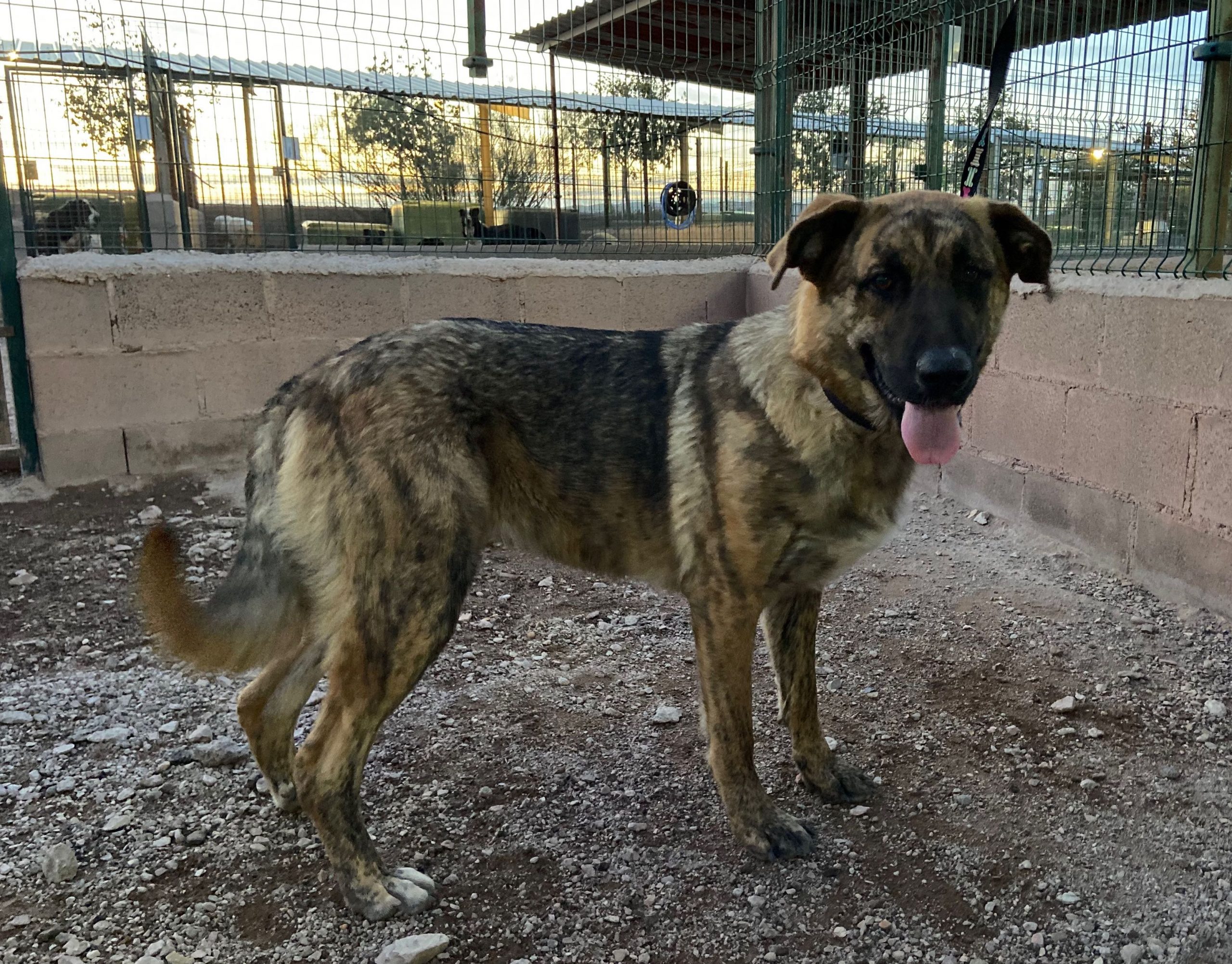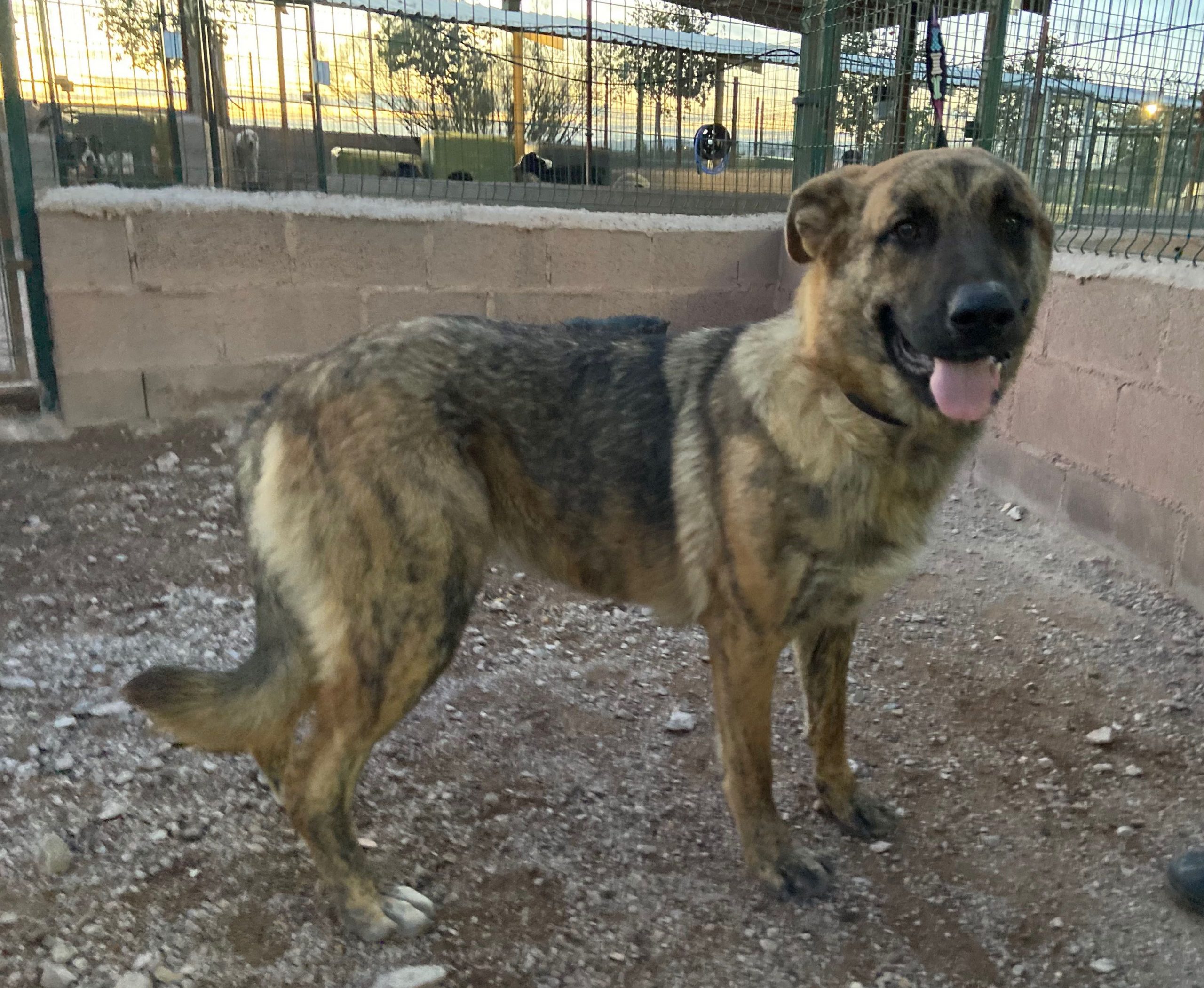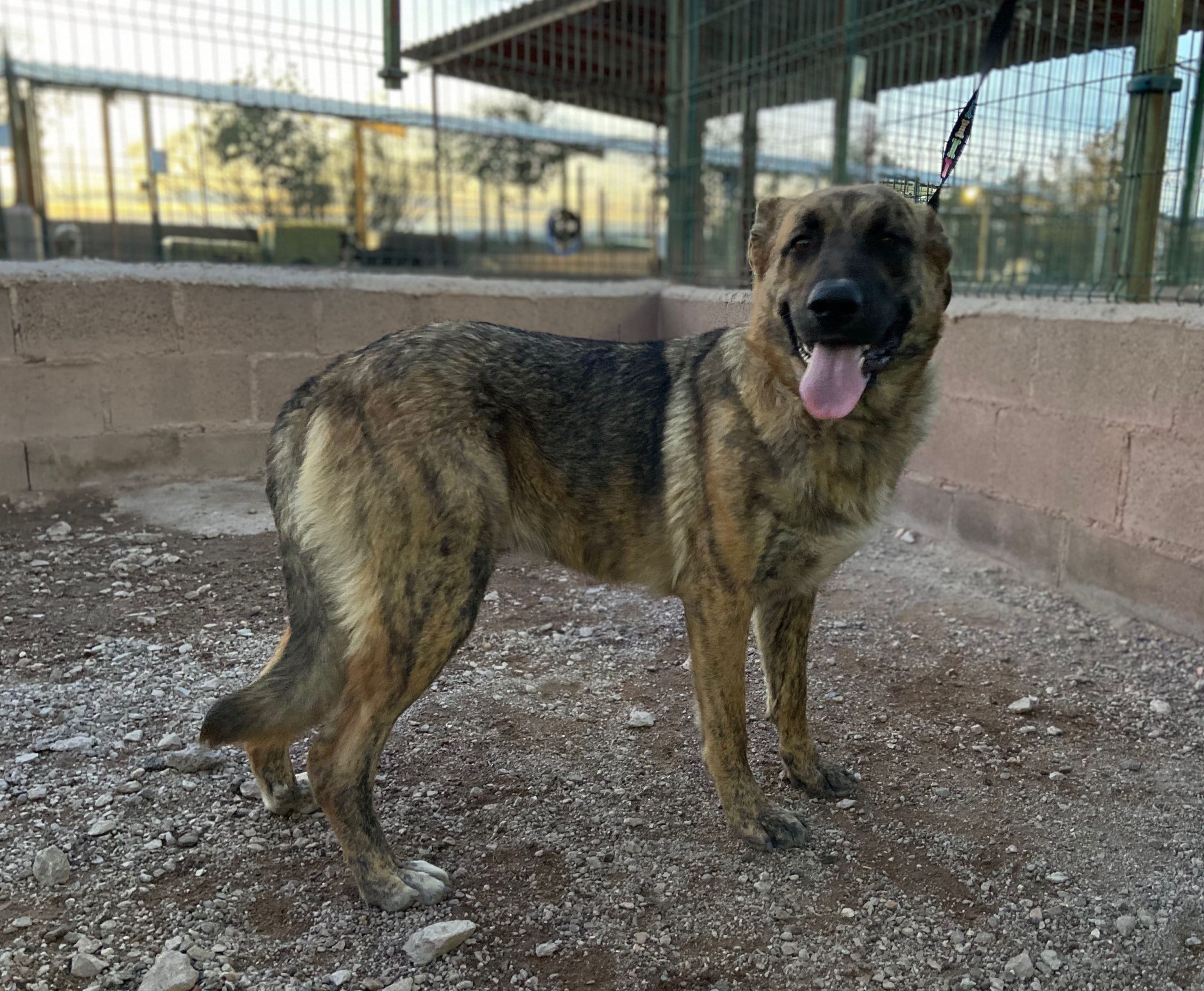 Trona es una cachorrona cruce de mastín que ha sido encontrada vagando por la carretera .