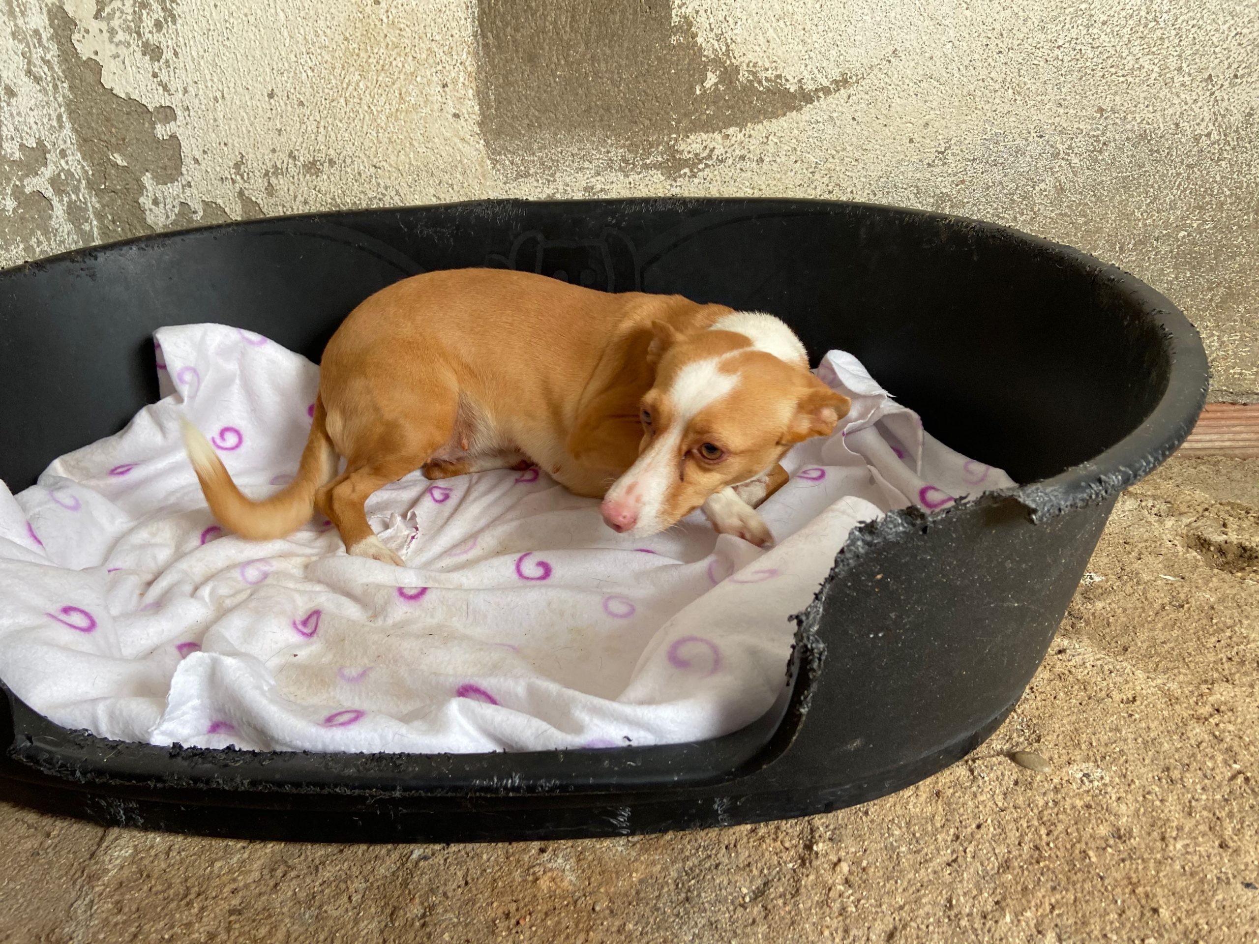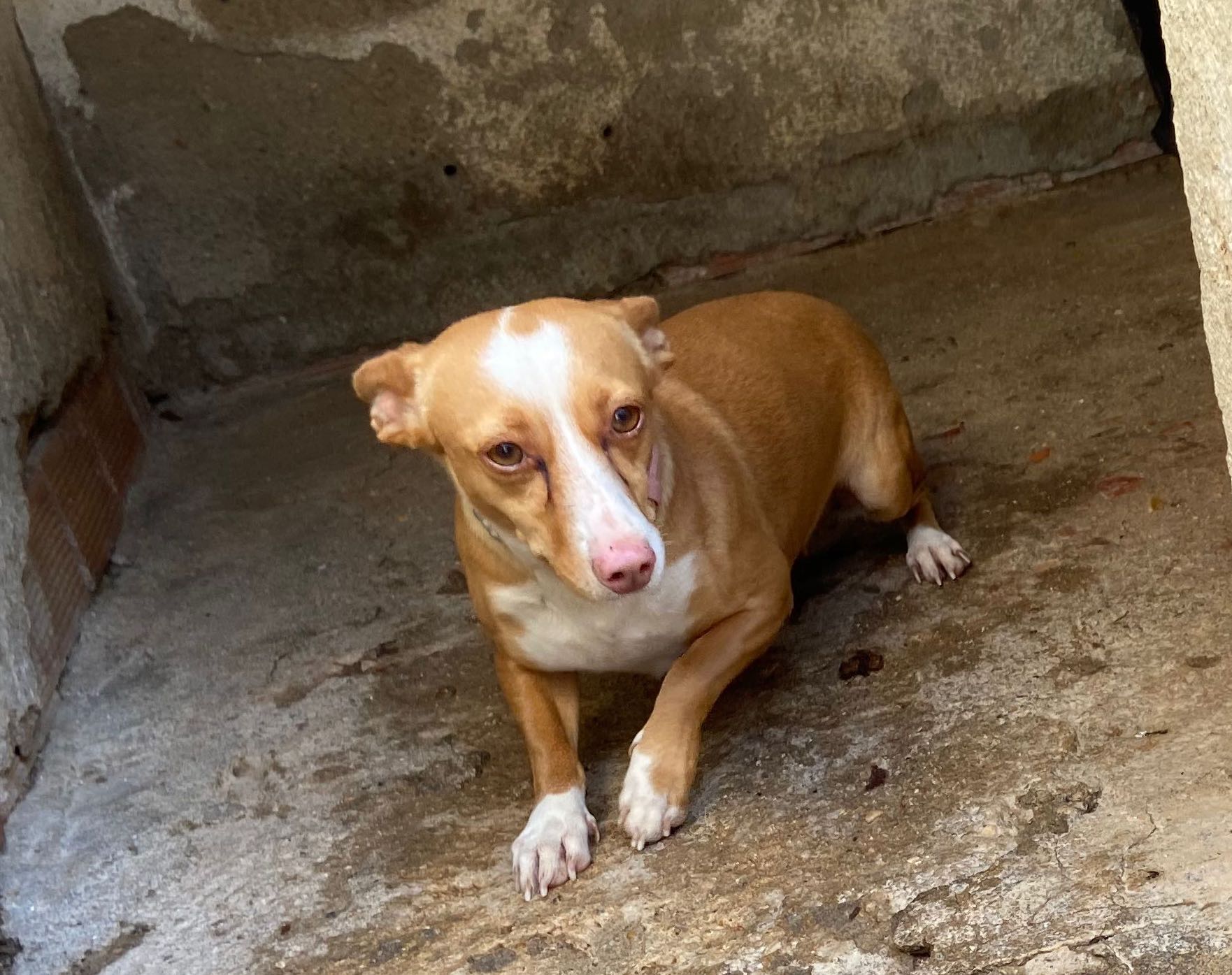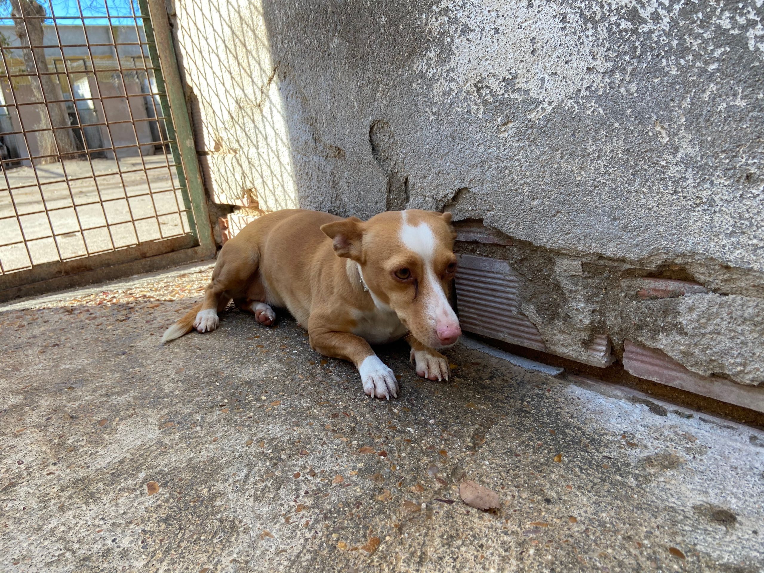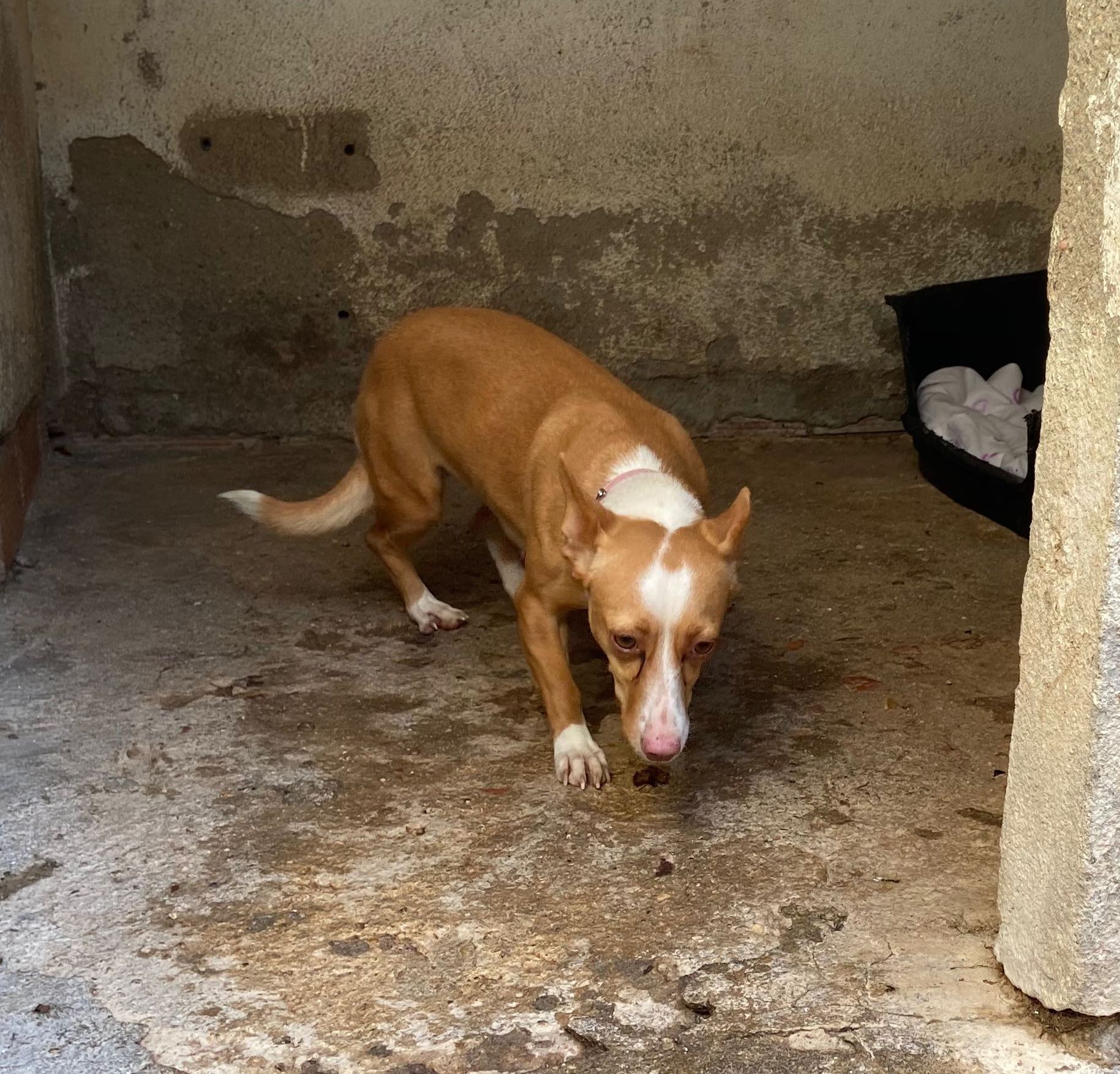 Creemos que ha sido abandonada y que le han pegado porque cuando te acercas se agacha lo primero esperando recibir un……para después cuando ve que solo queremos darle amor ser una auténtica dulzura.