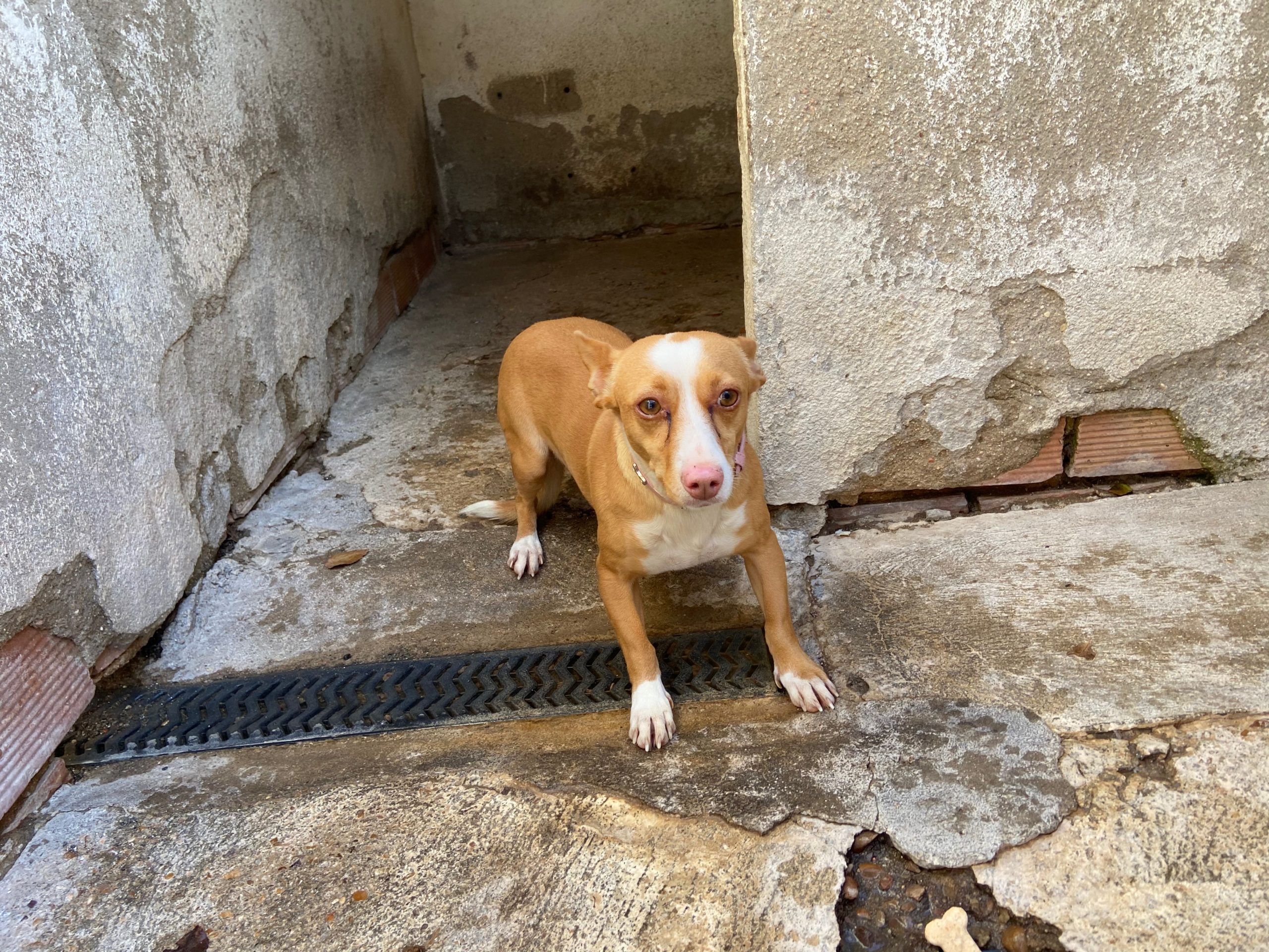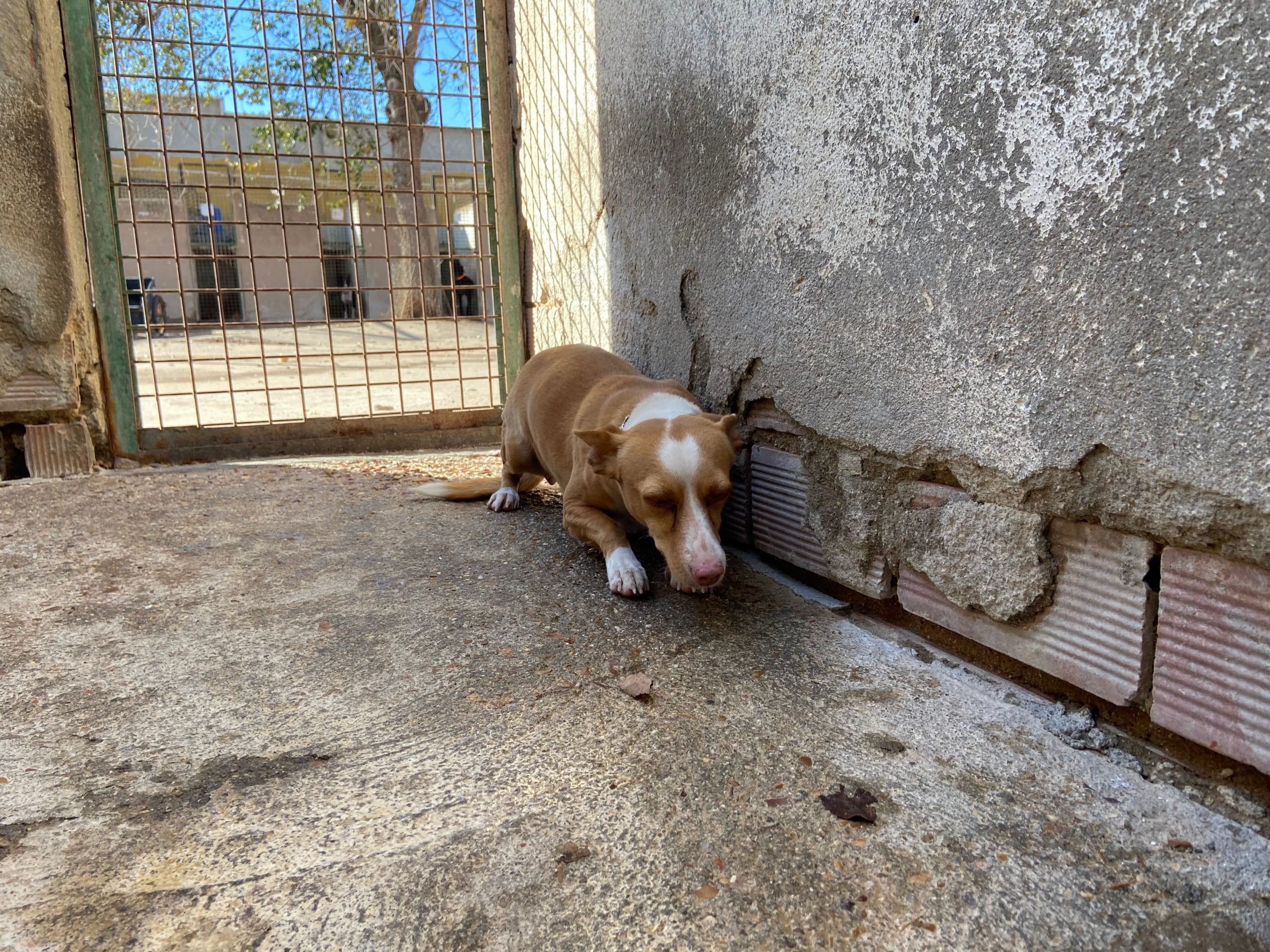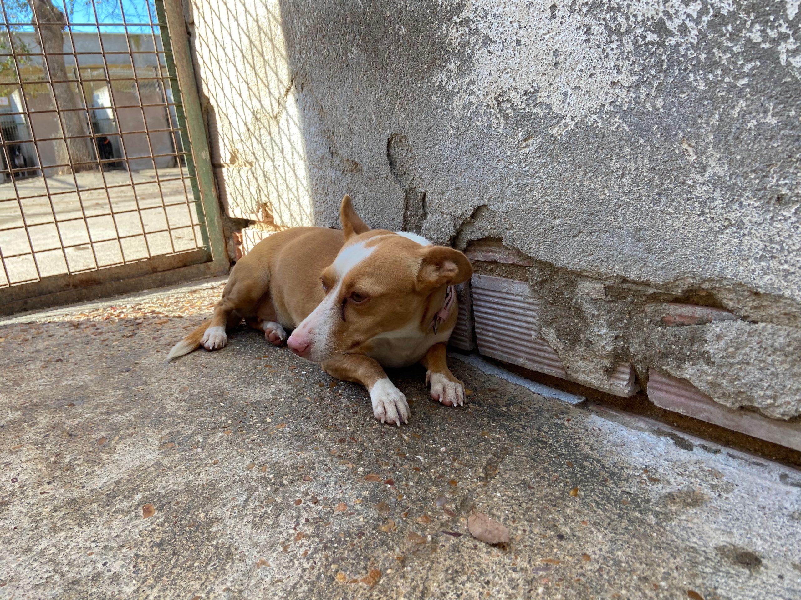Creemos que ha sido abandonada y que le han pegado porque cuando te acercas se agacha lo primero esperando recibir un……para después cuando ve que solo queremos darle amor ser una auténtica dulzura.
