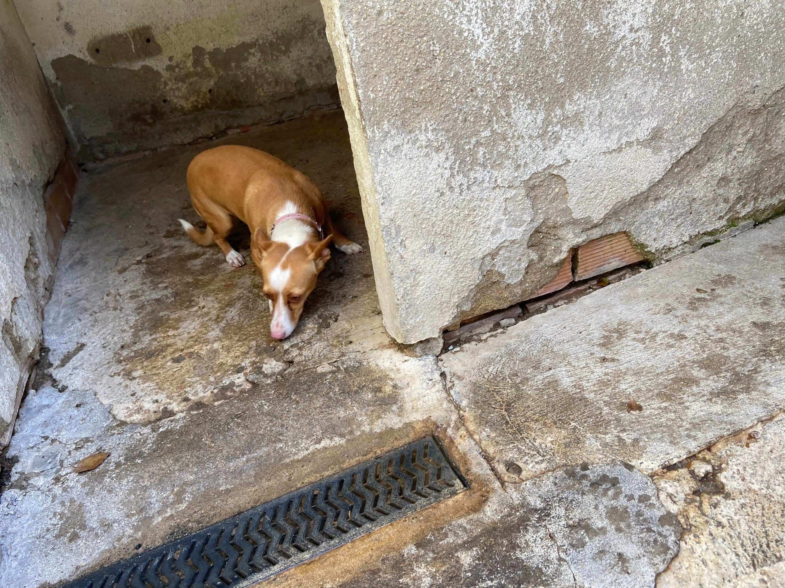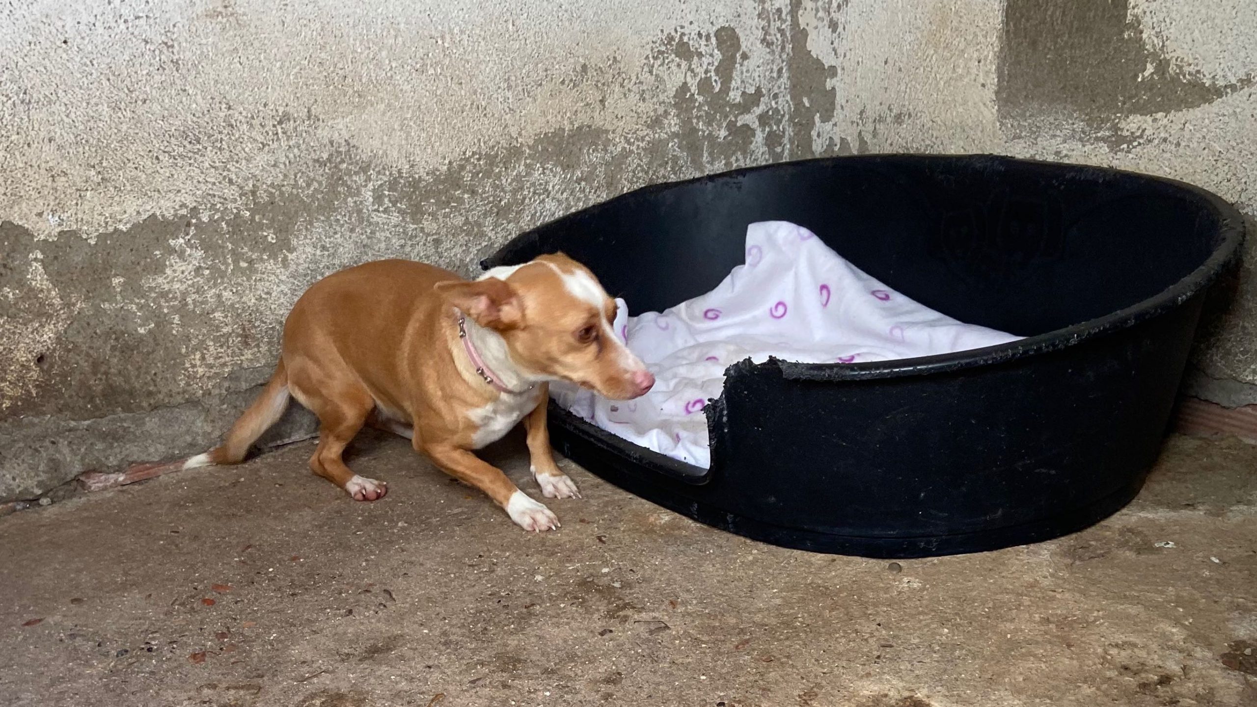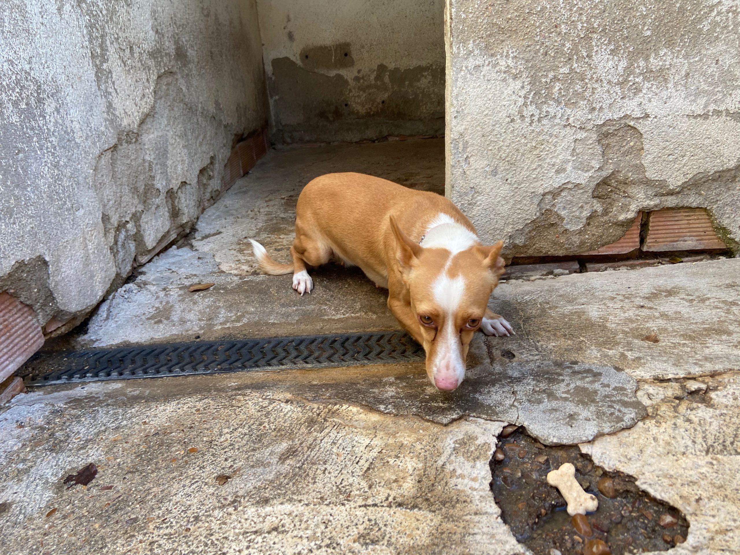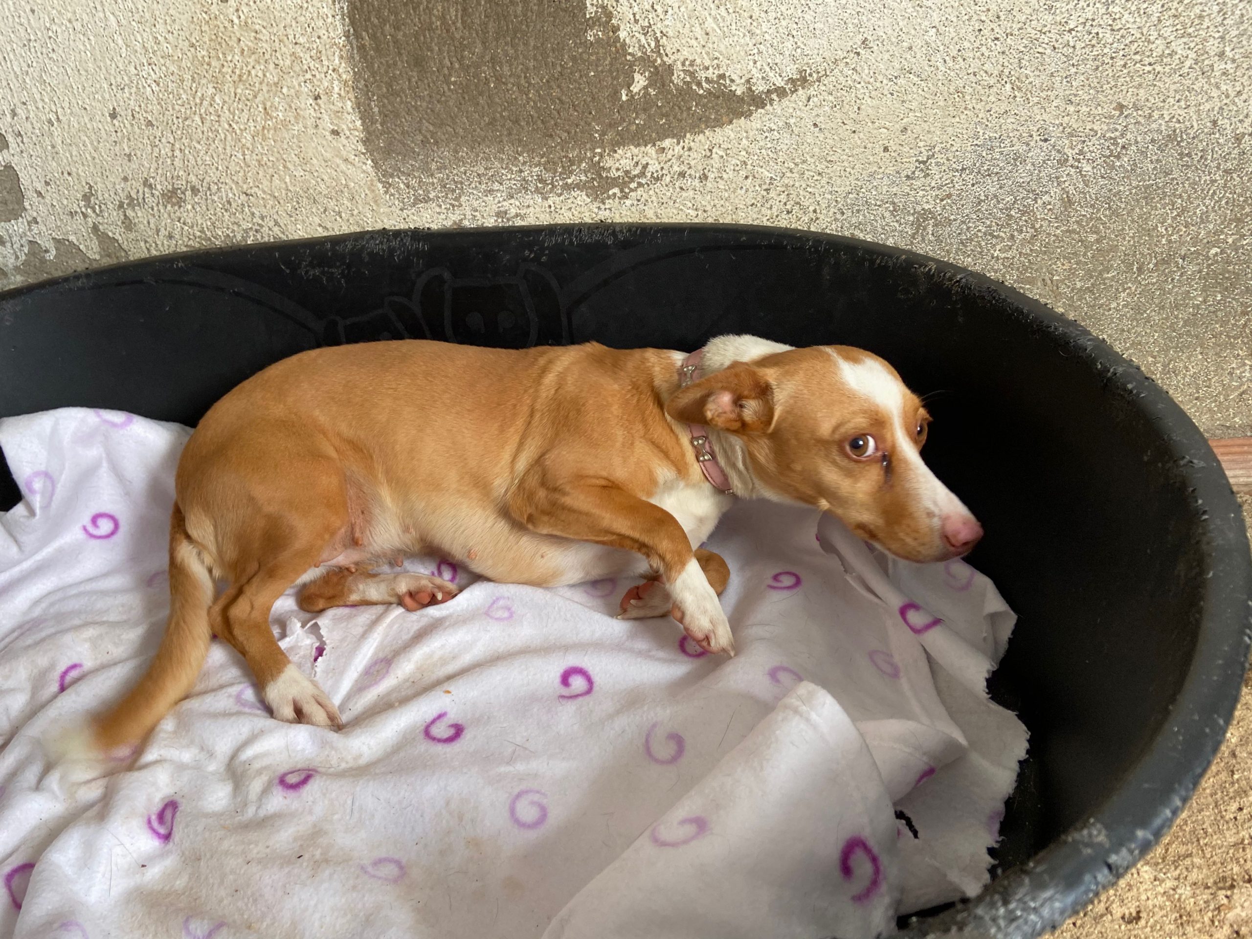 Creemos que ha sido abandonada y que le han pegado porque cuando te acercas se agacha lo primero esperando recibir un……para después cuando ve que solo queremos darle amor ser una auténtica dulzura.