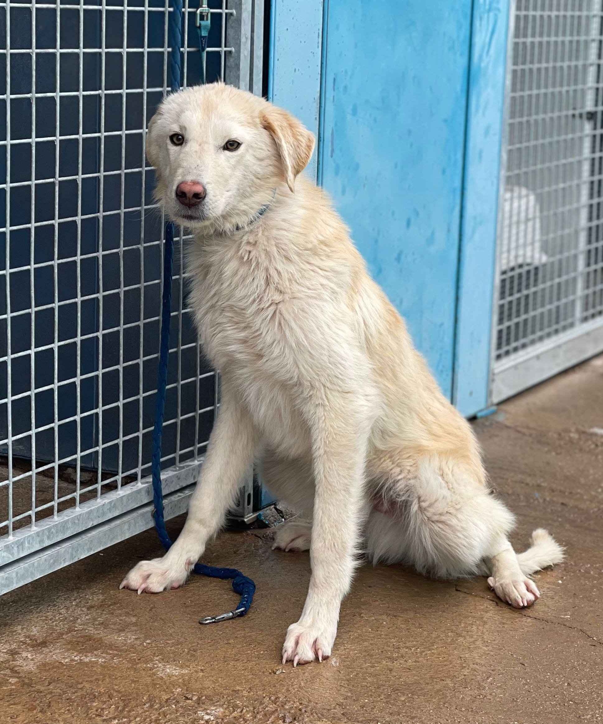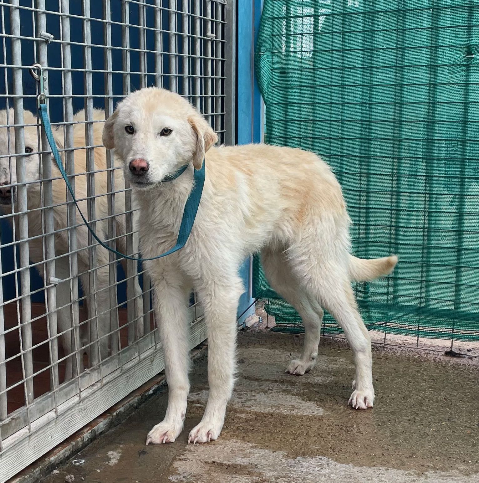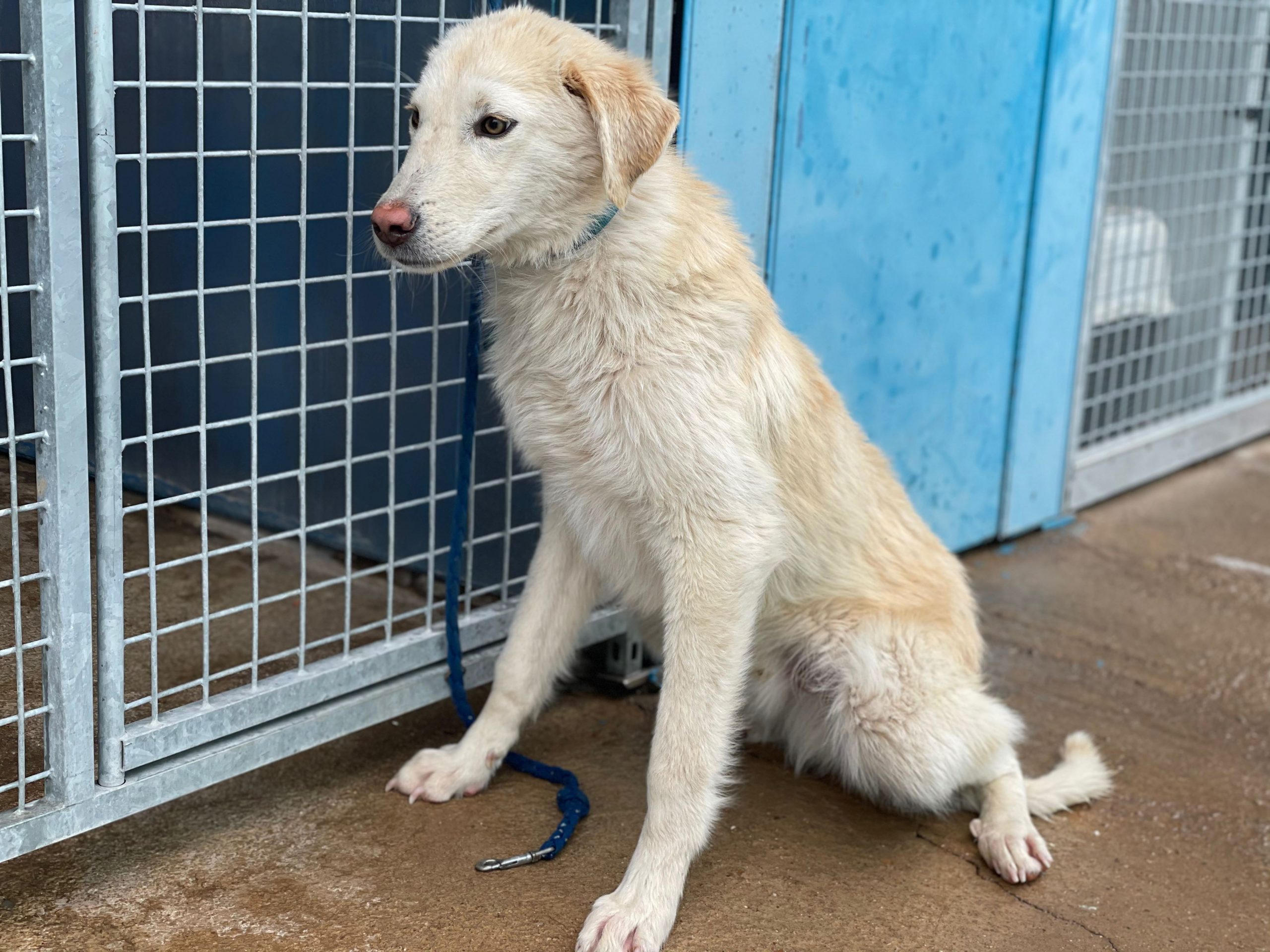 Antón es un perro muy asustadizo y que jamás se puso una correa, hay que tener muchísima paciencia con él y no creo se la mejor oción ahora mismo como compañero de una niña.