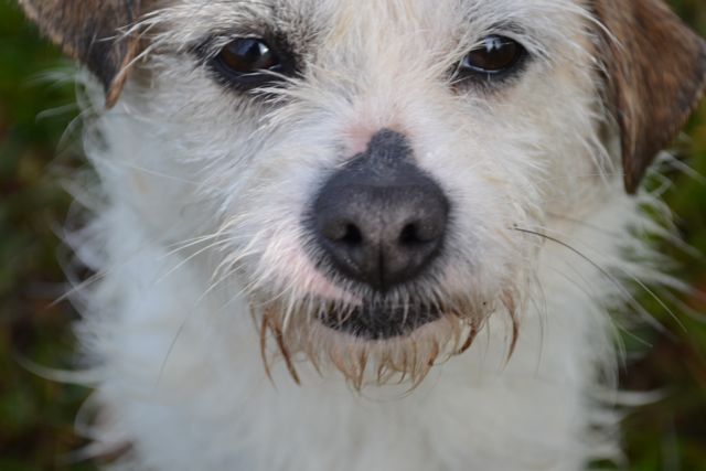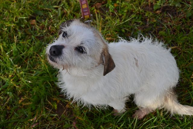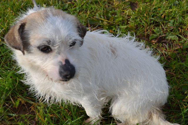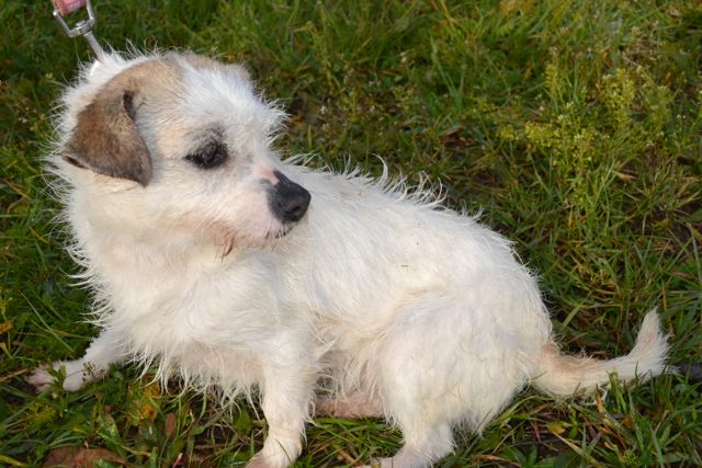 Clara, que así la hemos bautizado, es posible que ni se llame así. Es muy probable que este perdida, lleva un collar antiparasitos color marron y lo lleva sujeto entre sí con hilo de coser para que no se caiga, nadie se toma tantas molestias en hacer eso para abandonarlo despues. Puede que la esten buscando y ella es muy sociable con las personas, no extraña a nadie, es buena y sociable con otros perros.