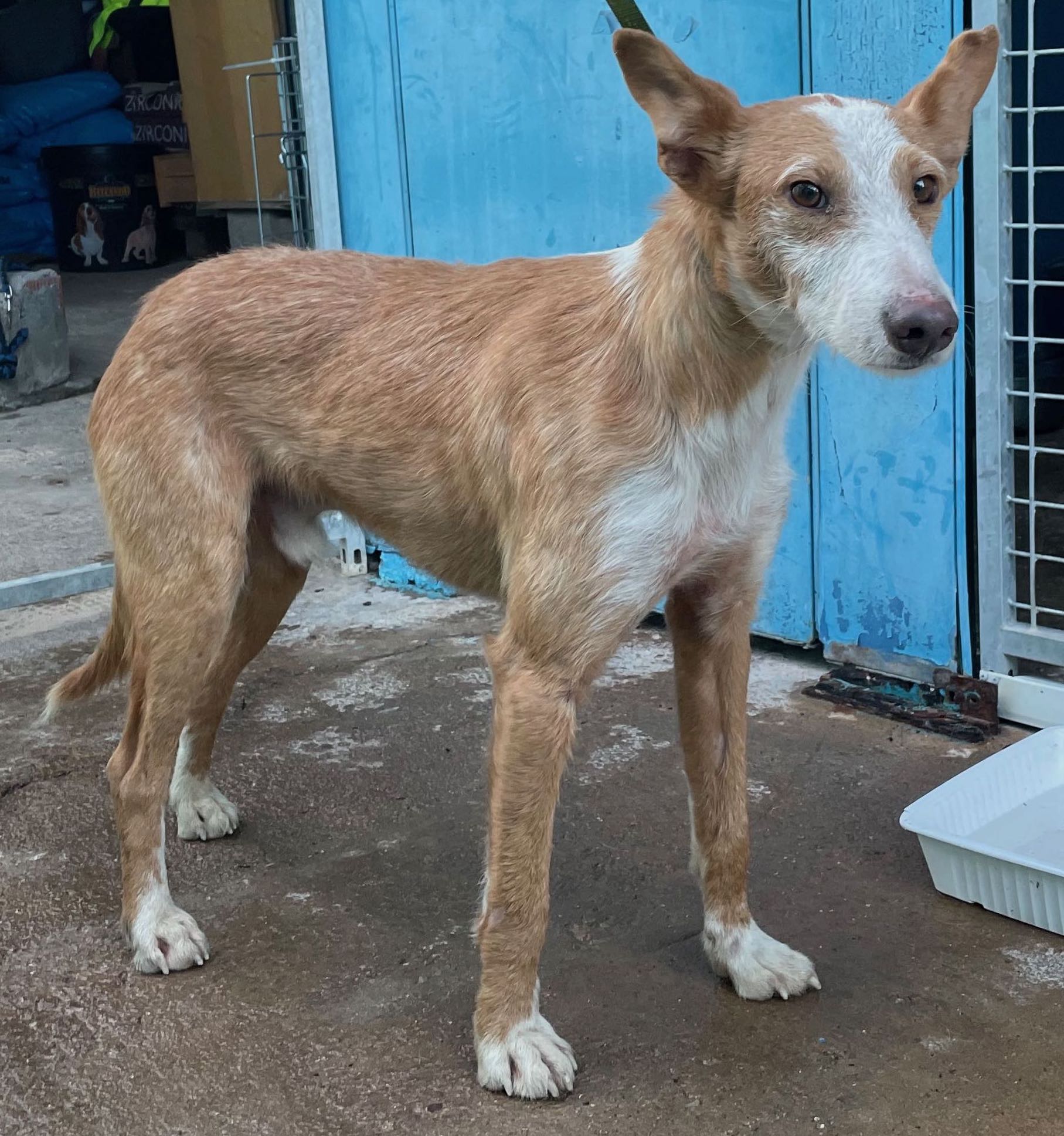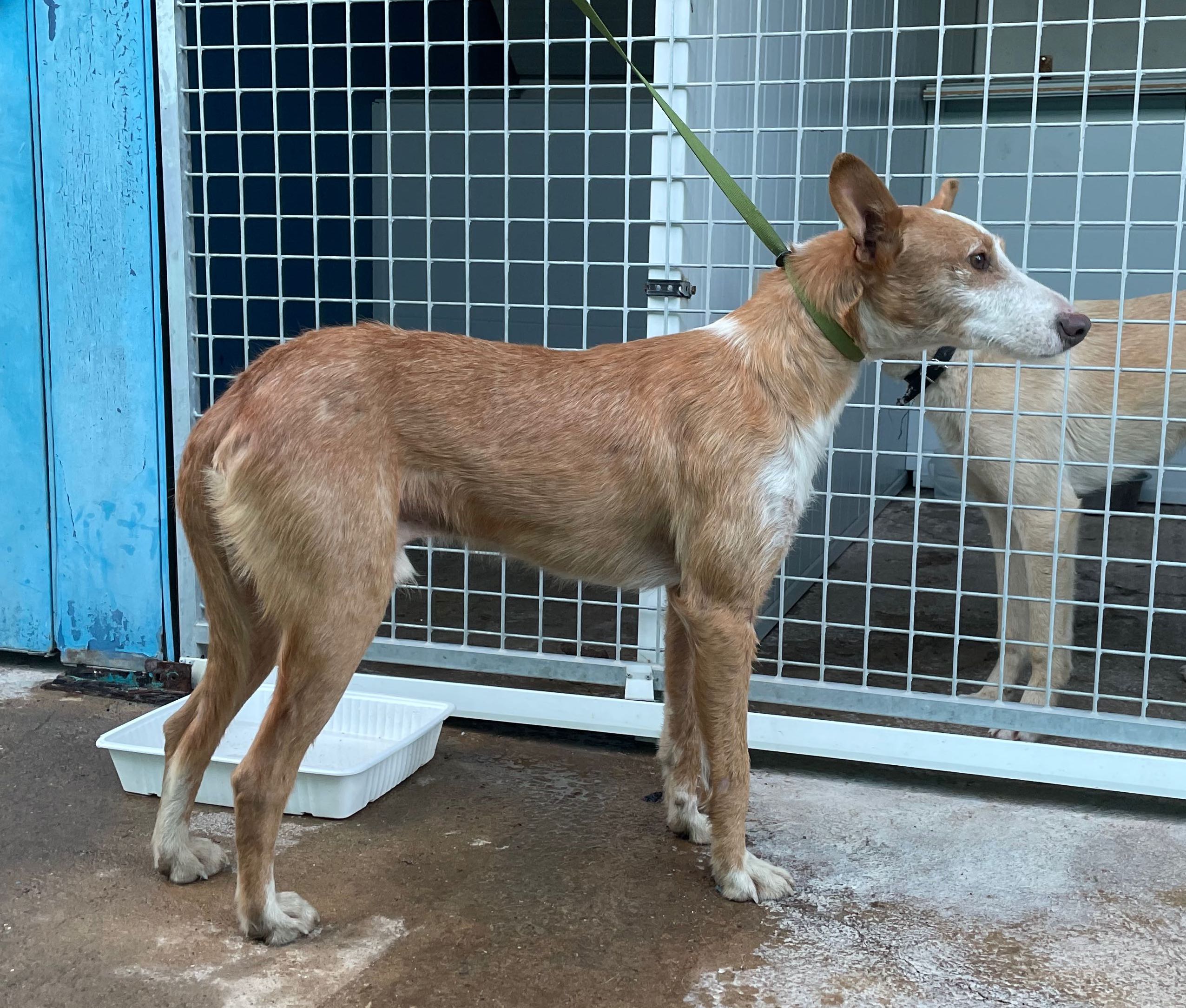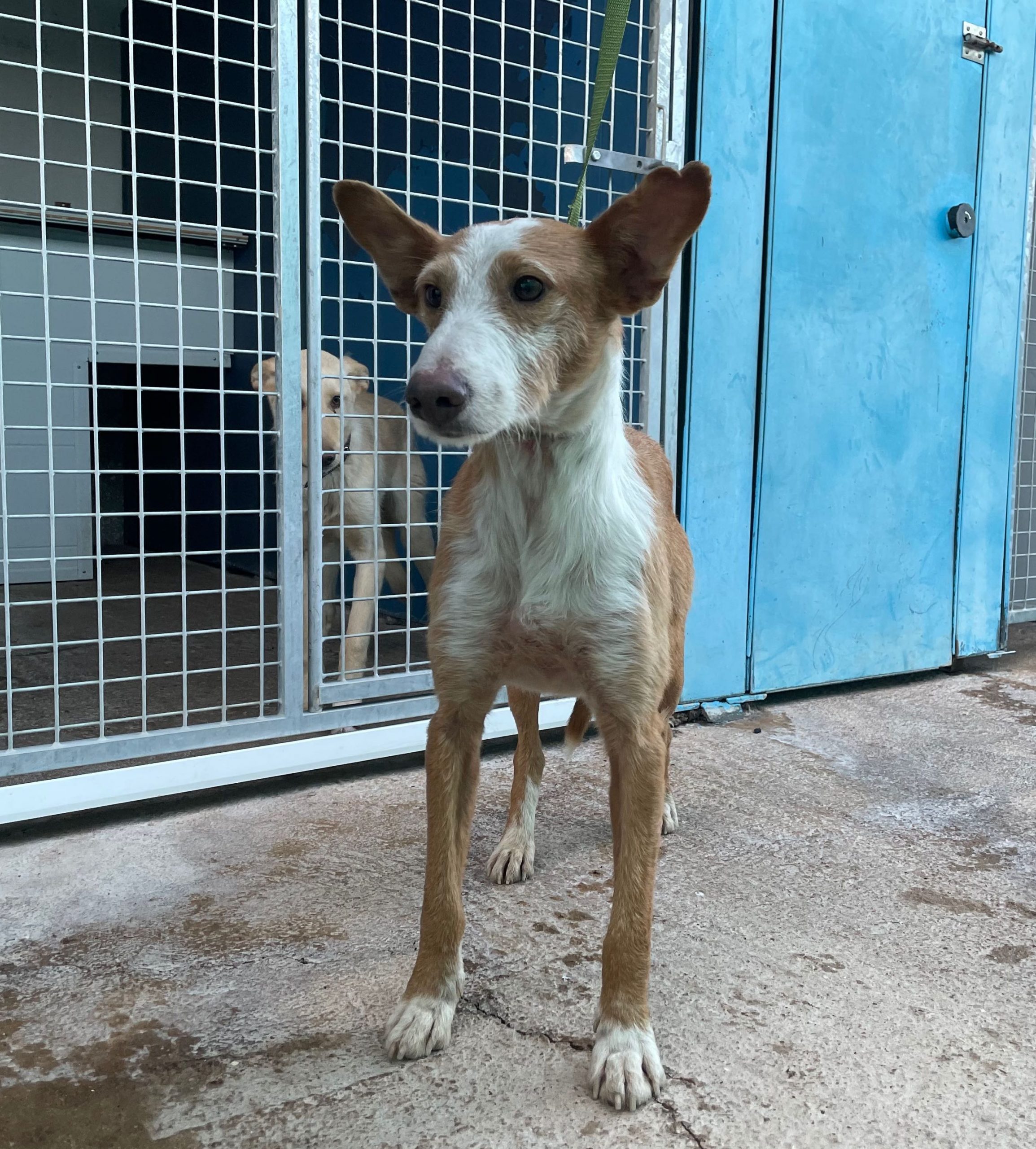 Cereus es un podenco que andaba vagamundo por los alrededores de Puertollano, recibimos varias llamadas pero era imposible de coger.