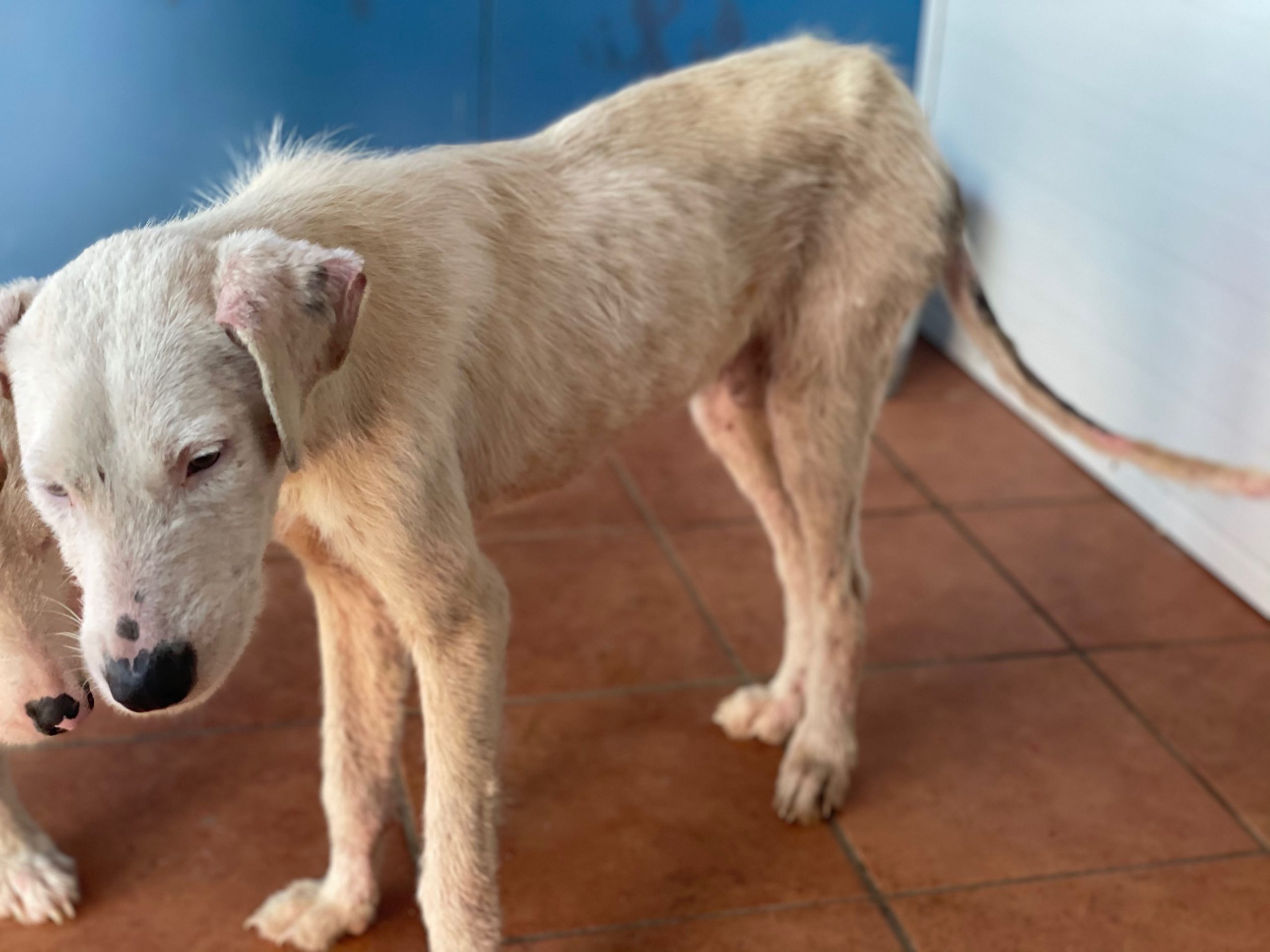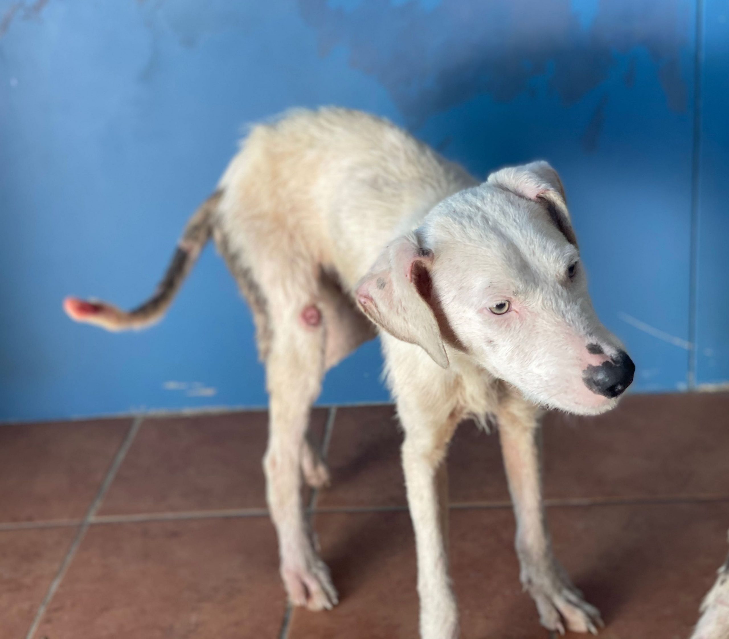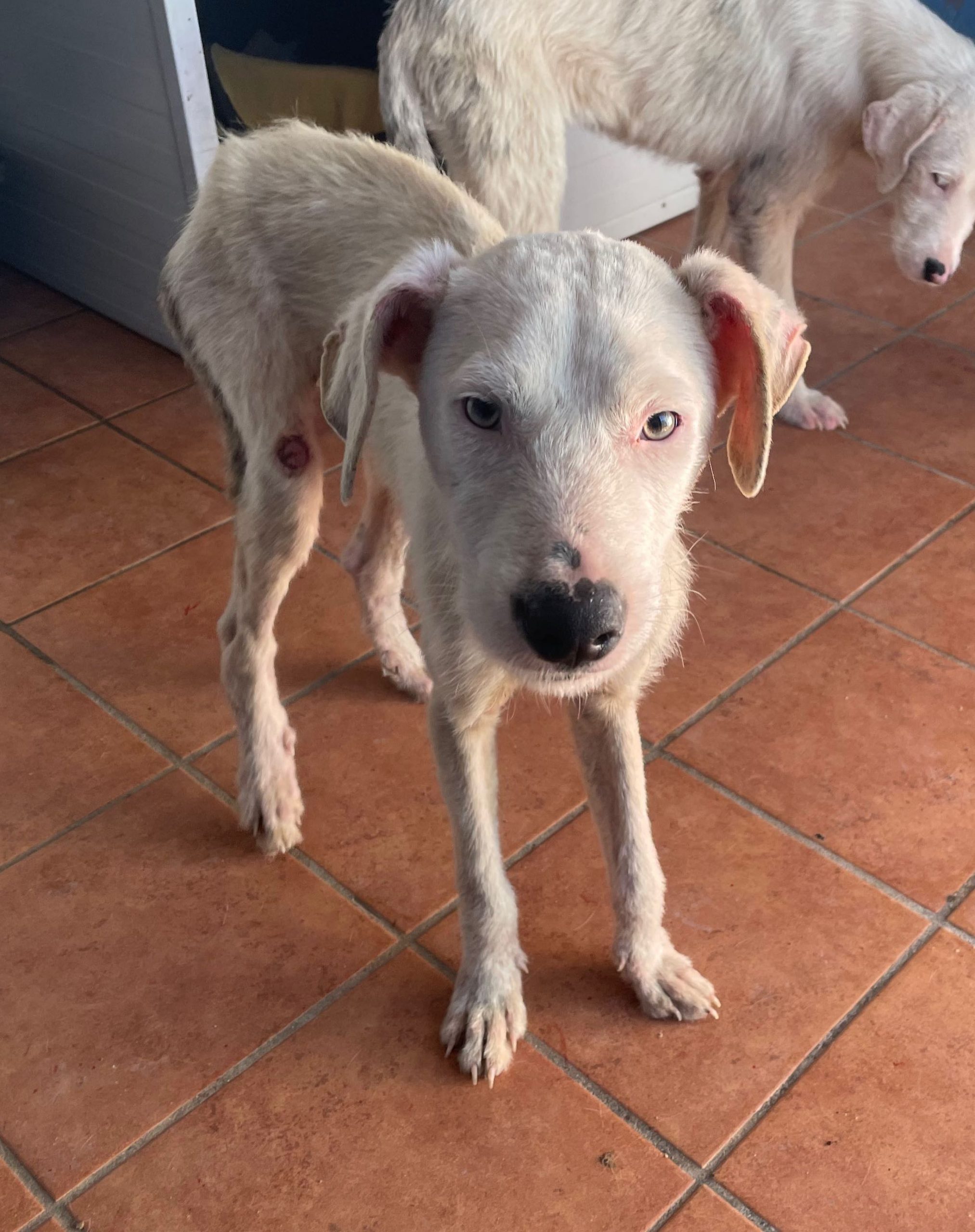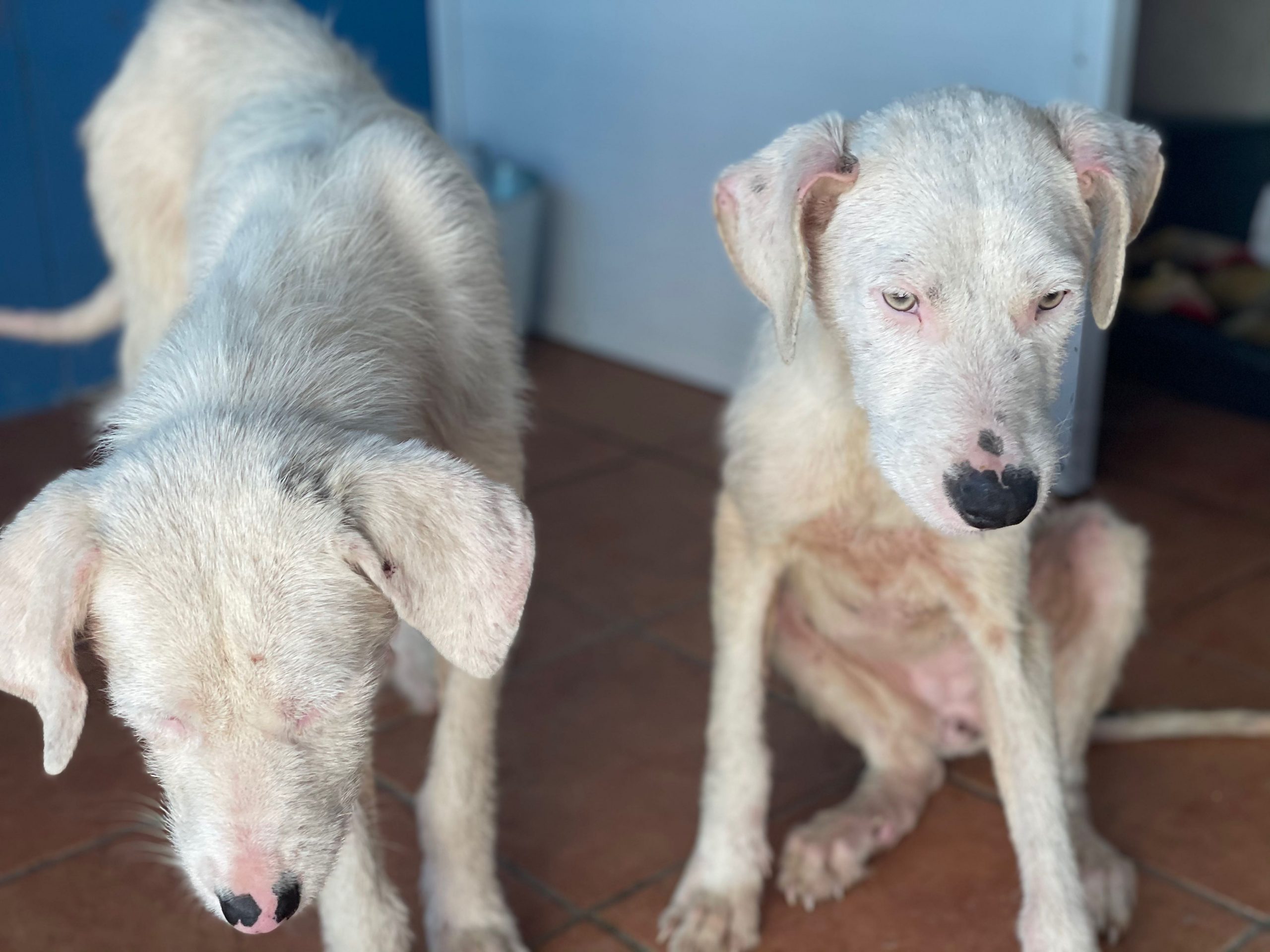 Maca, Guayaba y Ginkgo han sido recogidos en un estado lamentable, estaban super delgados, llenos de pulgas y garrapatas, heridas….vagando los tres juntos por el campo.