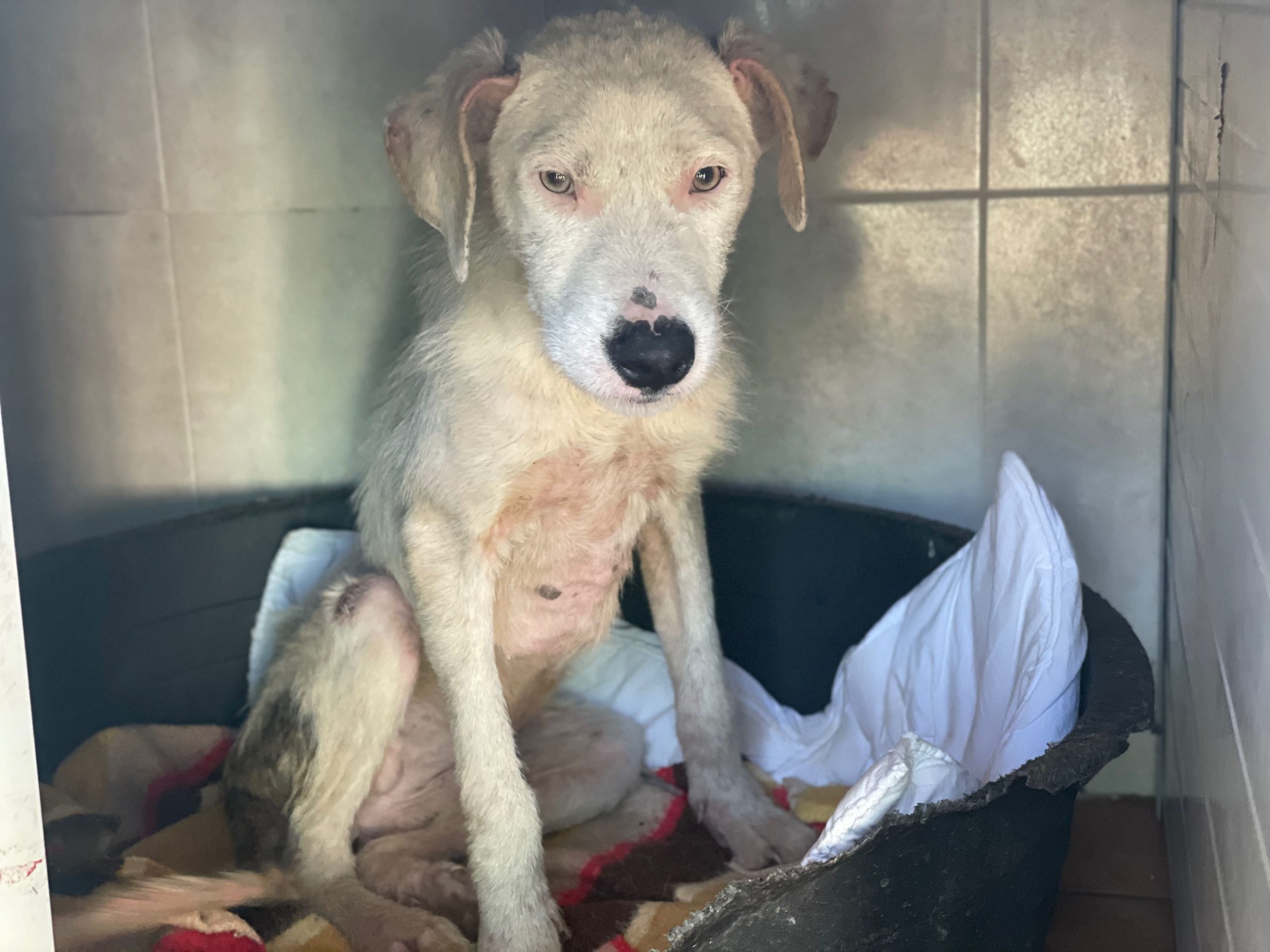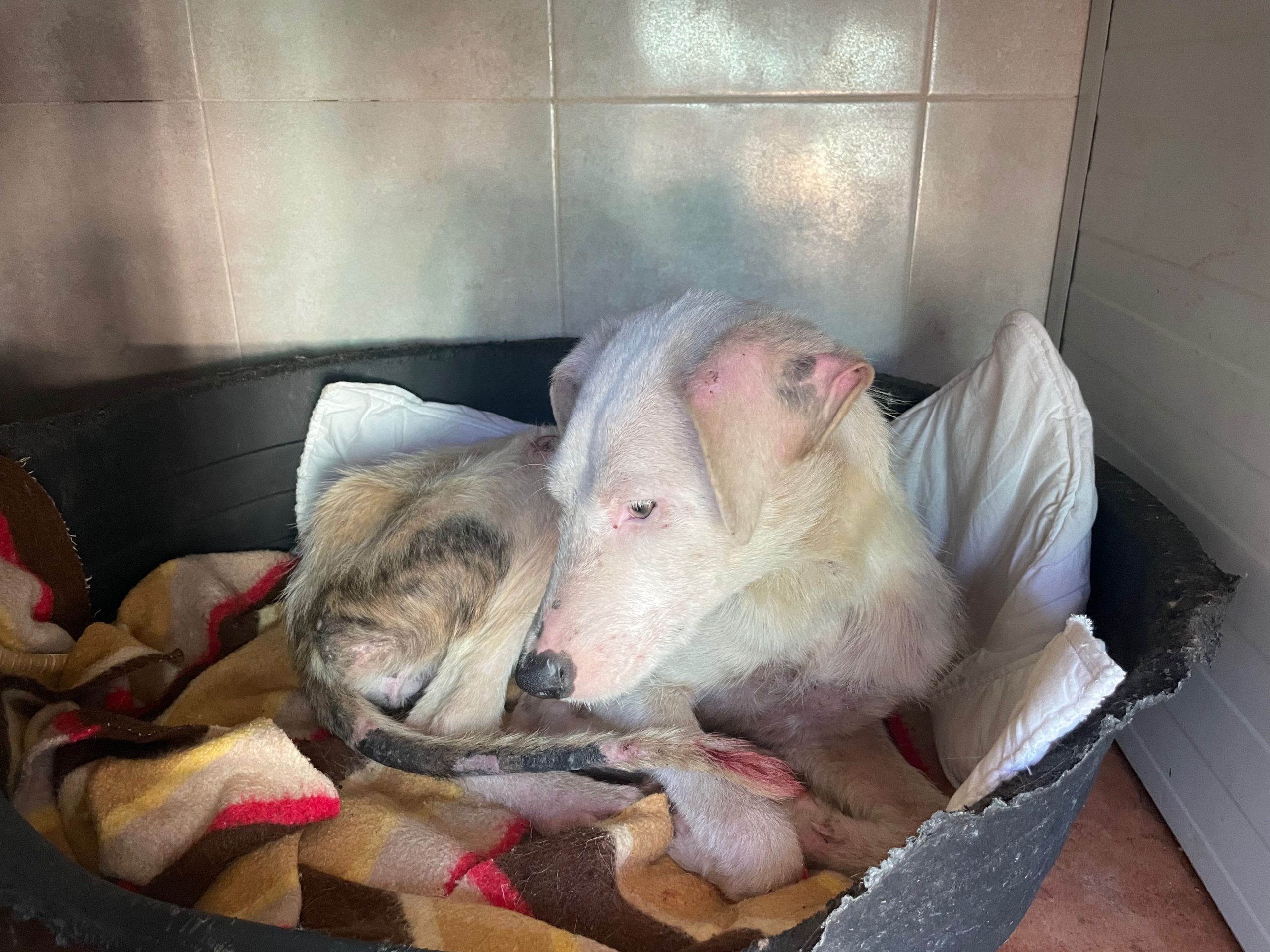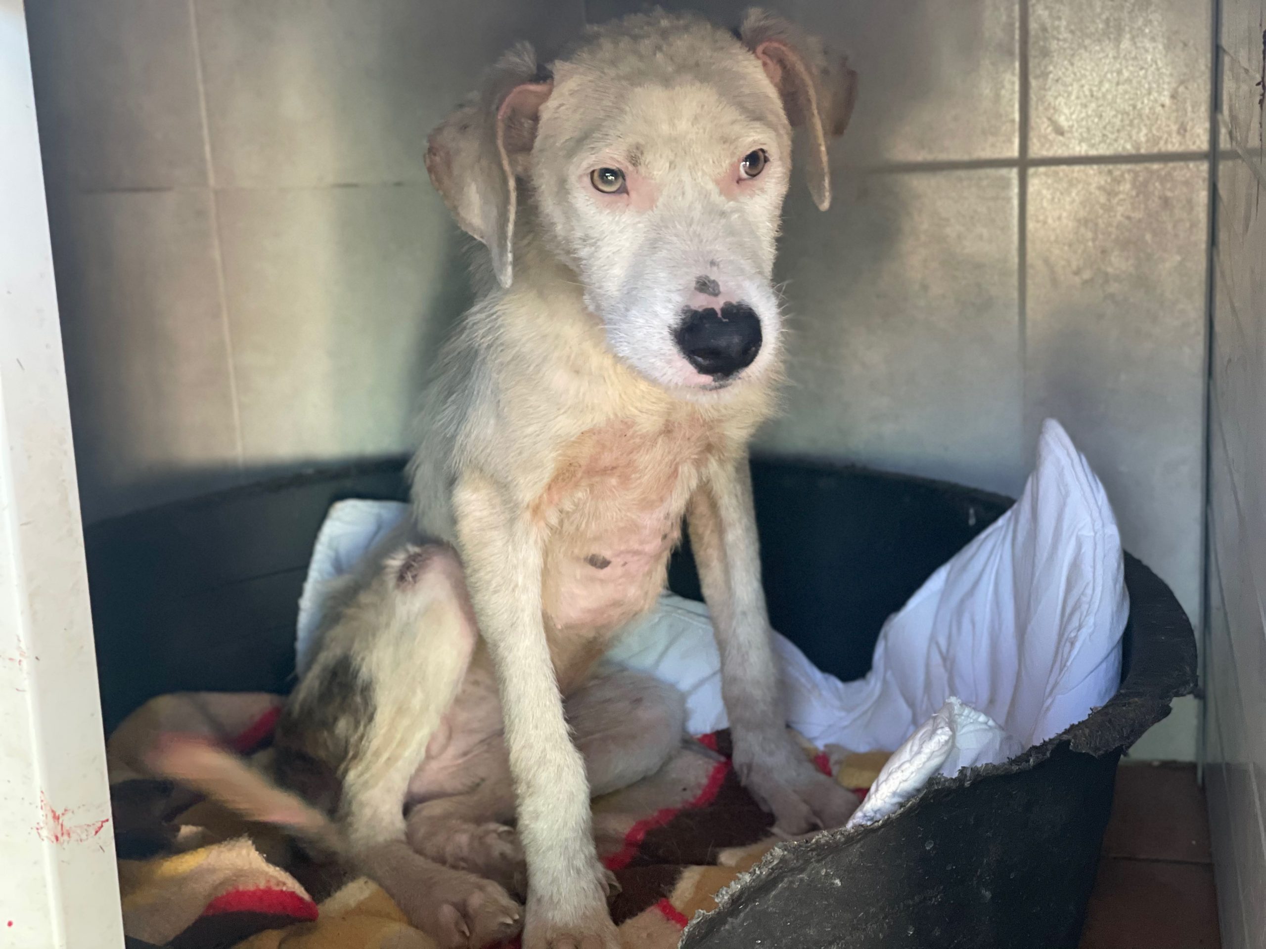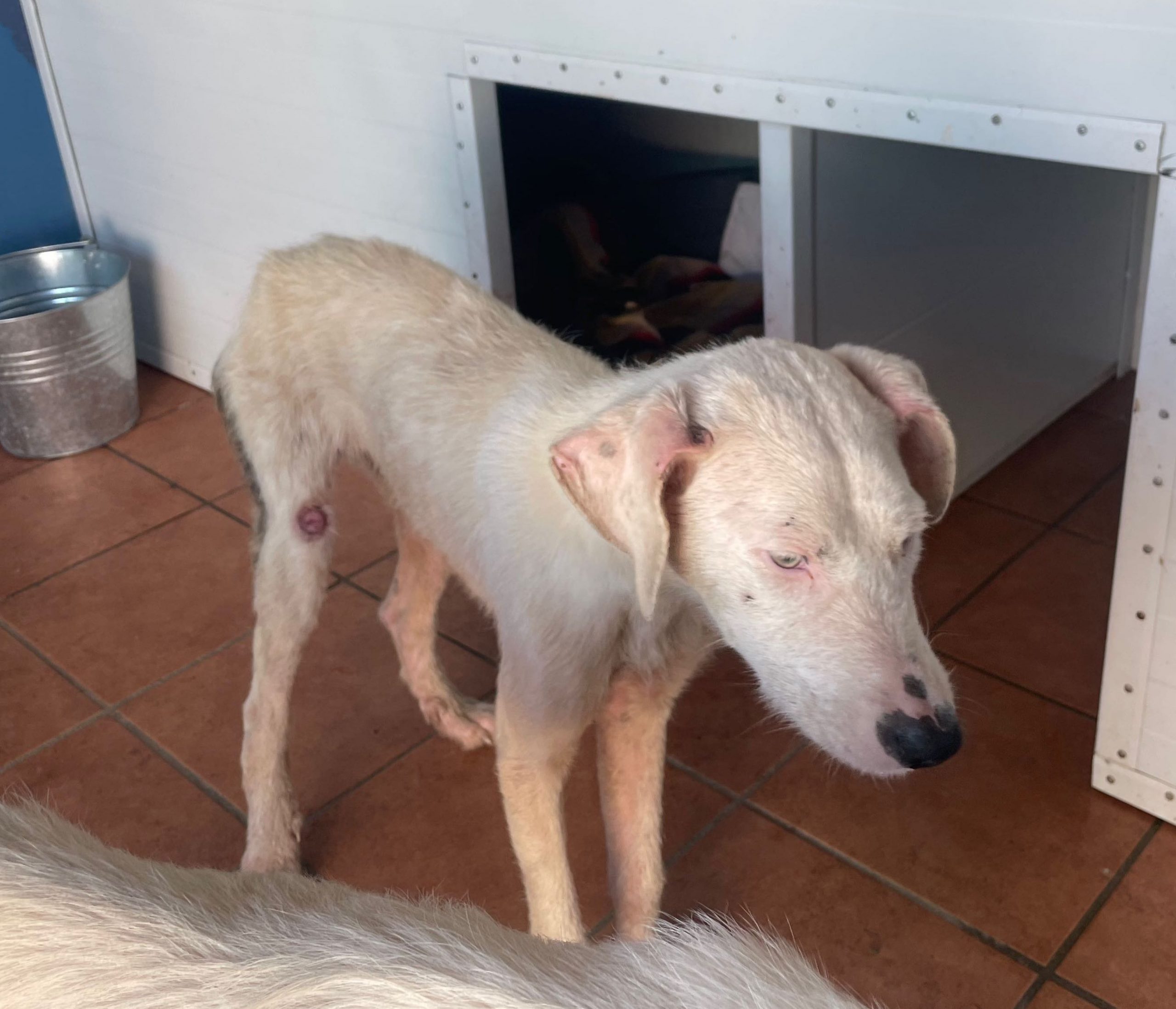 Maca, Guayaba y Ginkgo han sido recogidos en un estado lamentable, estaban super delgados, llenos de pulgas y garrapatas, heridas….vagando los tres juntos por el campo.