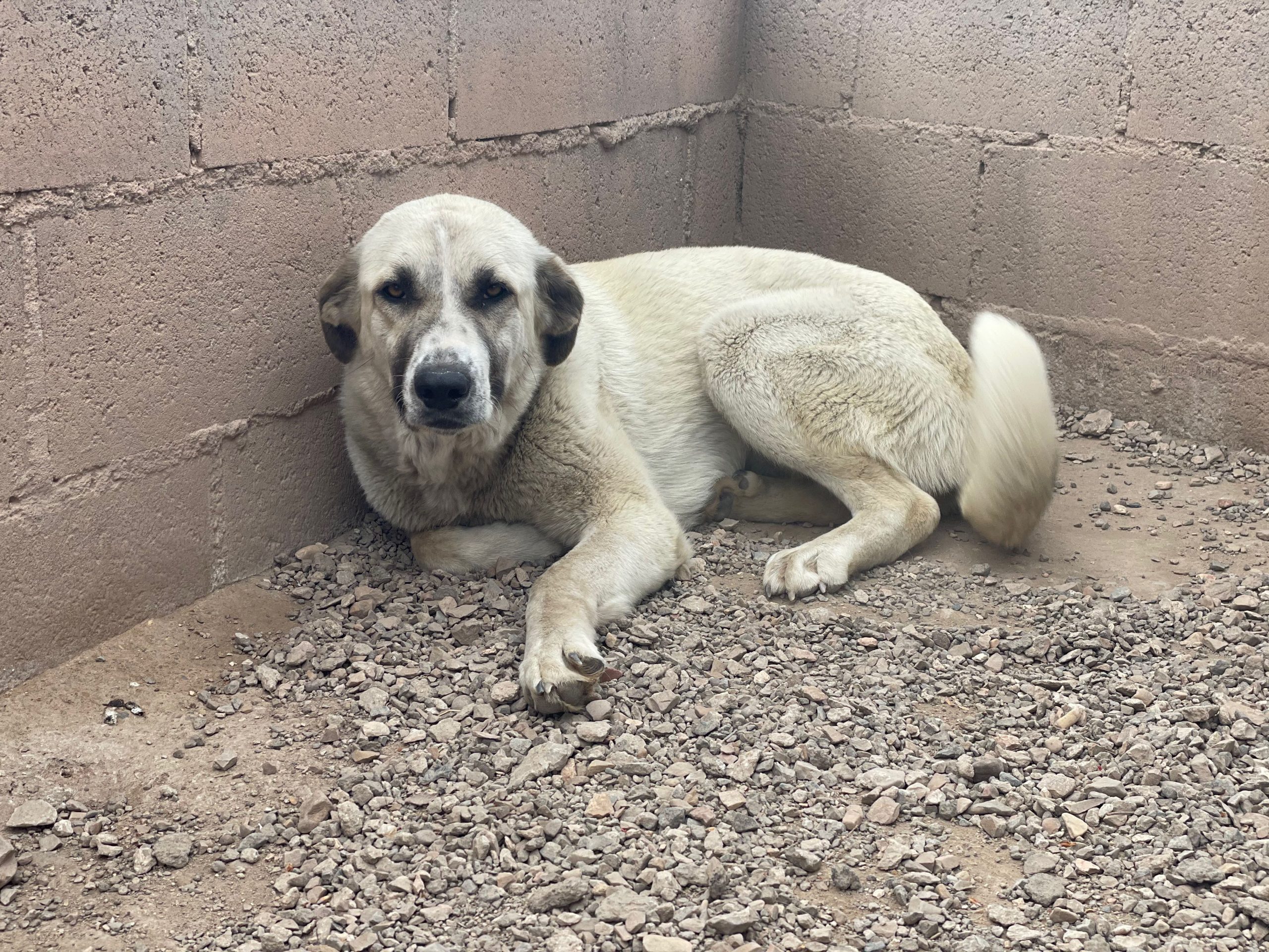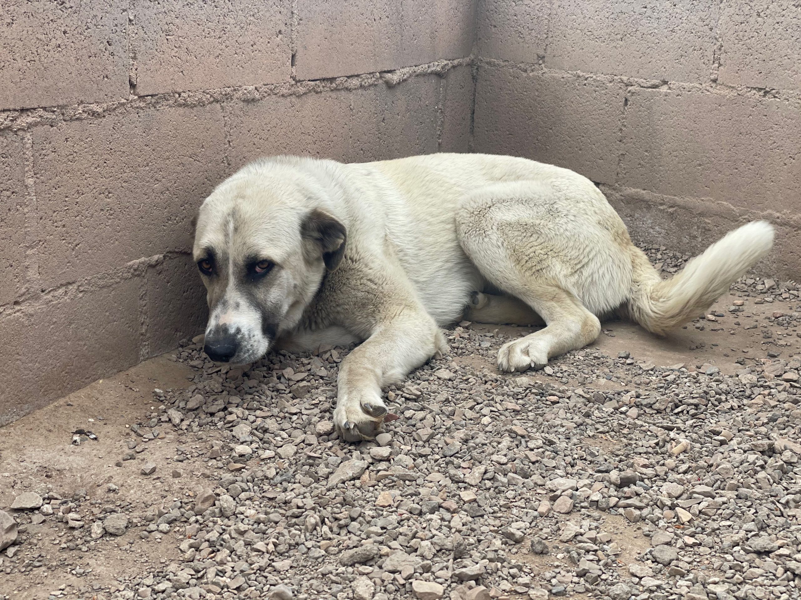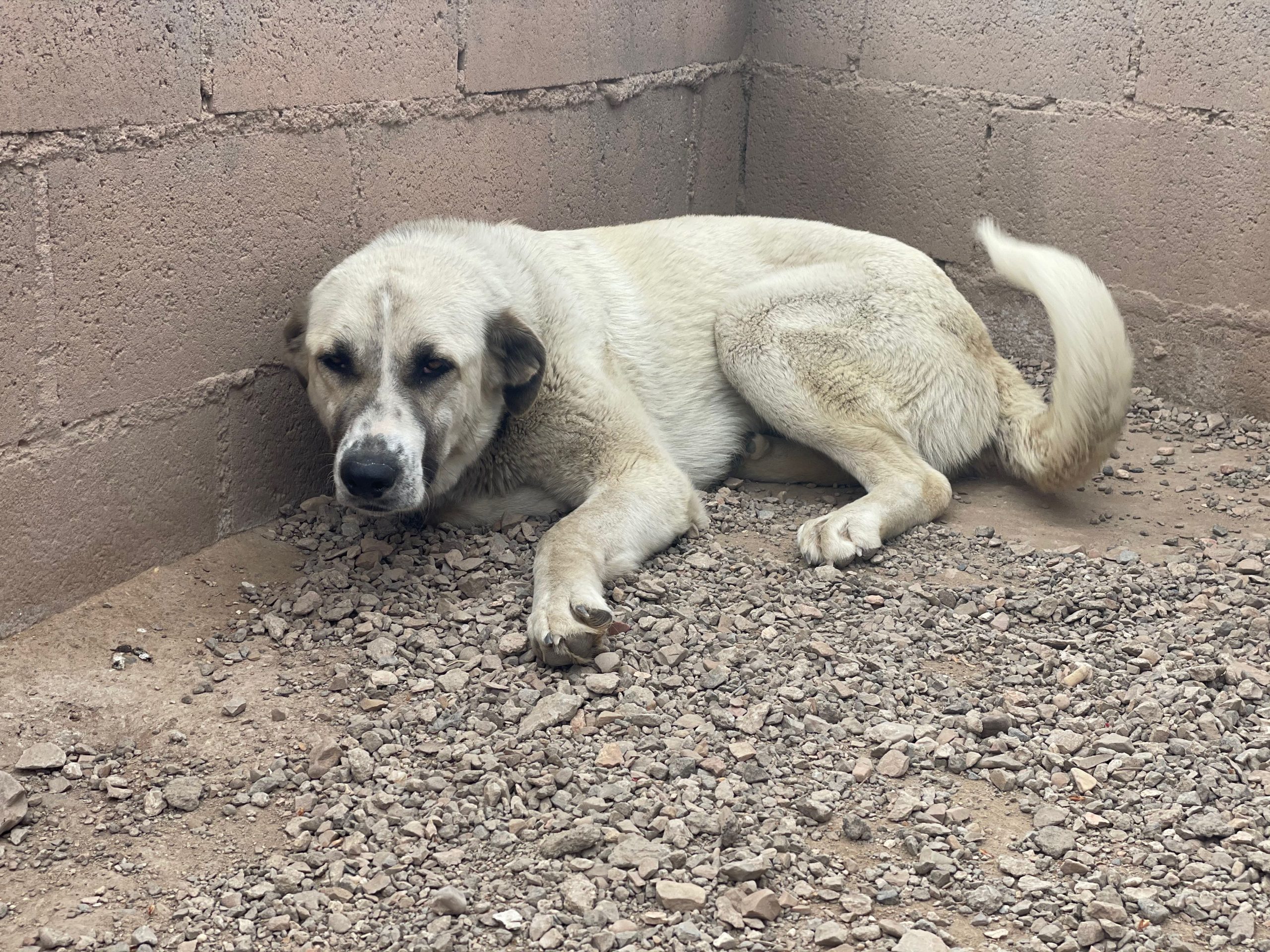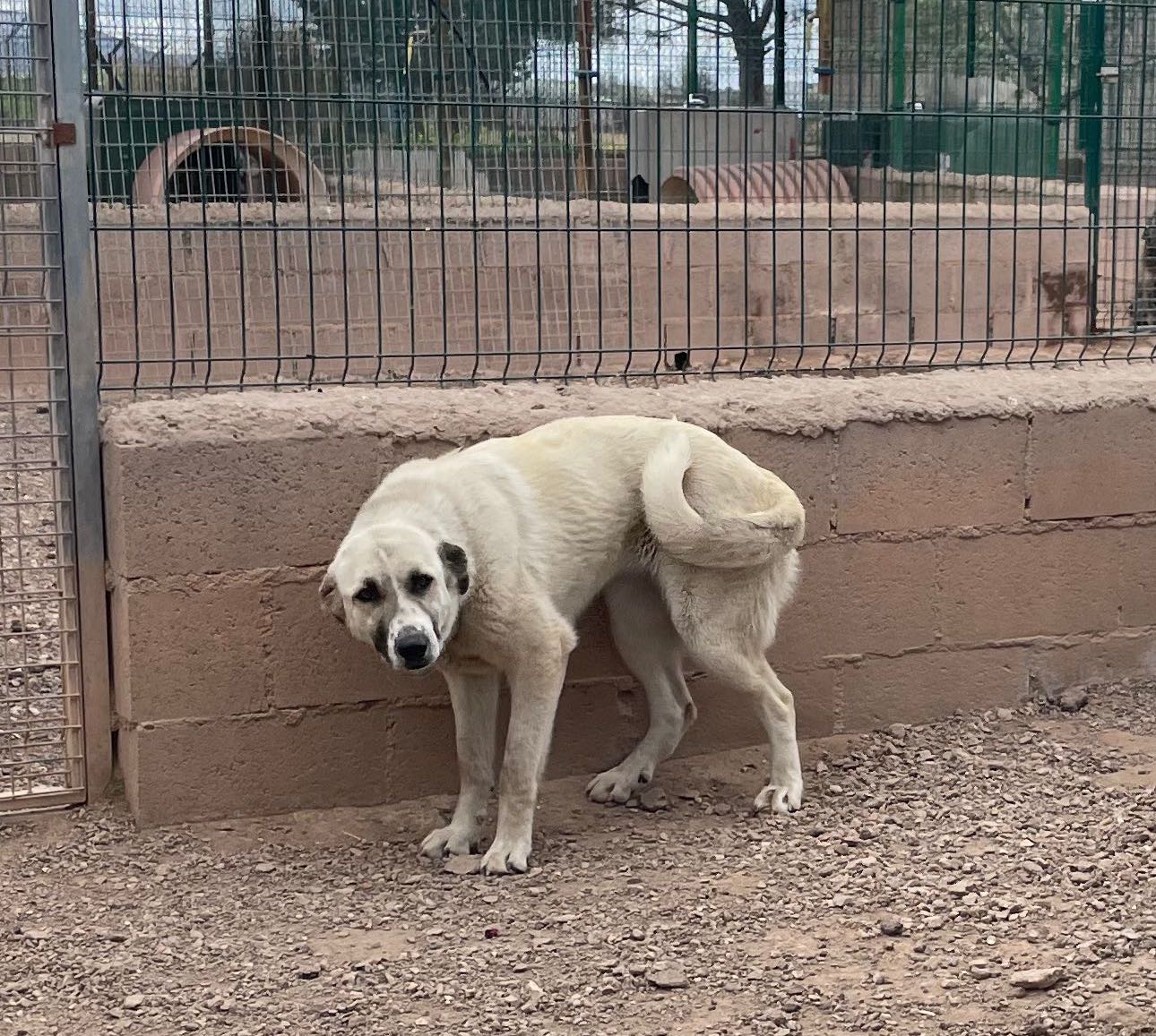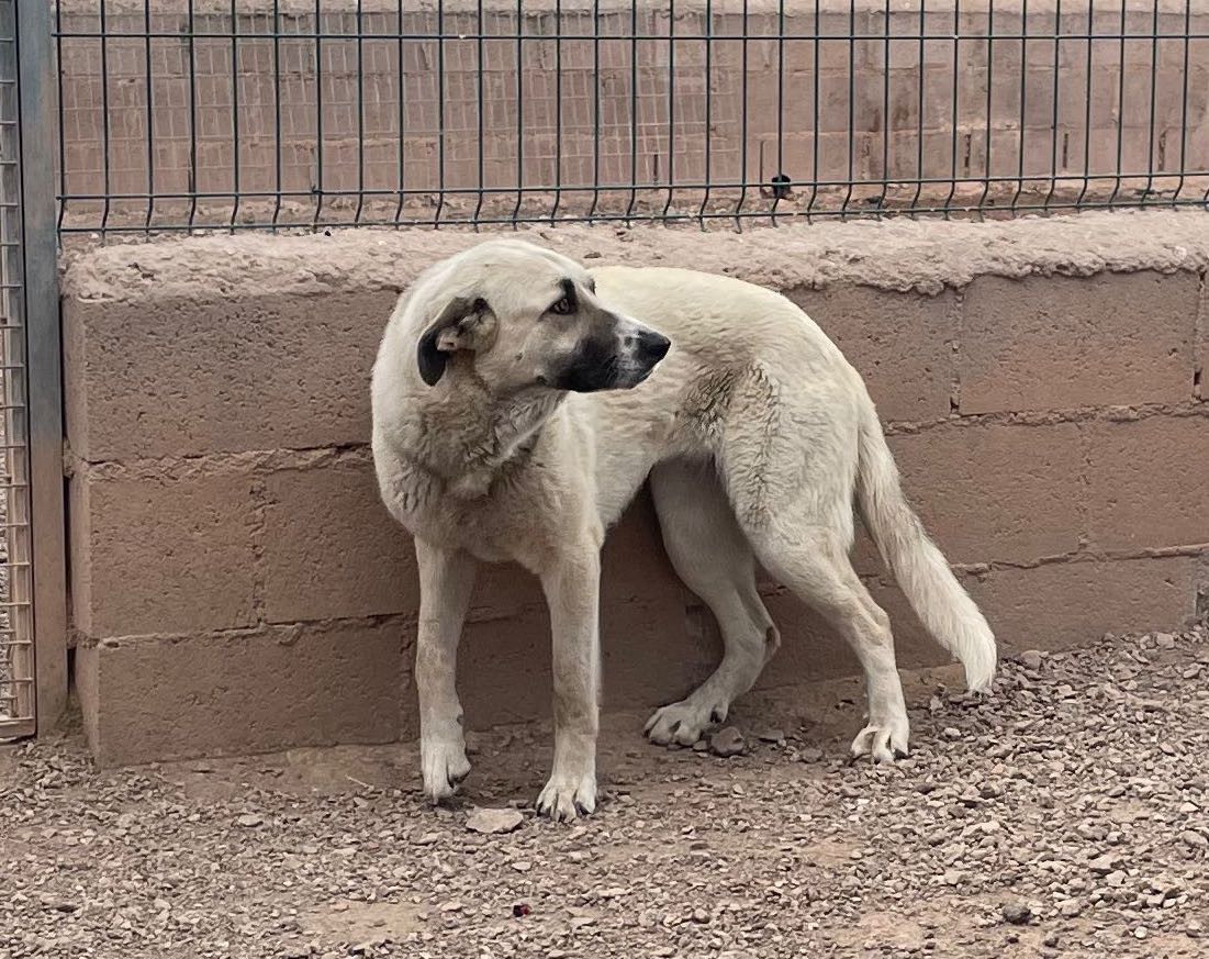 Rosita es una cachorrona cruce de mastín que andaba por el pueblo cruzando carreteras.