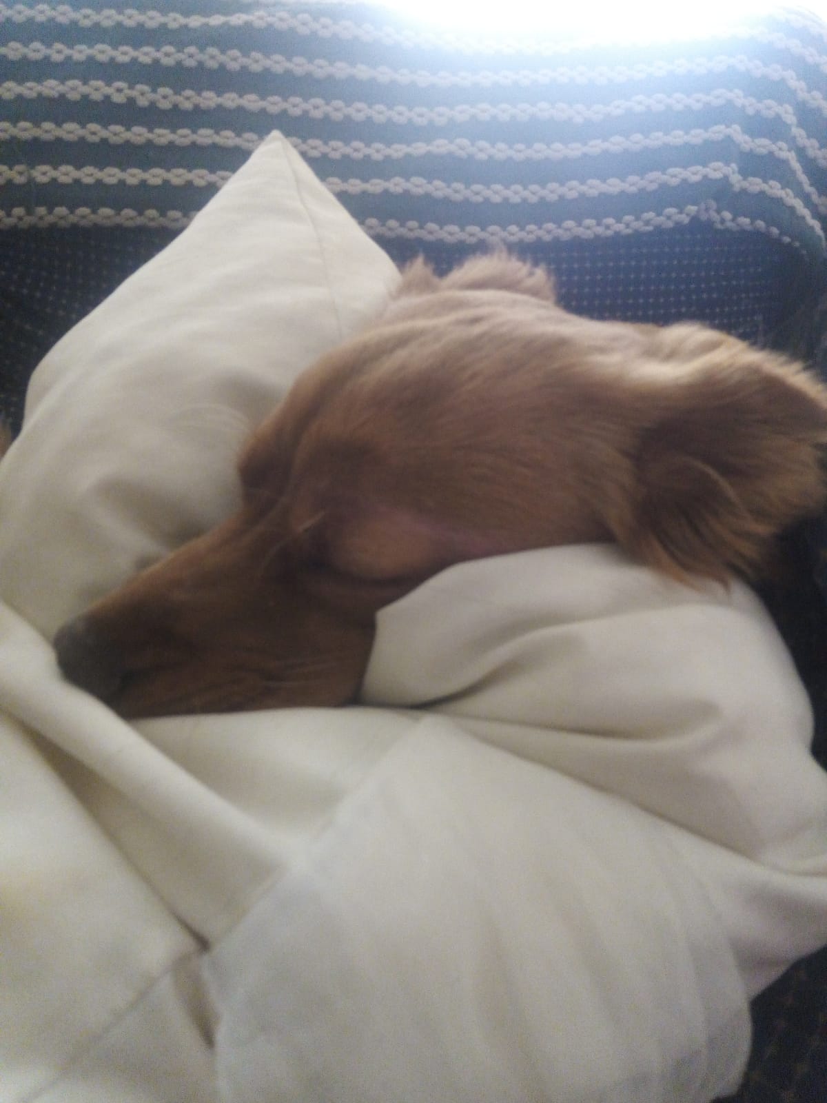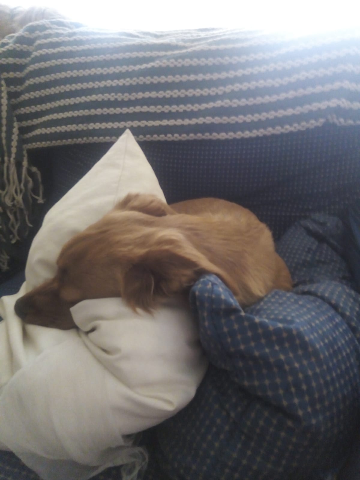 Es un auténtico amor con personas y otros perros, también con gatos.