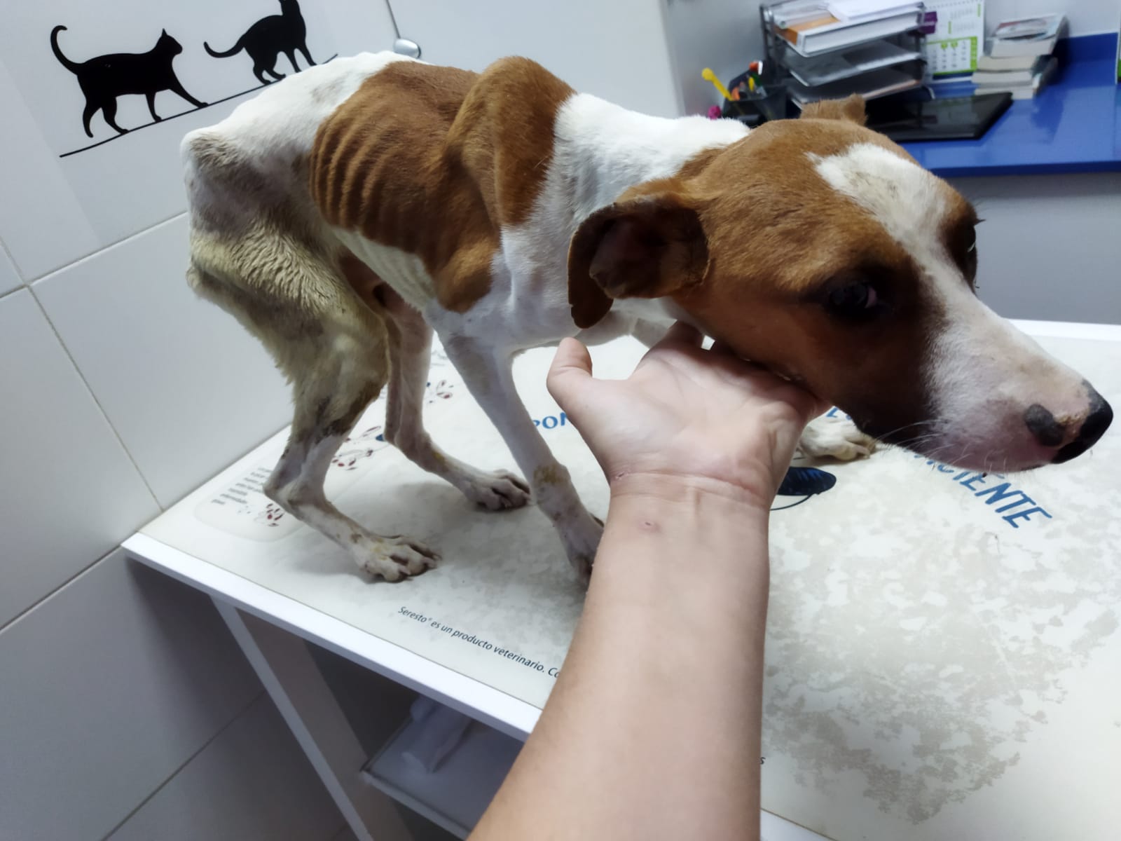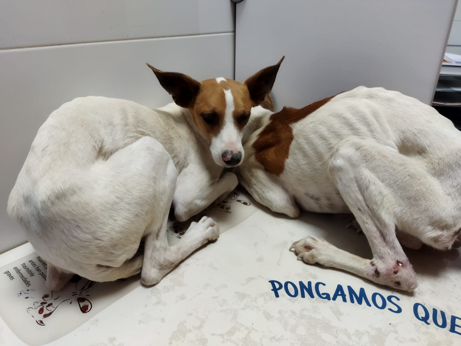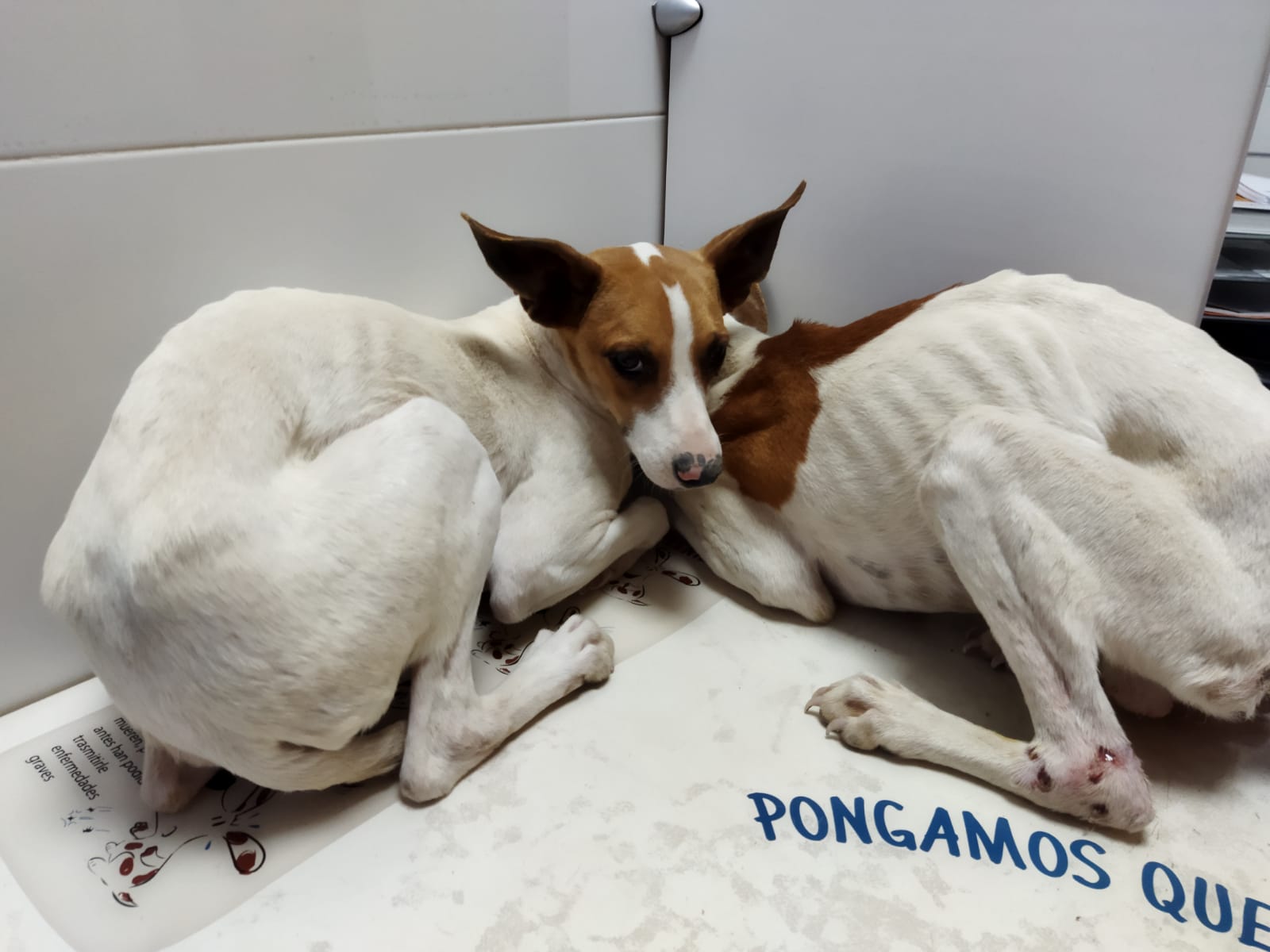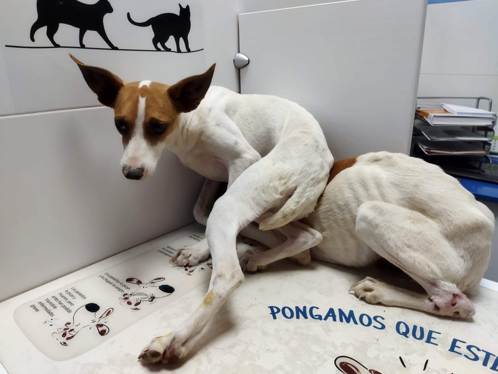 En estas condiciones encontramos a Sándalo y Camelia, desnutridos, llenos de parasitos, con fiebre , anemia….tuvimos que llevarlos inmediatamente a la Clinica Veterinaria donde se les hicieron pruebas y se quedaron ingresados.