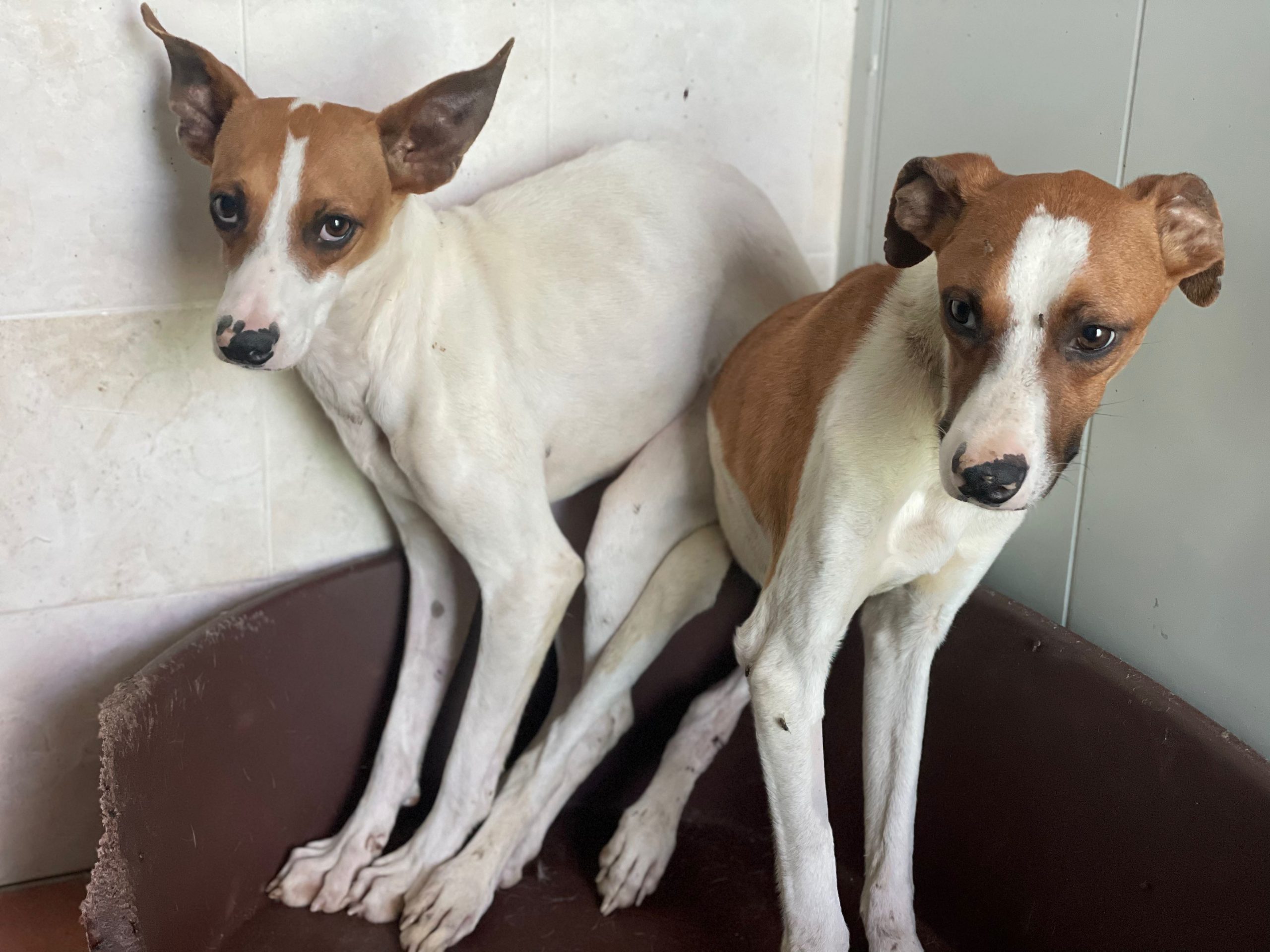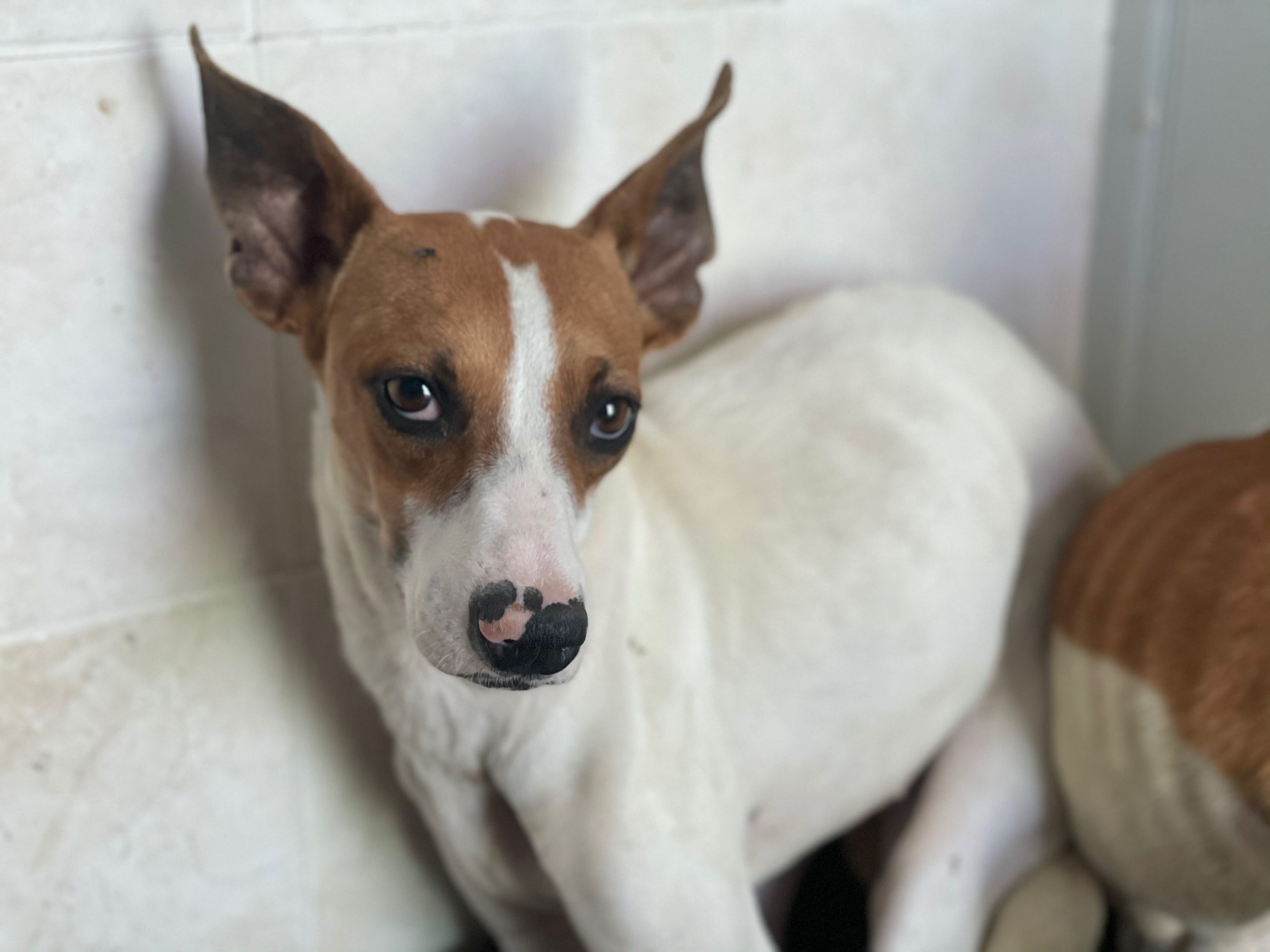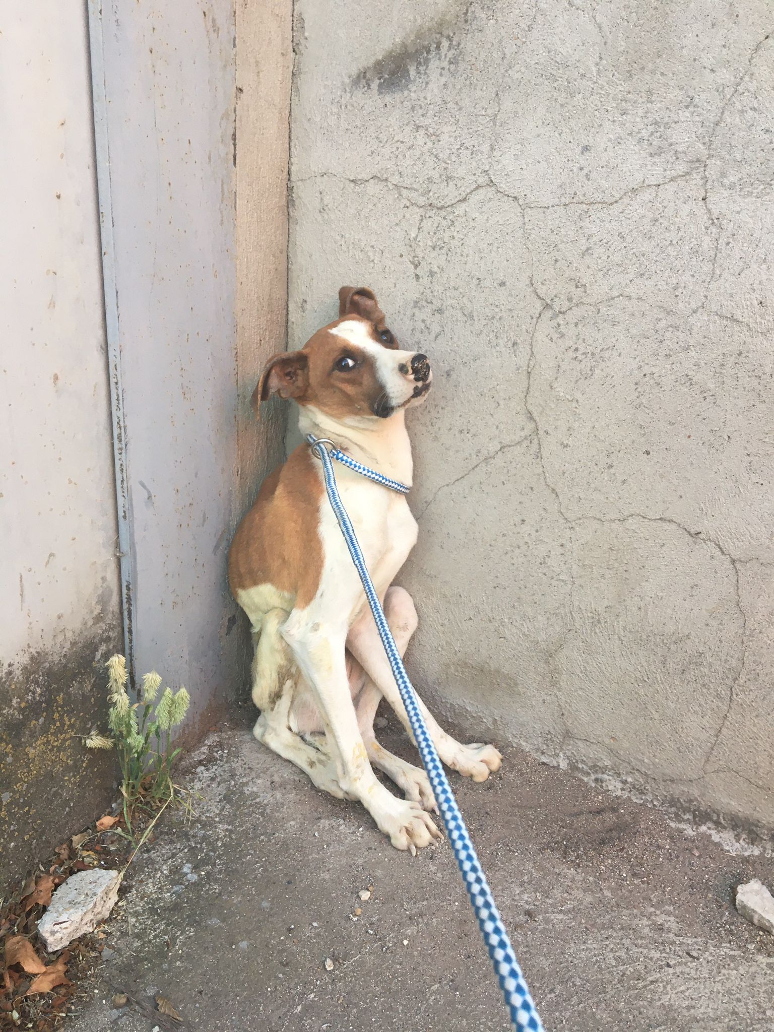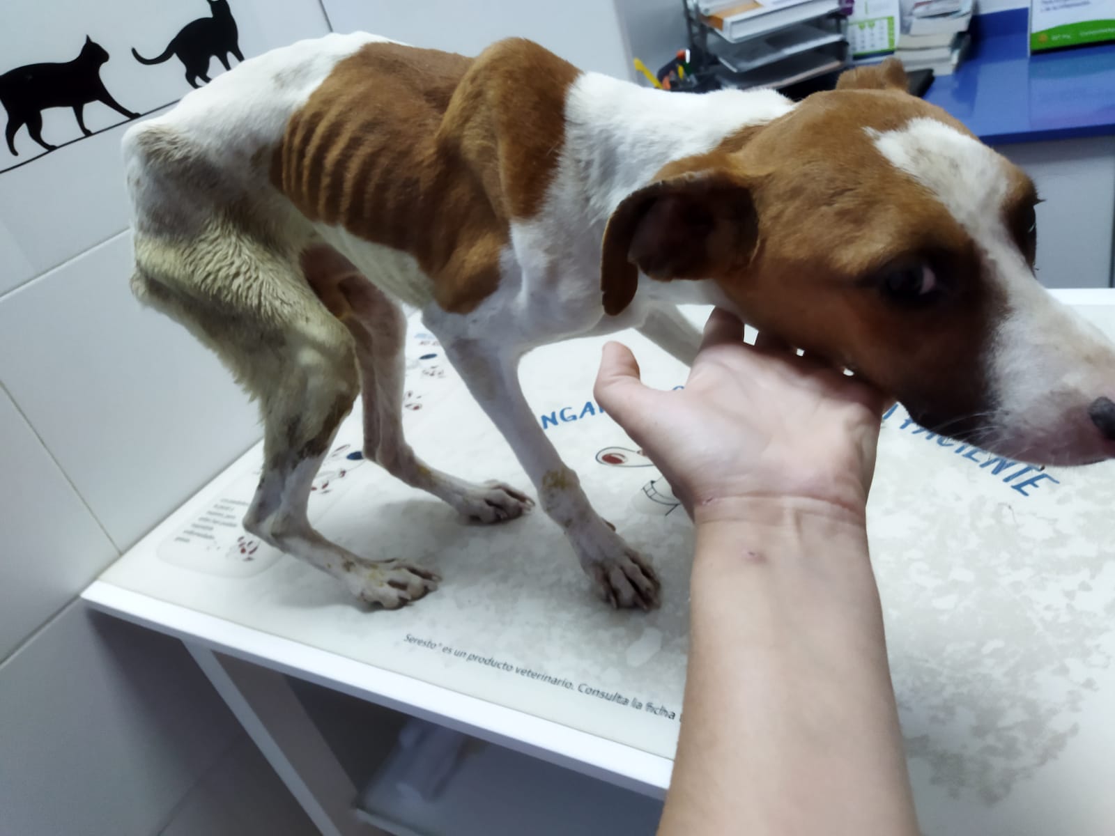 En estas condiciones encontramos a Sándalo y Camelia, desnutridos, llenos de parasitos, con fiebre , anemia….tuvimos que llevarlos inmediatamente a la Clinica Veterinaria donde se les hicieron pruebas y se quedaron ingresados.