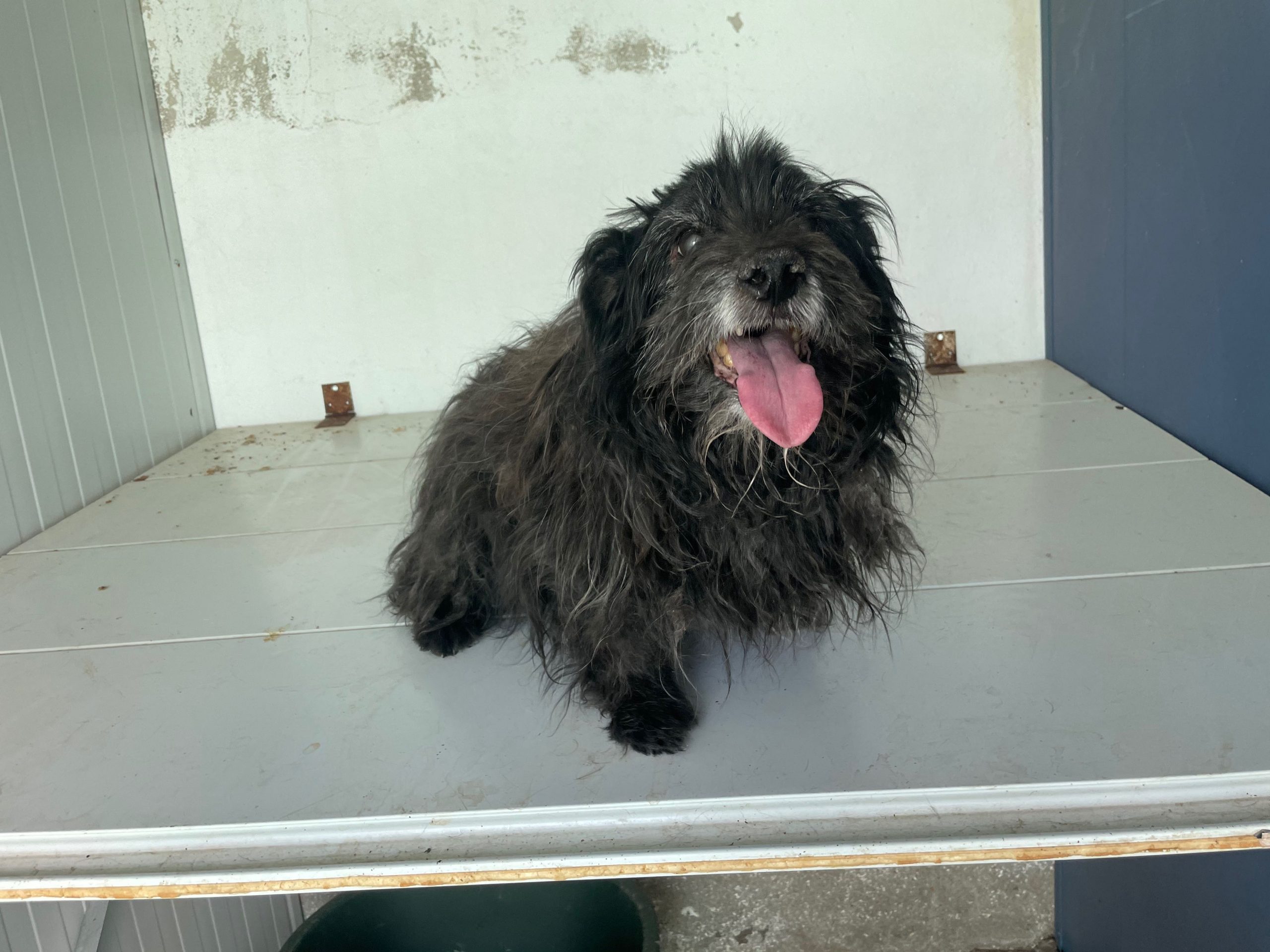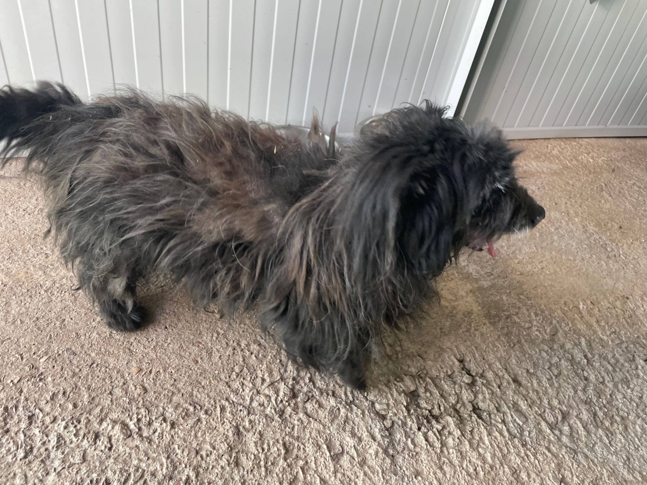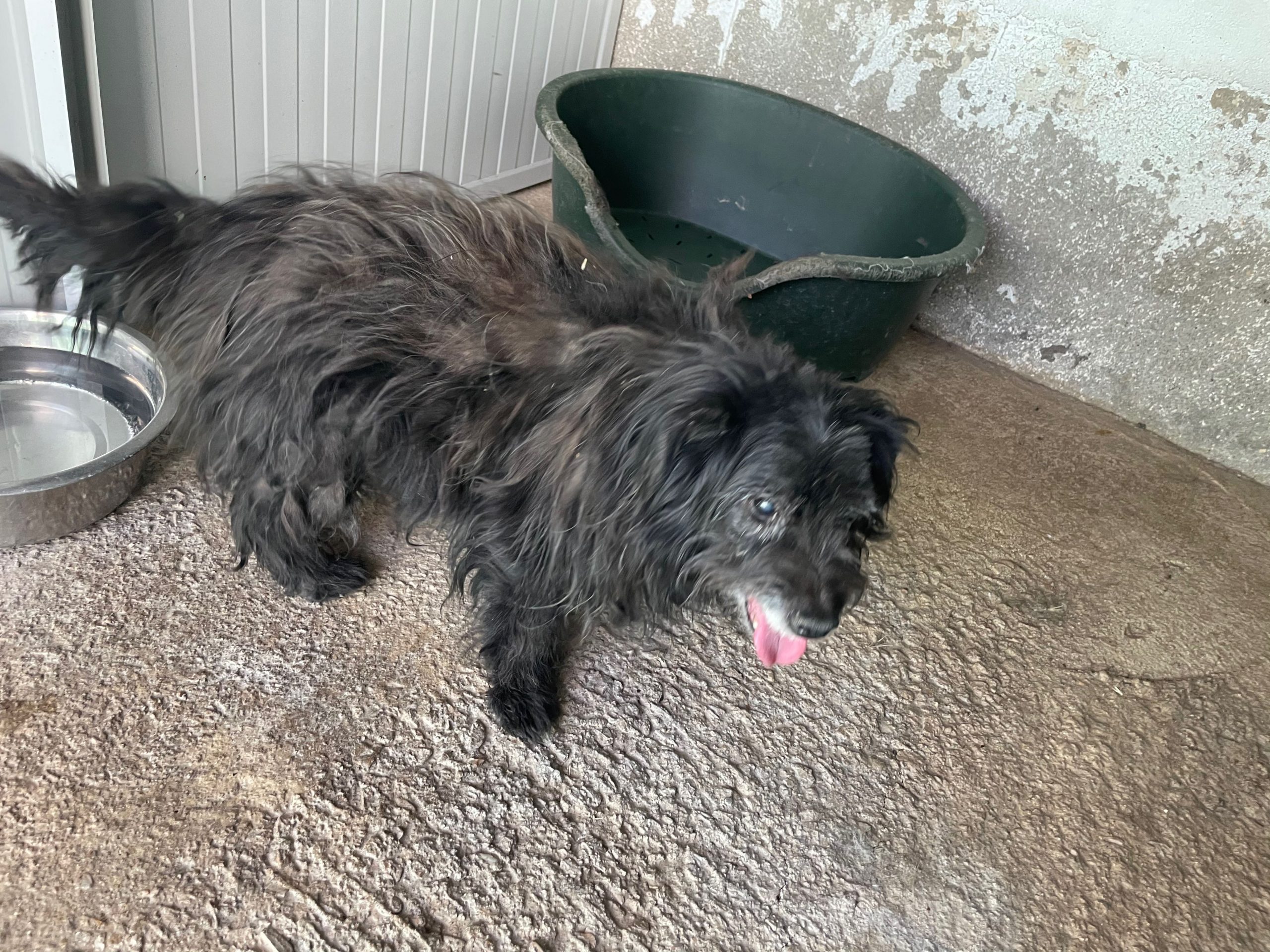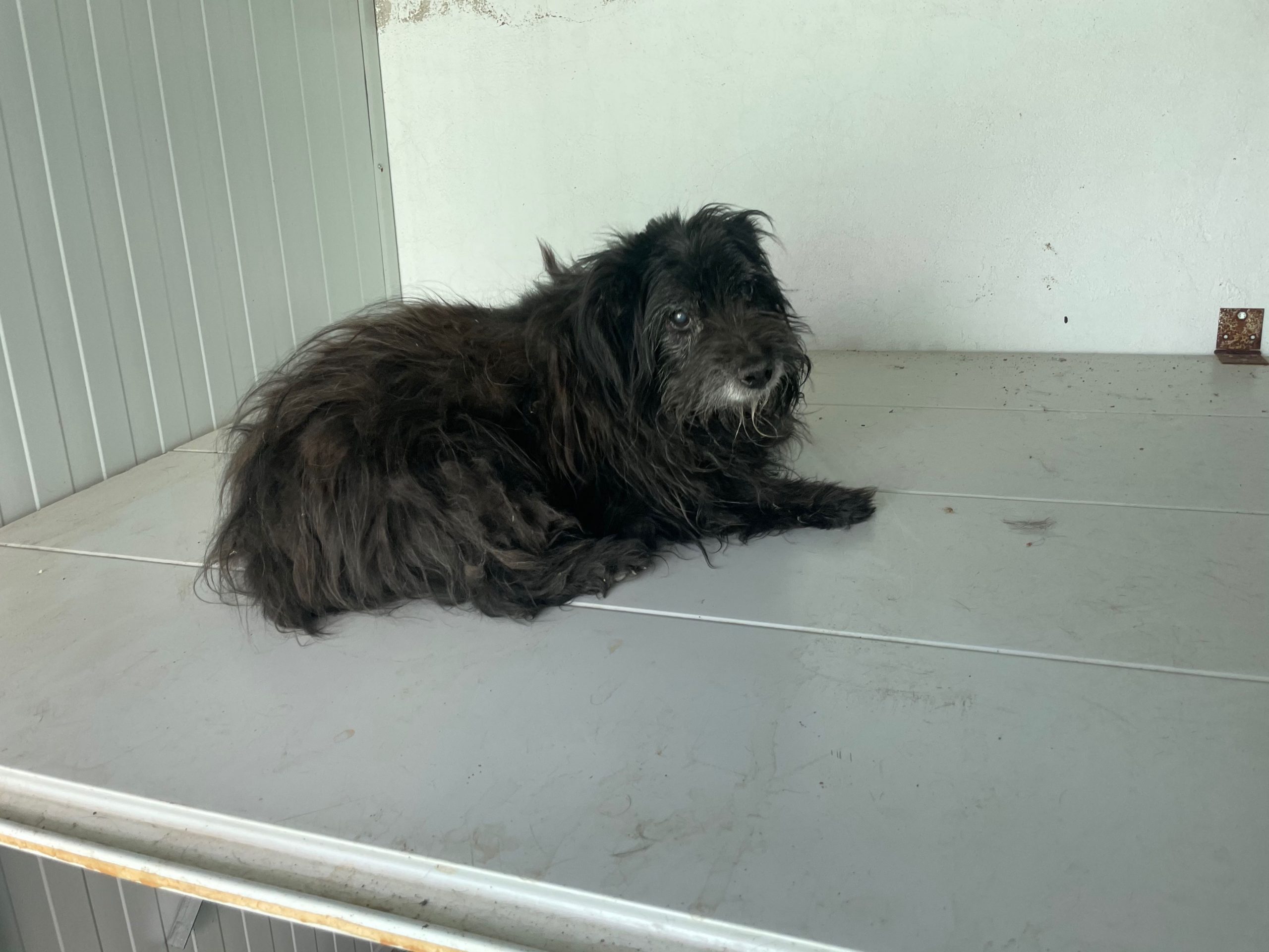 Ha llegado además muy mal cuidado, el pelo lleno de nudos, con bichos, heridas bajo los nudos de pelo, que ya se lo hemos cortado, una pena.