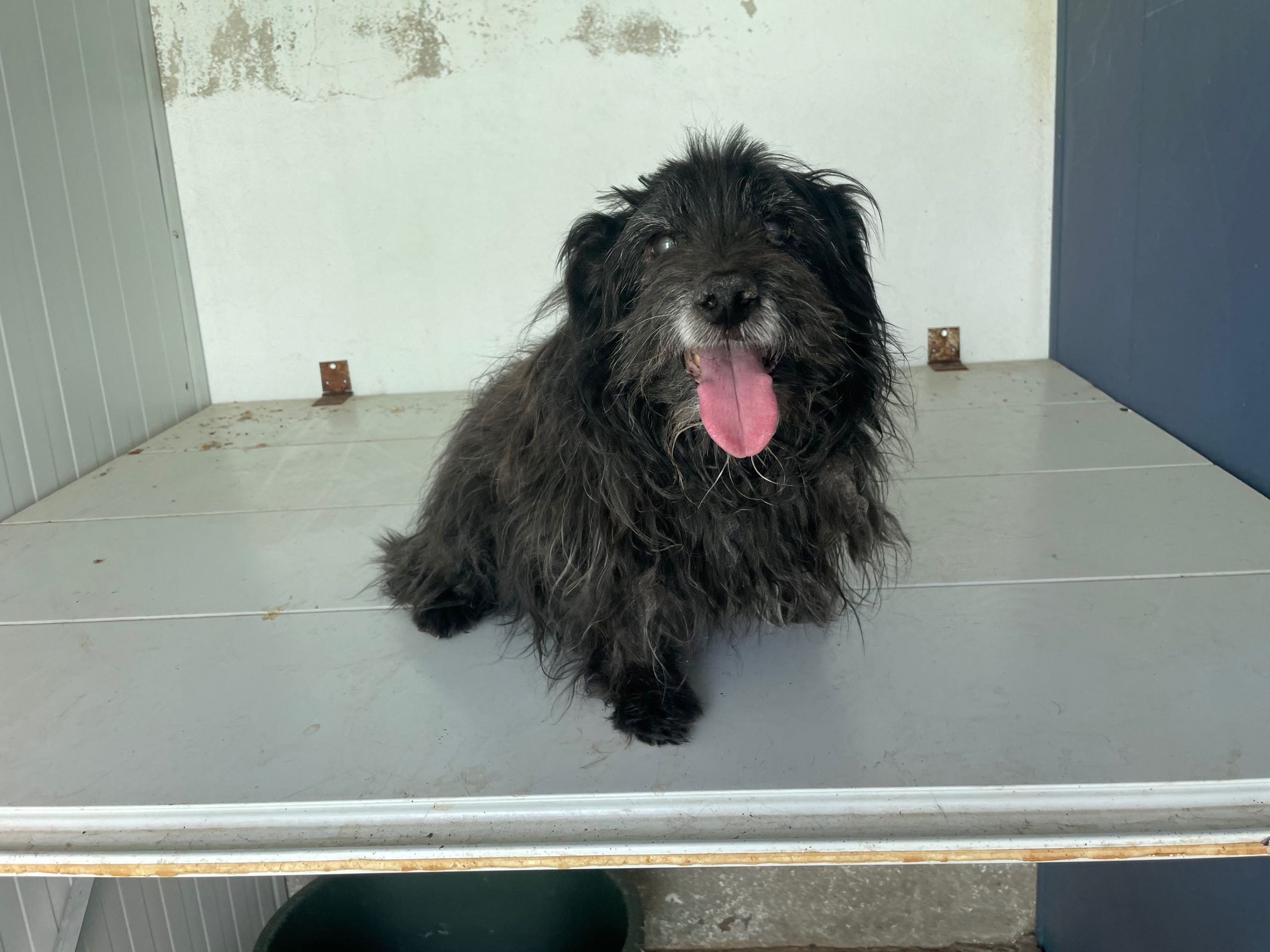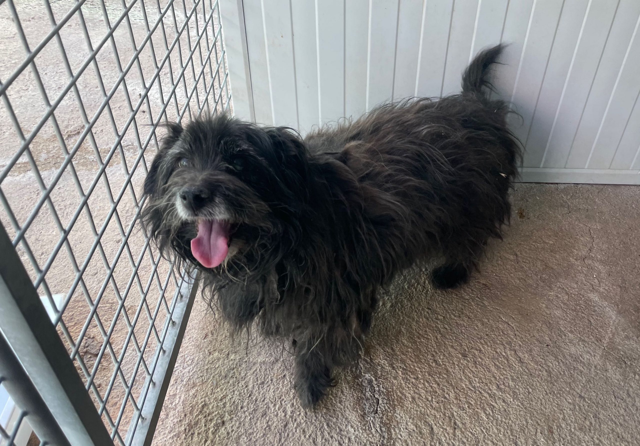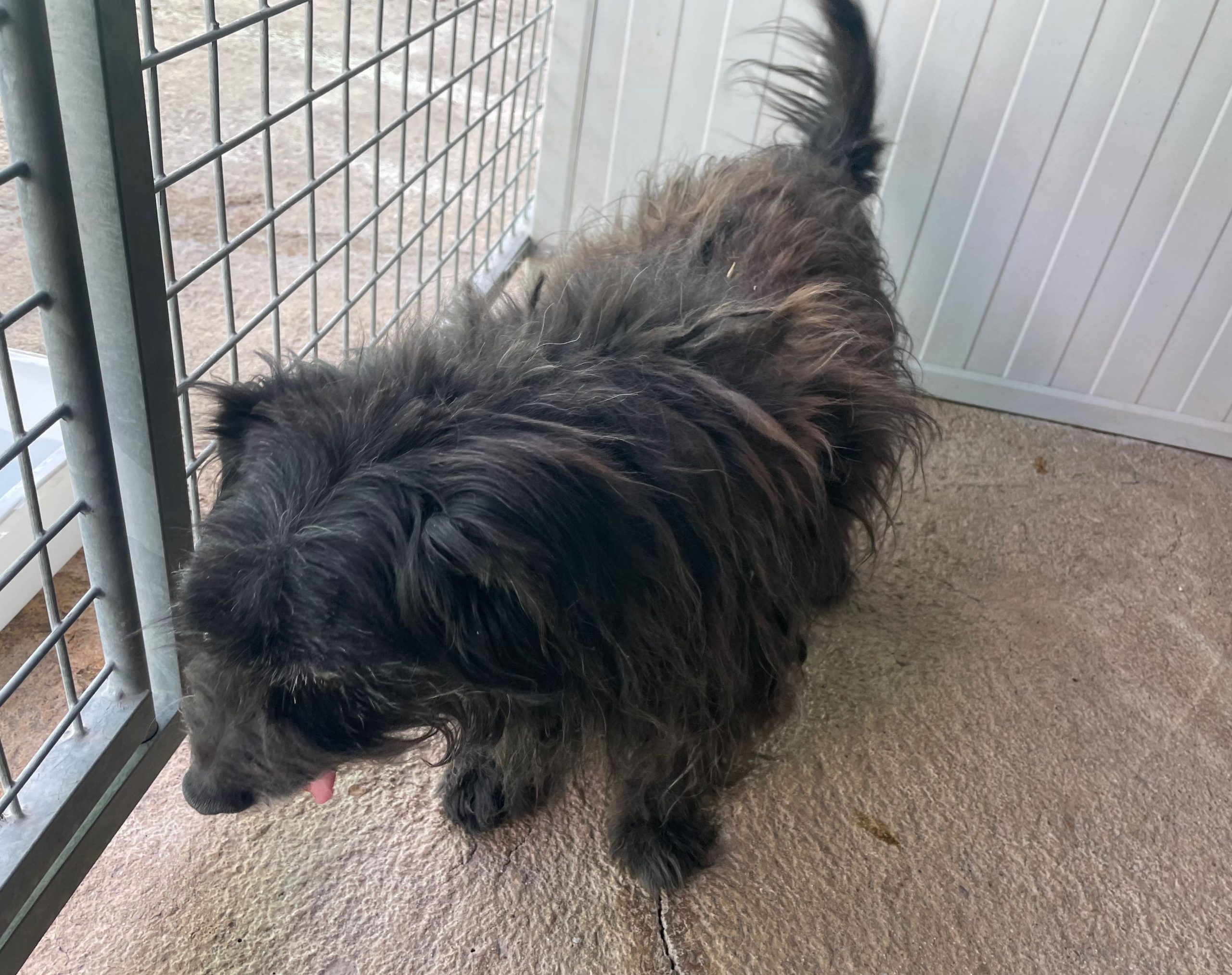 Ha llegado además muy mal cuidado, el pelo lleno de nudos, con bichos, heridas bajo los nudos de pelo, que ya se lo hemos cortado, una pena.