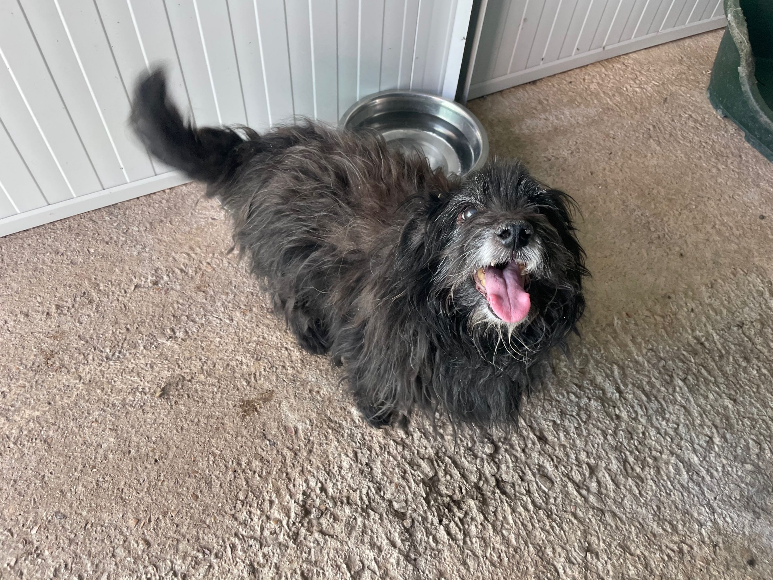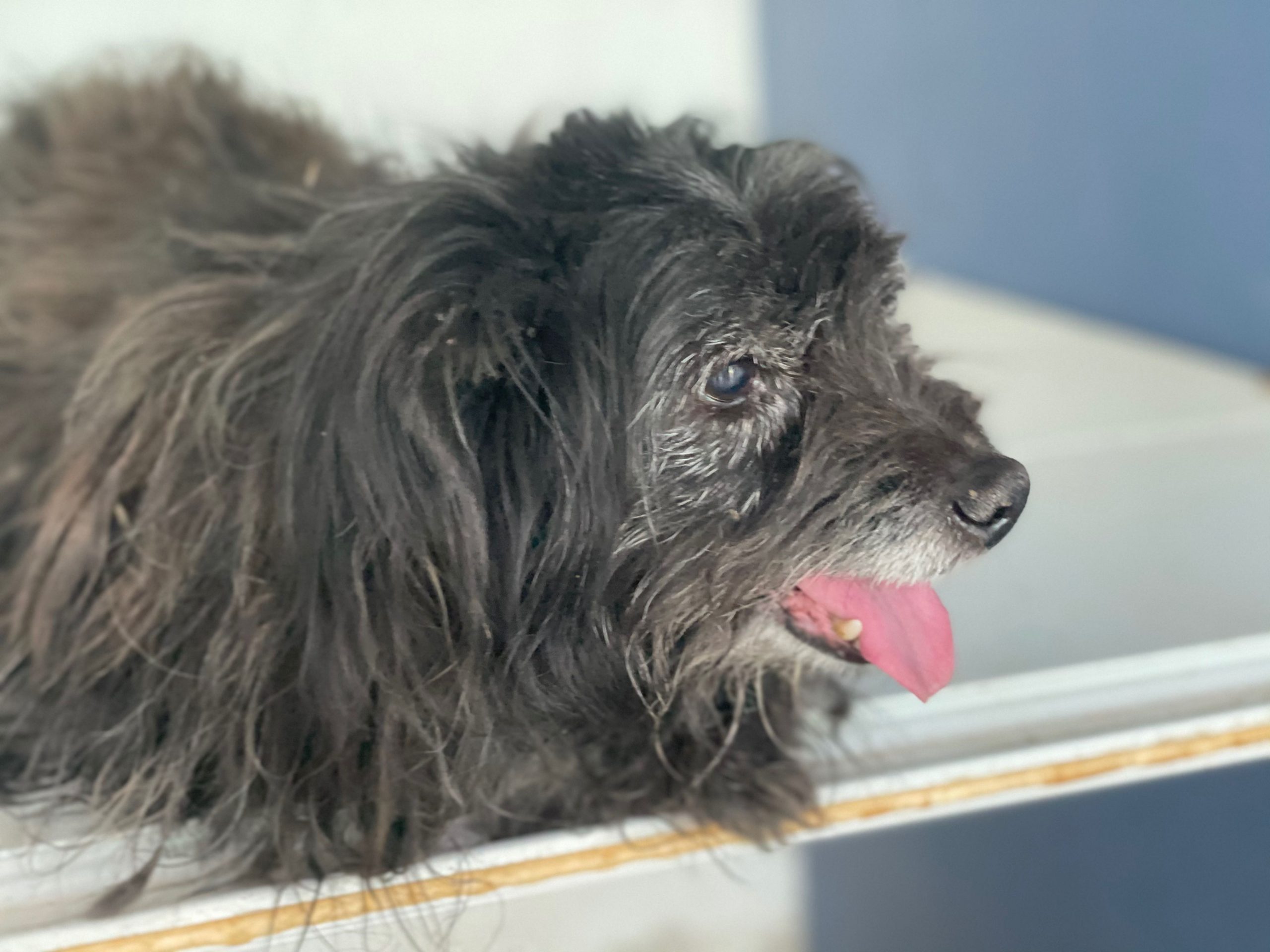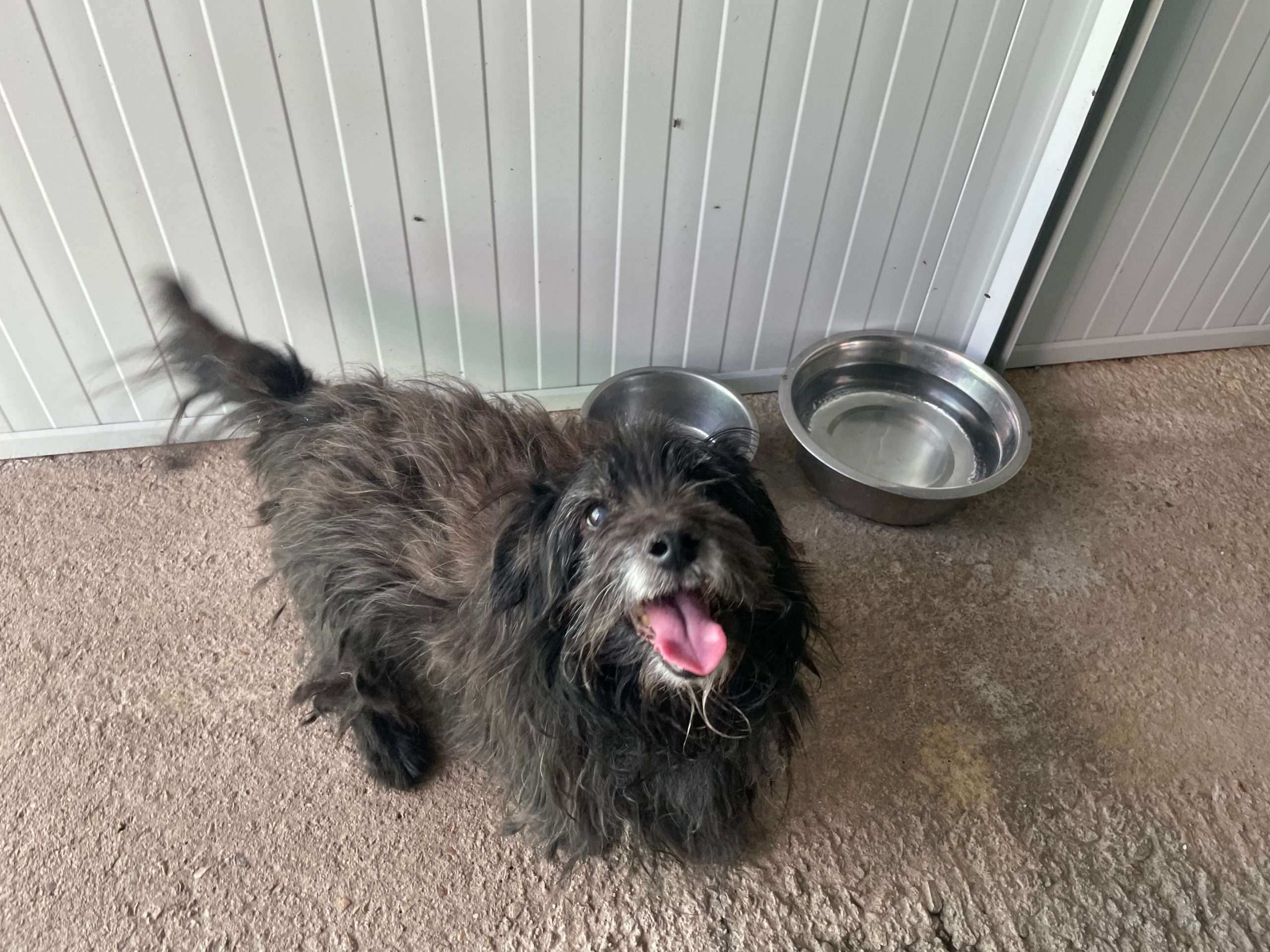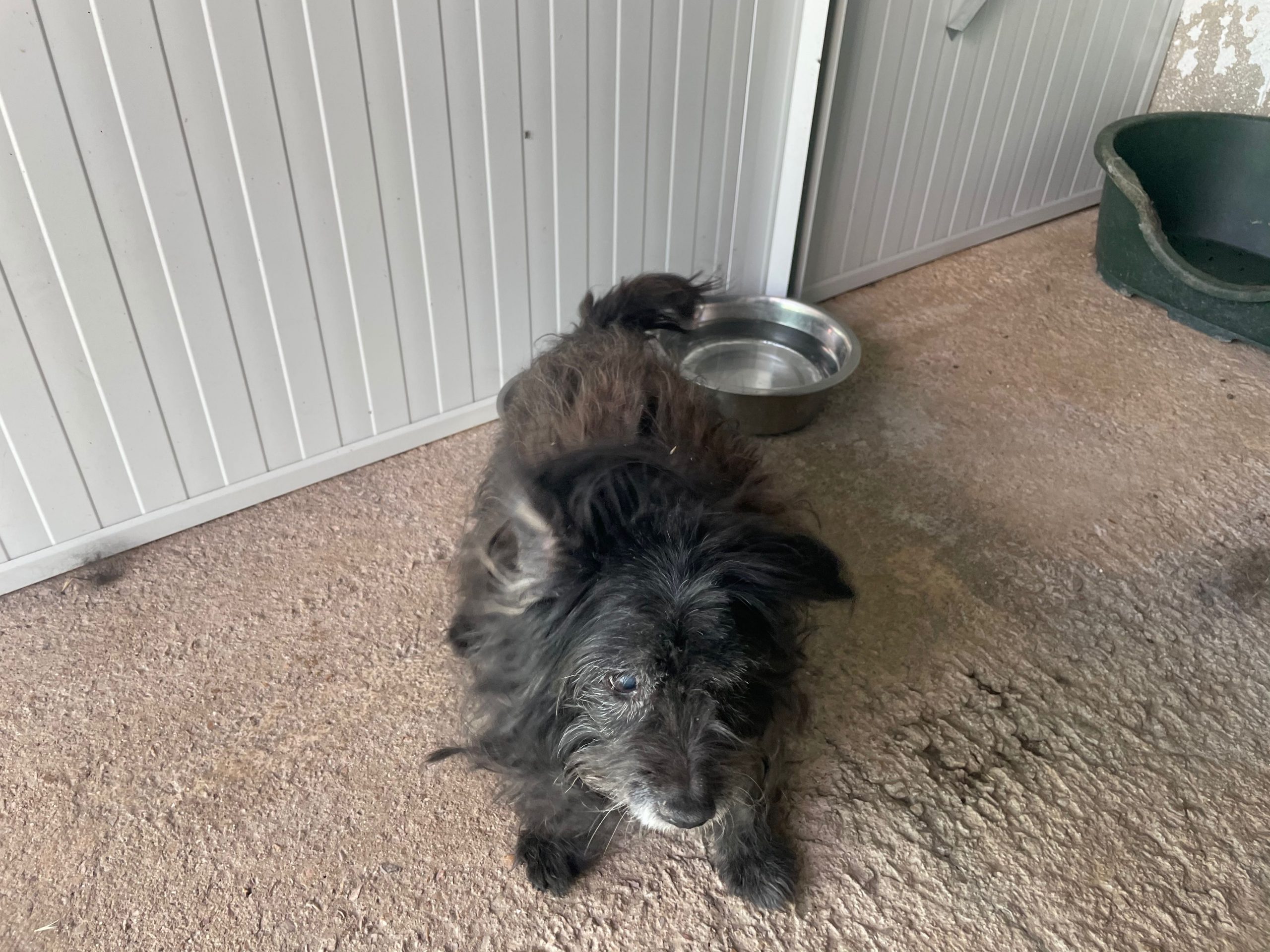 Ha llegado además muy mal cuidado, el pelo lleno de nudos, con bichos, heridas bajo los nudos de pelo, que ya se lo hemos cortado, una pena.