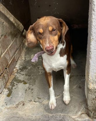 Es muy bueno y cariñoso y ojala encuentre una familia.