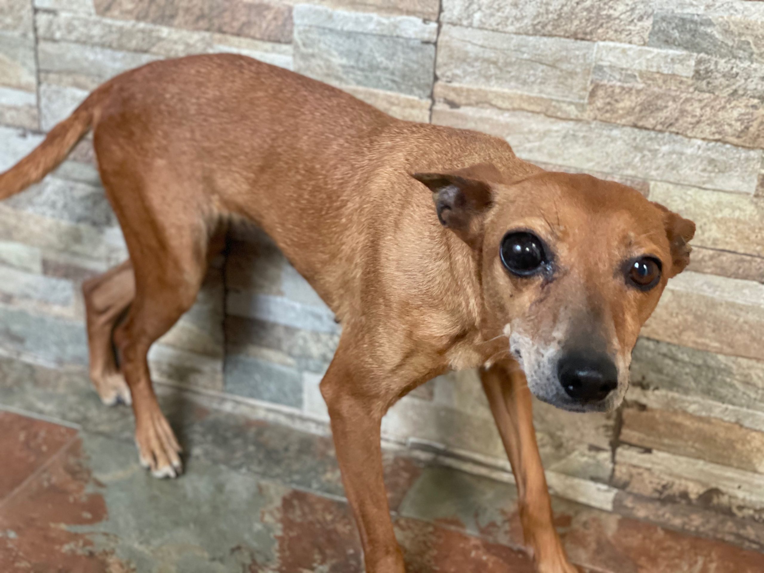 Tambien tenemos que llevarla a que le vean el ojo, probablemente lo tiene perdido.