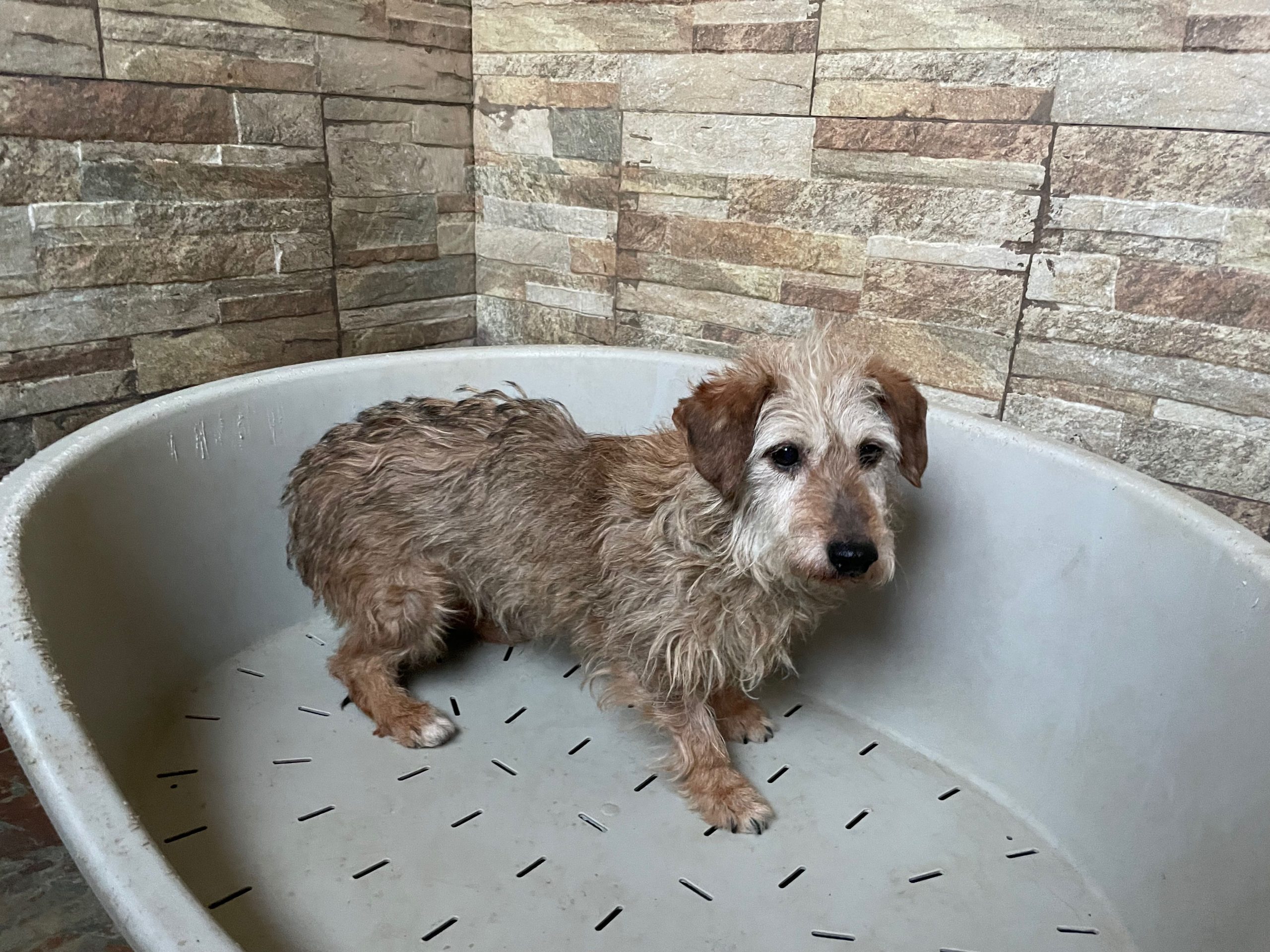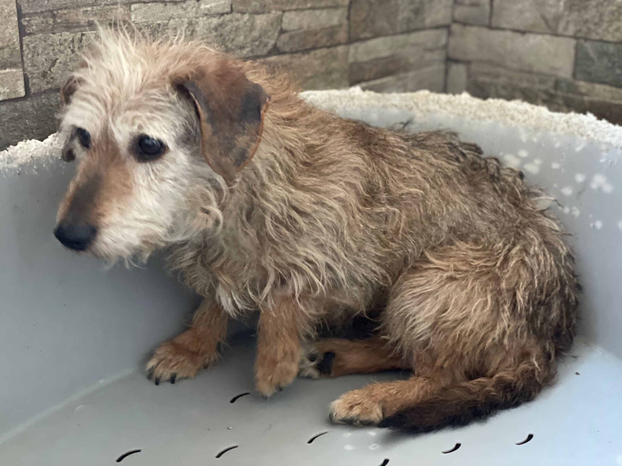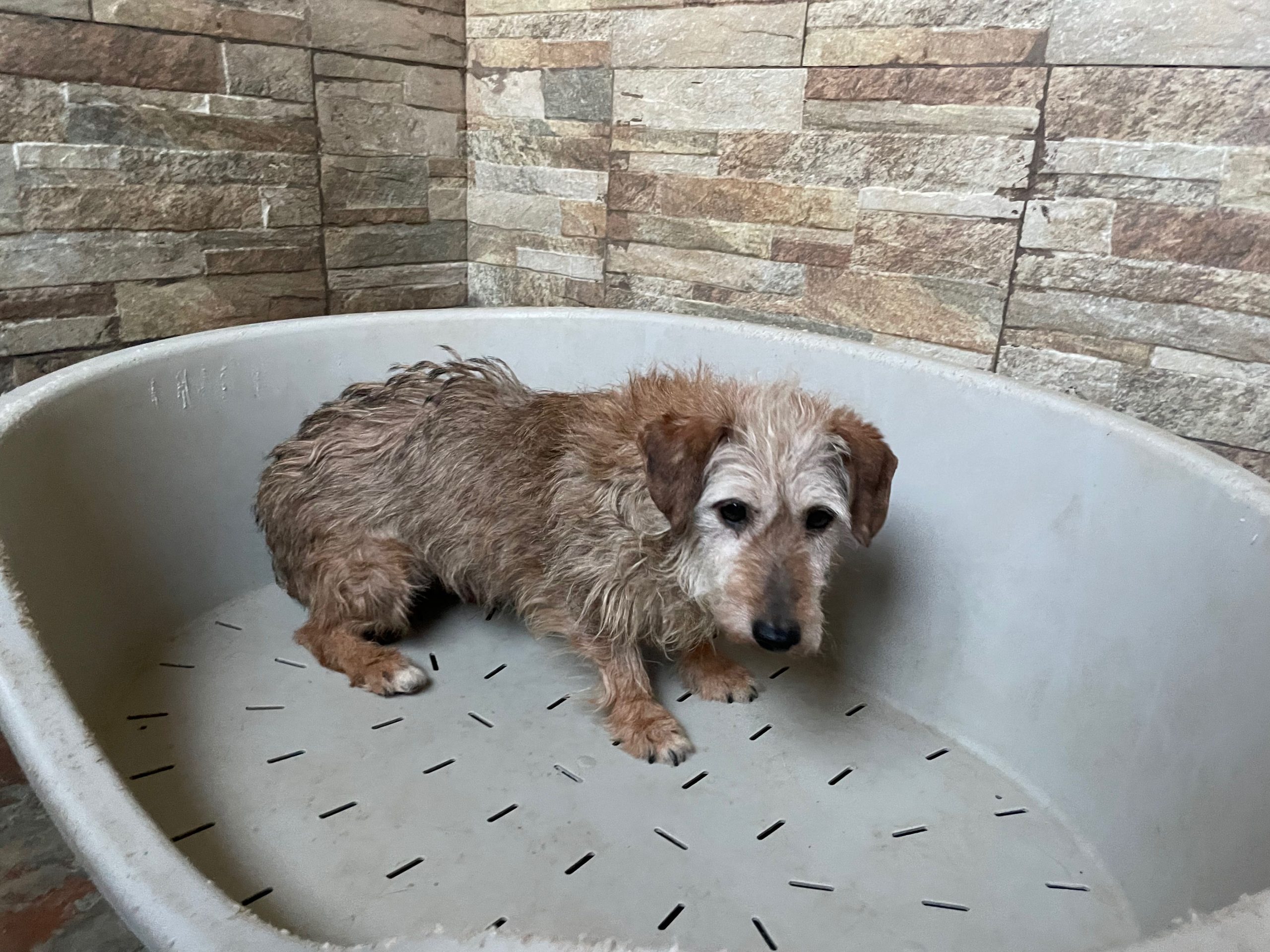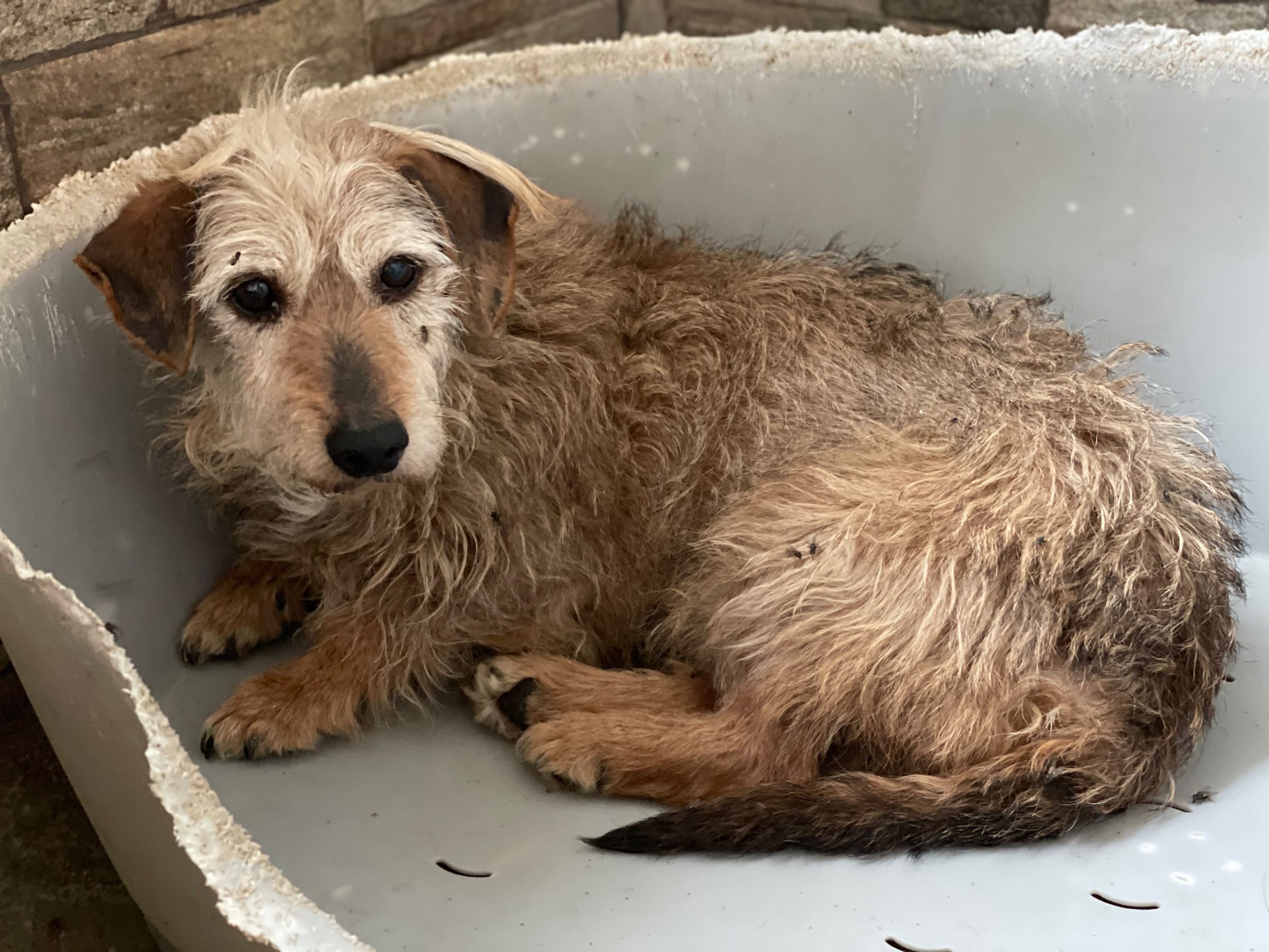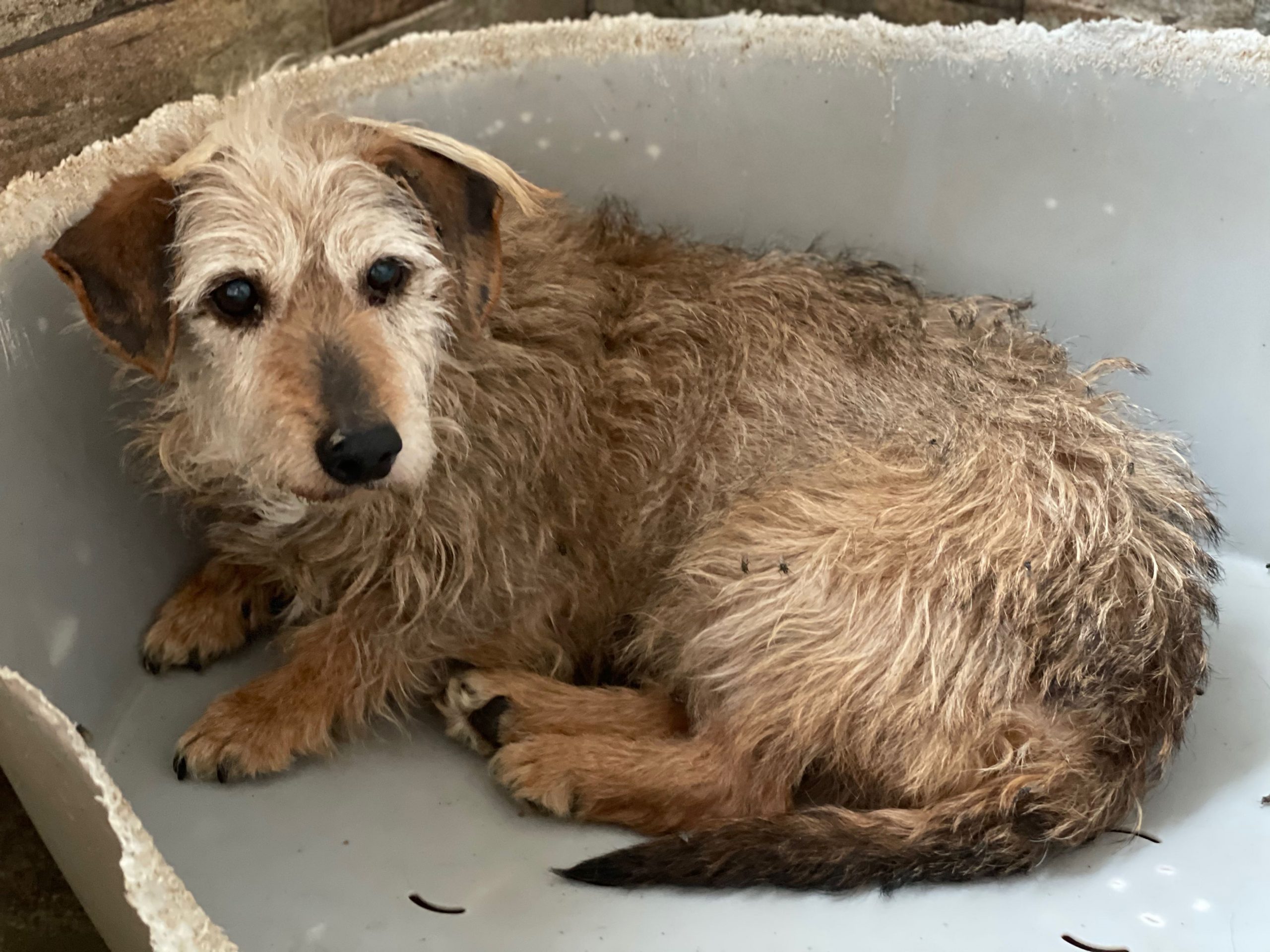 Luna es una teckel mayorcita que después de usarla toda la vida la han abandonado.