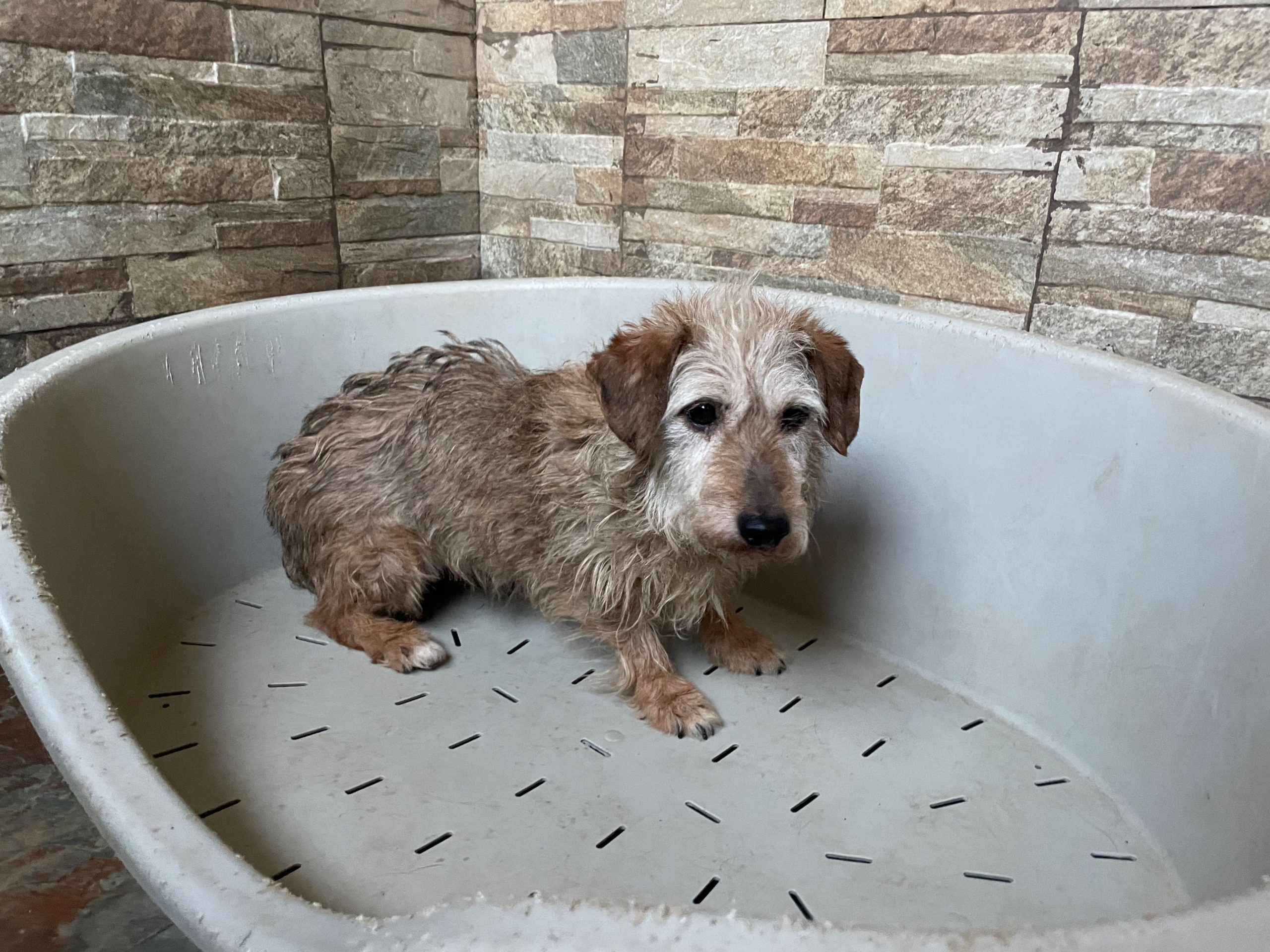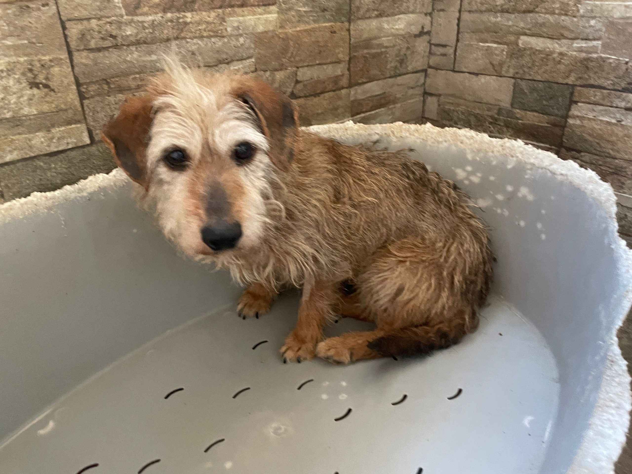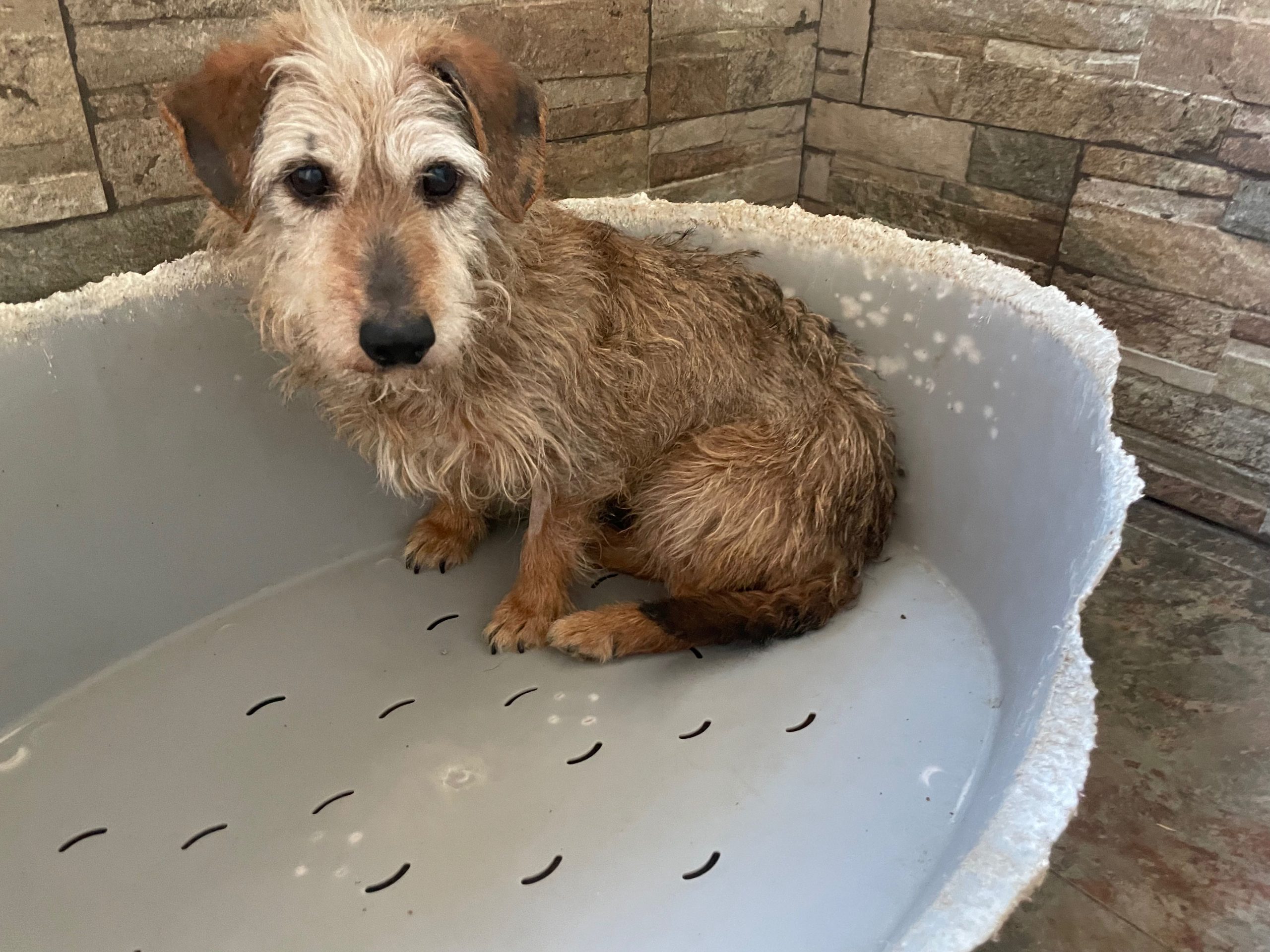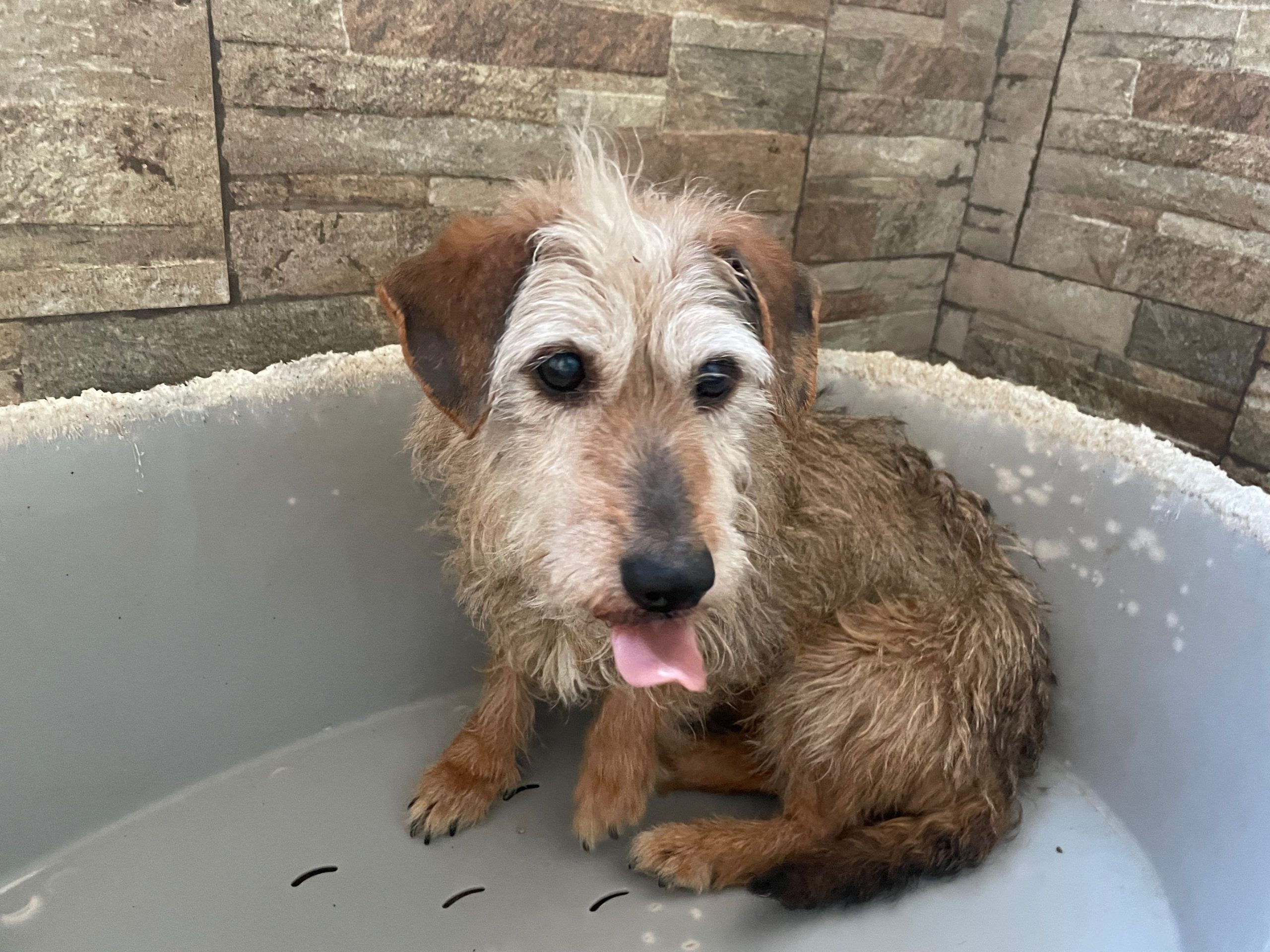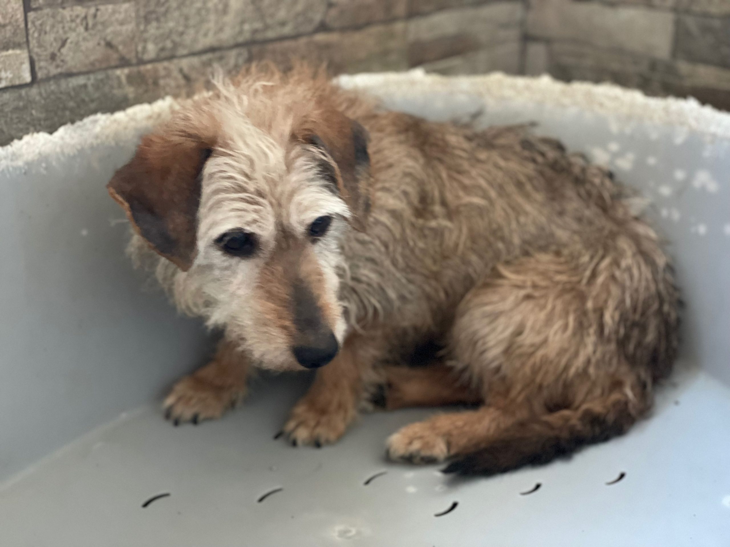 Luna es una teckel mayorcita que después de usarla toda la vida la han abandonado.