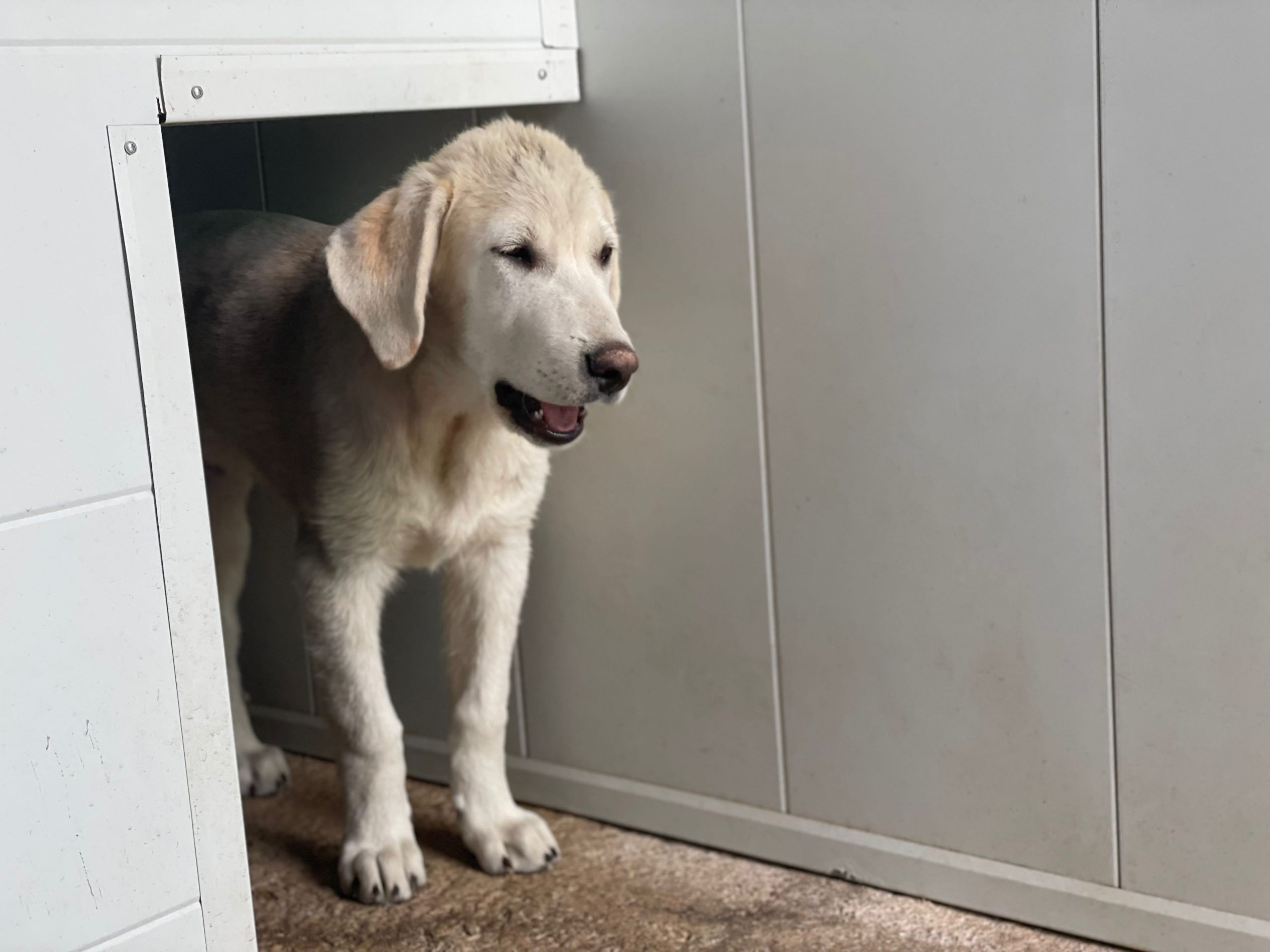 Es un poco asustadizo, necesita ganar confianza en los humanos.