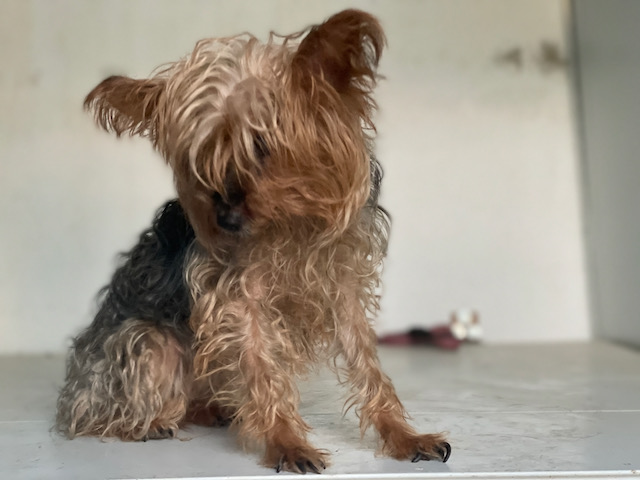 Kitty está muy asustada en el albergue, llevaba 11 años en una familia y ahora está en el albergue.