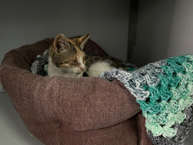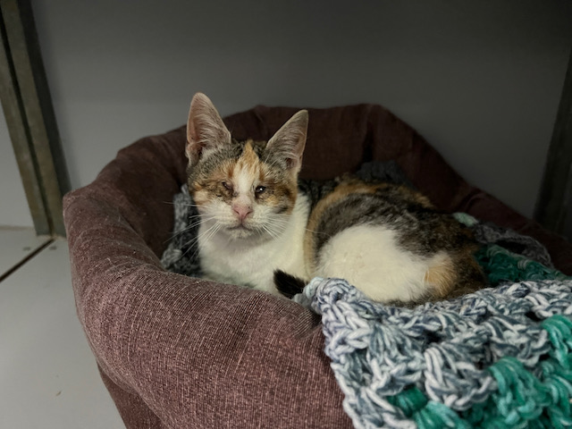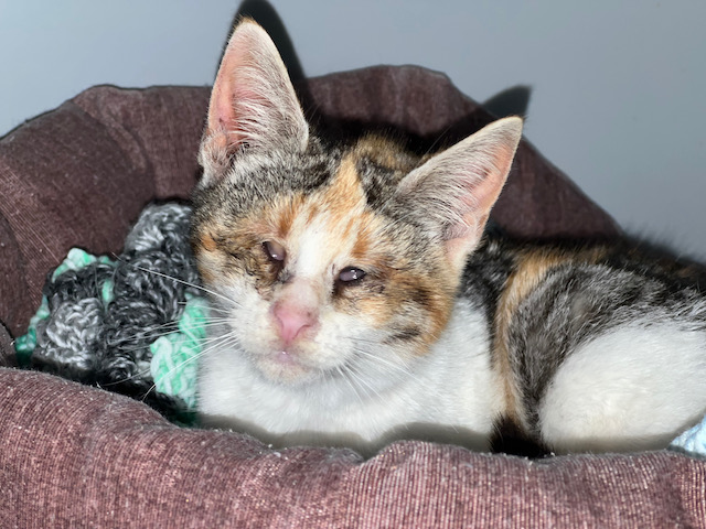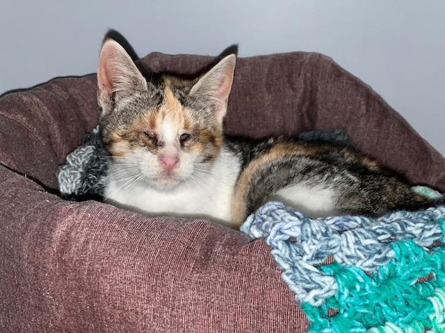 Necesita una casa urgentemente, es una gatita ciega y no podemos sacarla del jaulón y que esté entre muchos gatos.
