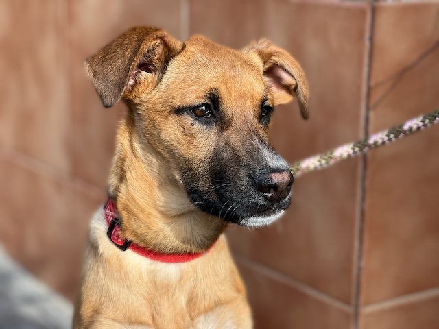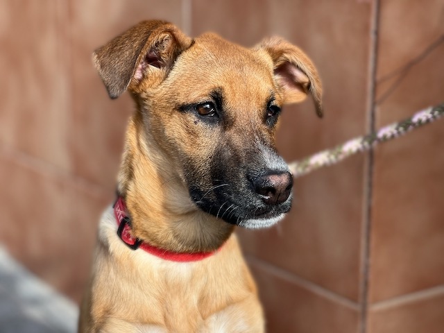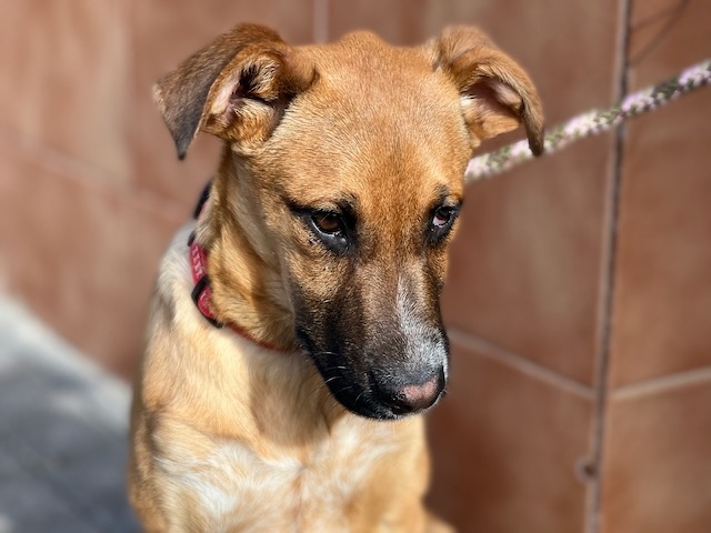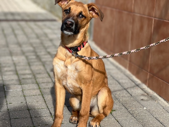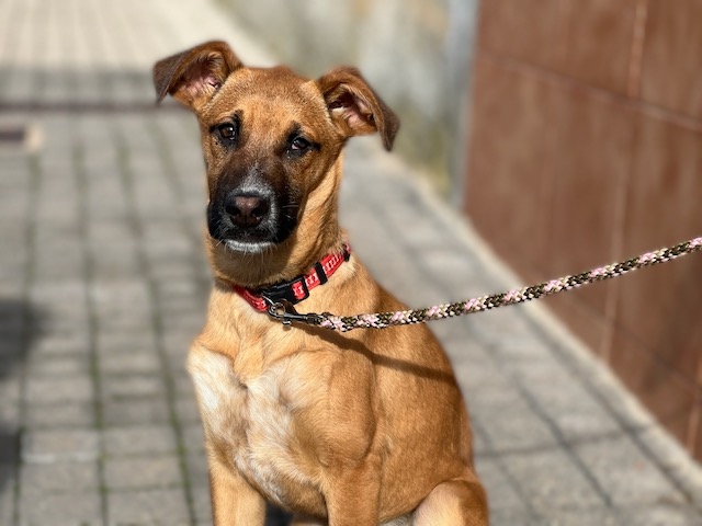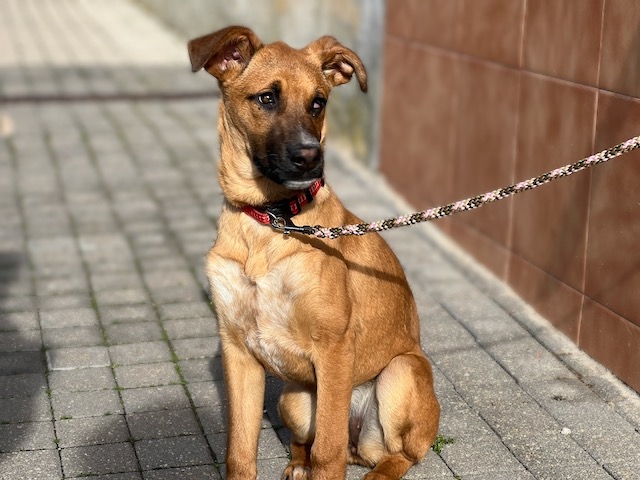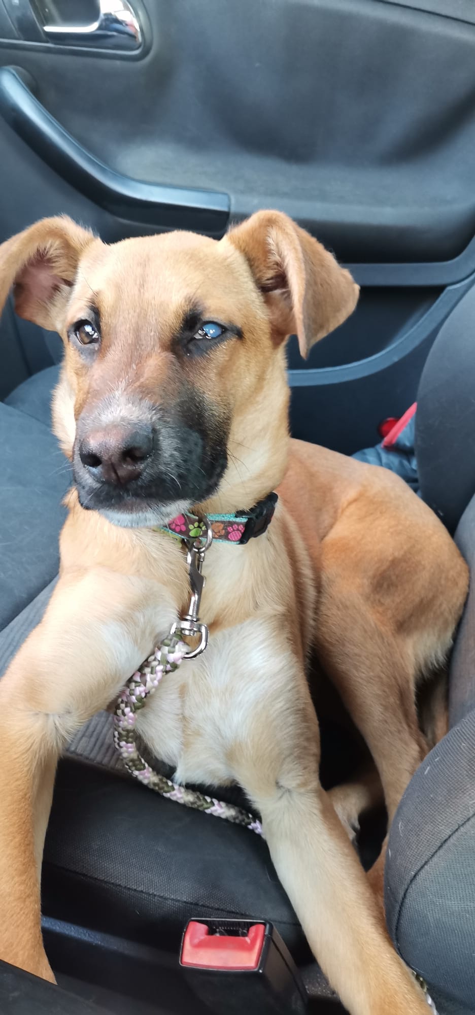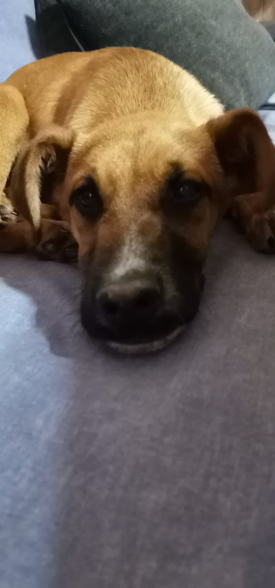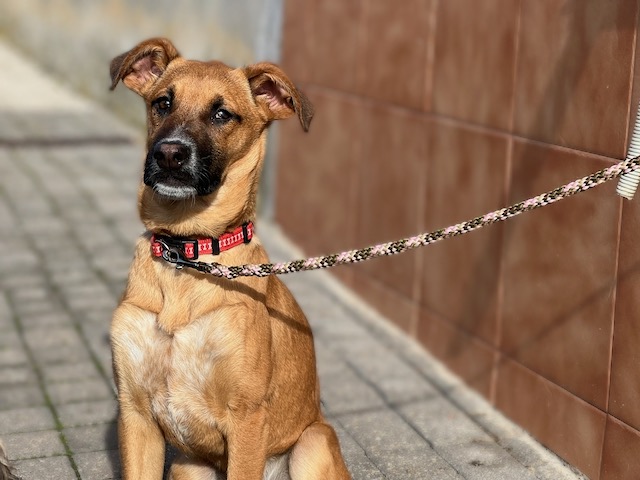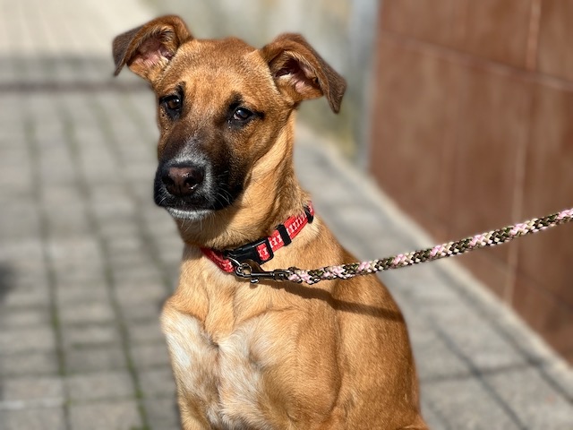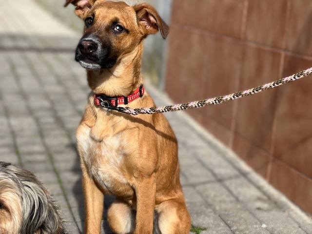 A pesar de su horroroso pasado Maebis es un amor y super cariñosa con personas y juguetona con otros perros. También es OK con gatos.