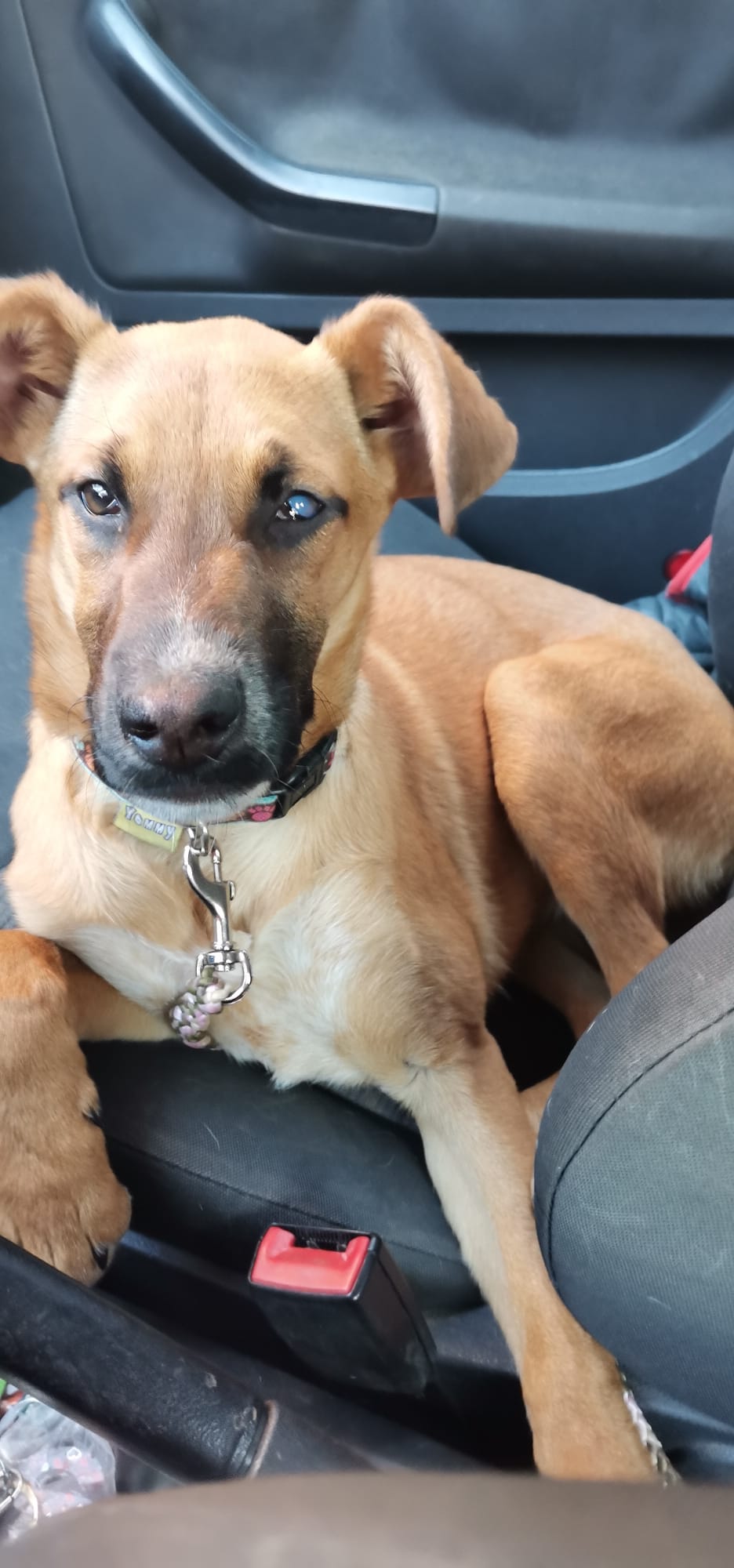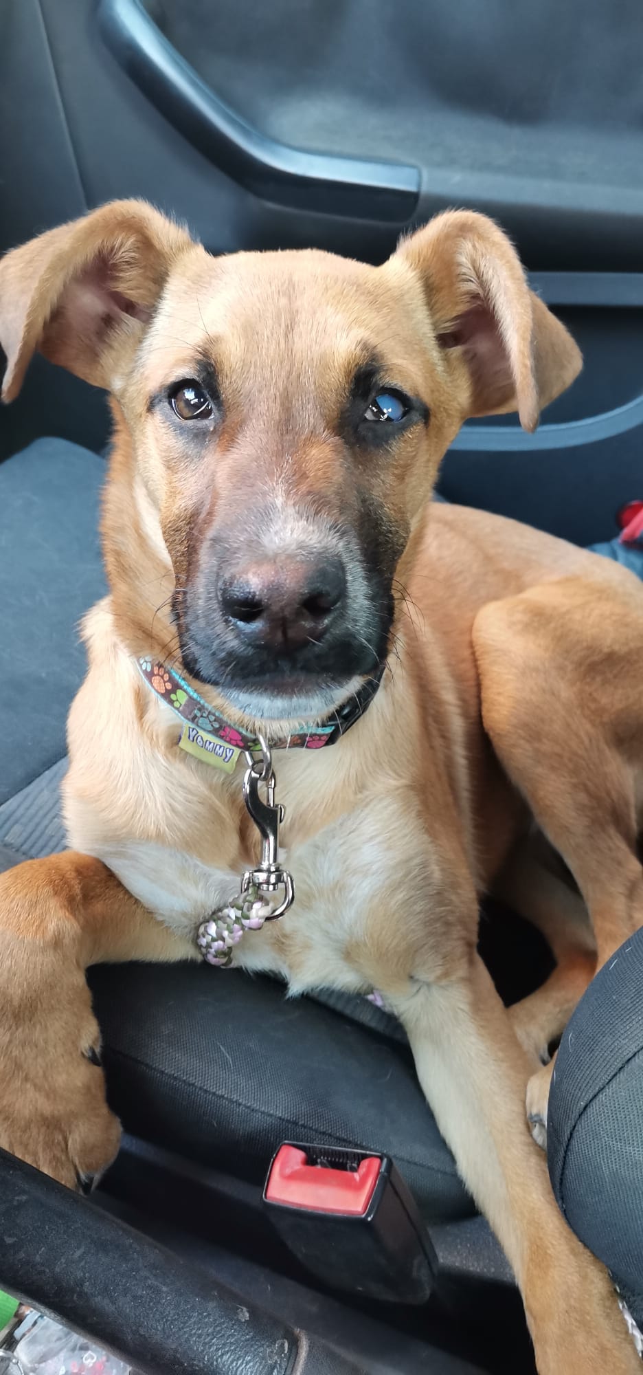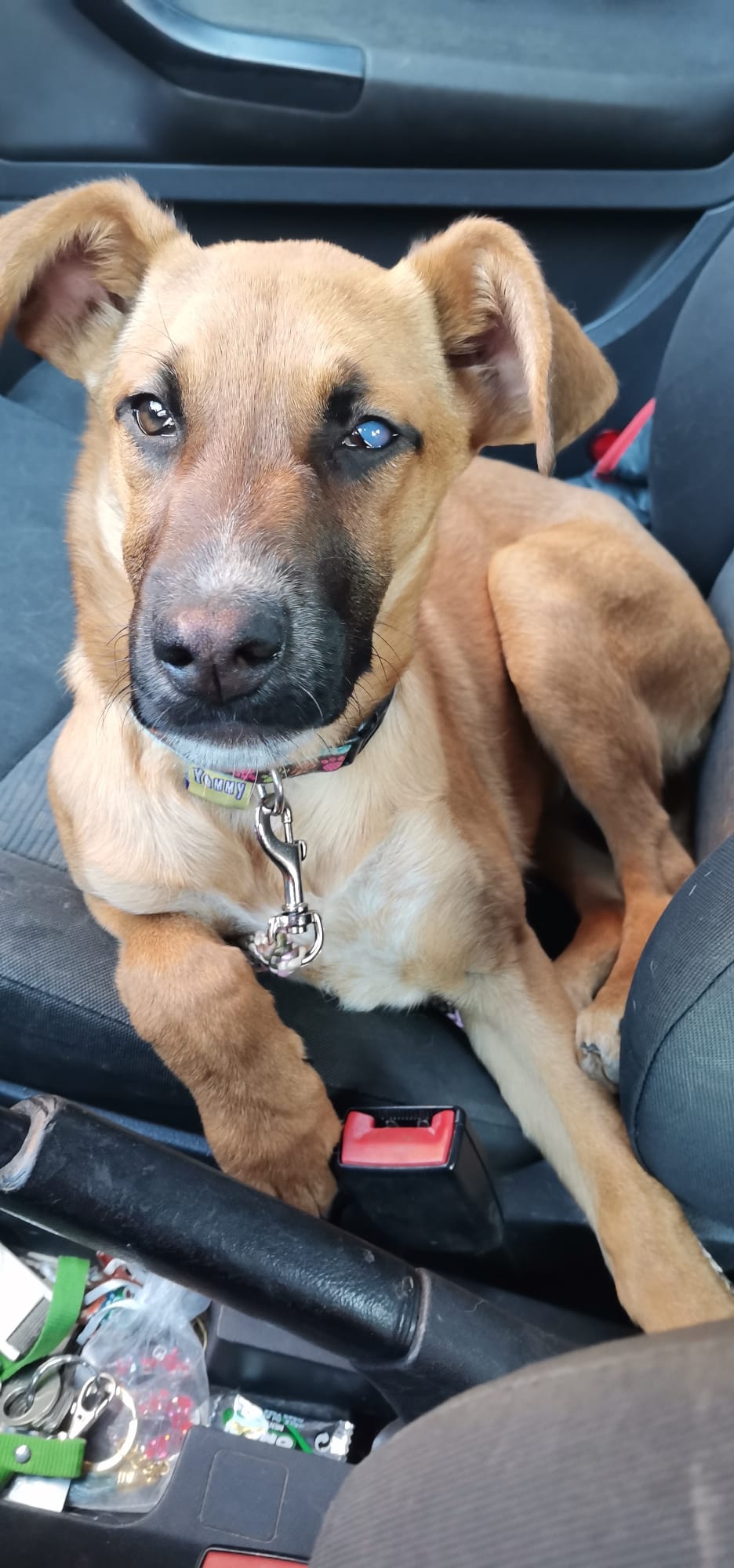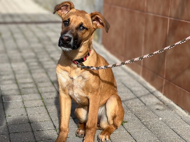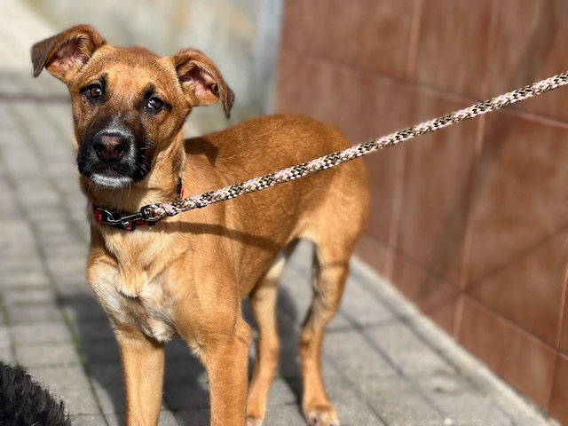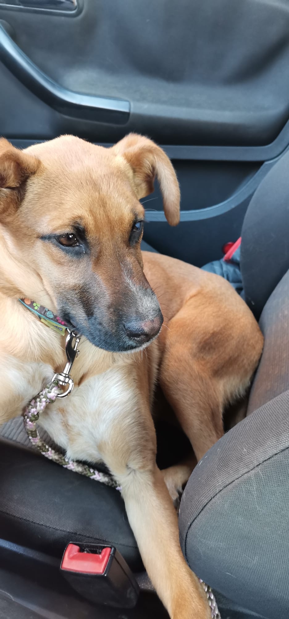 A pesar de su horroroso pasado Maebis es un amor y super cariñosa con personas y juguetona con otros perros. También es OK con gatos.