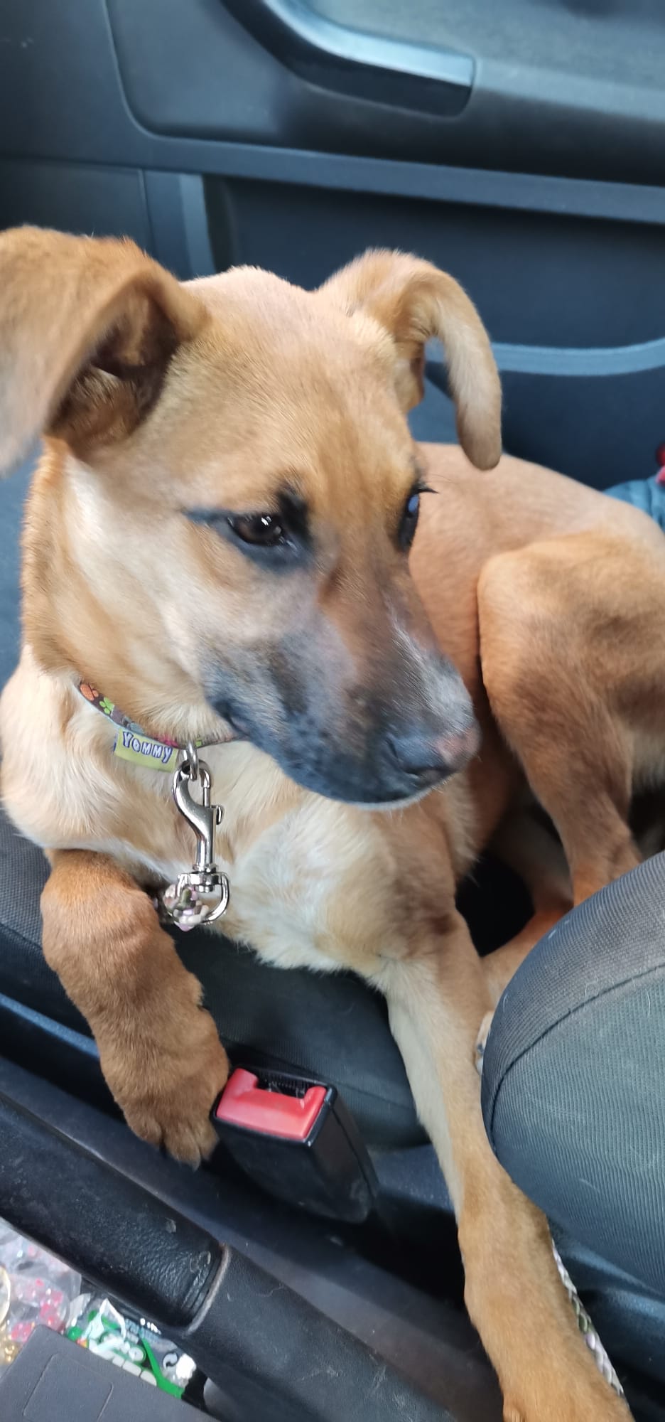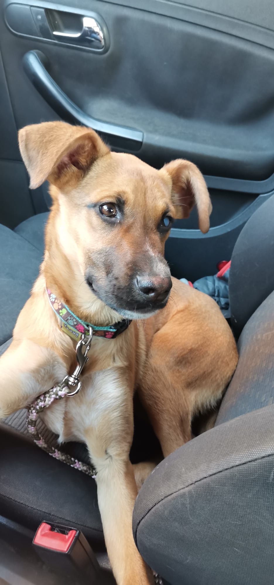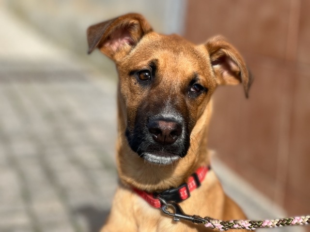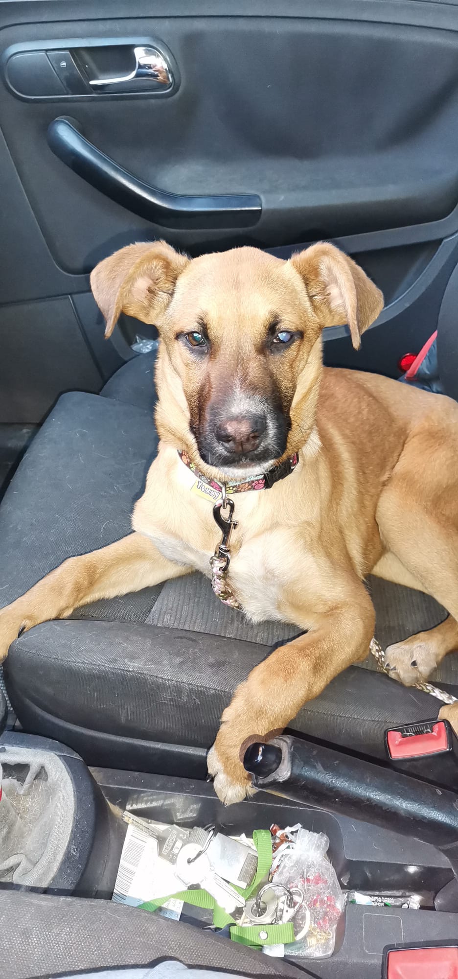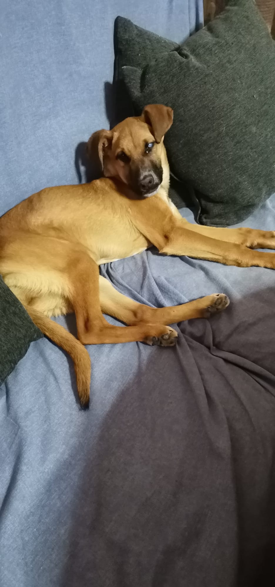 A pesar de su horroroso pasado Maebis es un amor y super cariñosa con personas y juguetona con otros perros. También es OK con gatos.