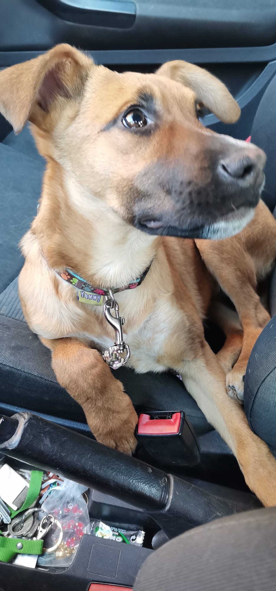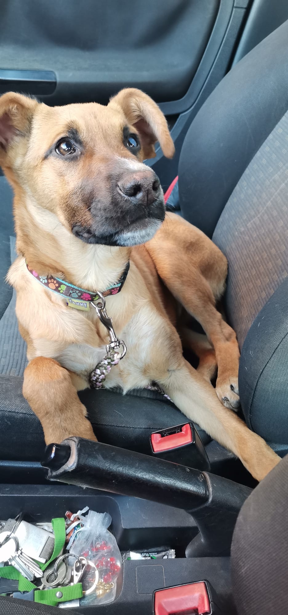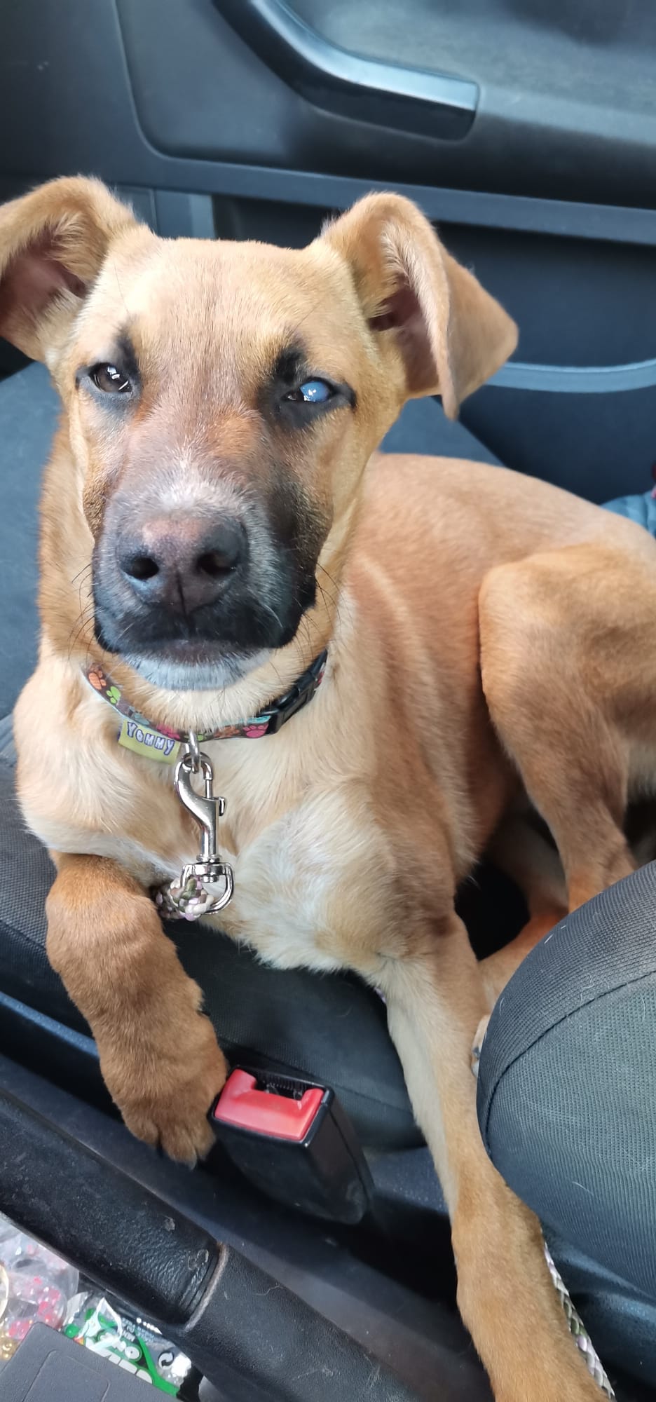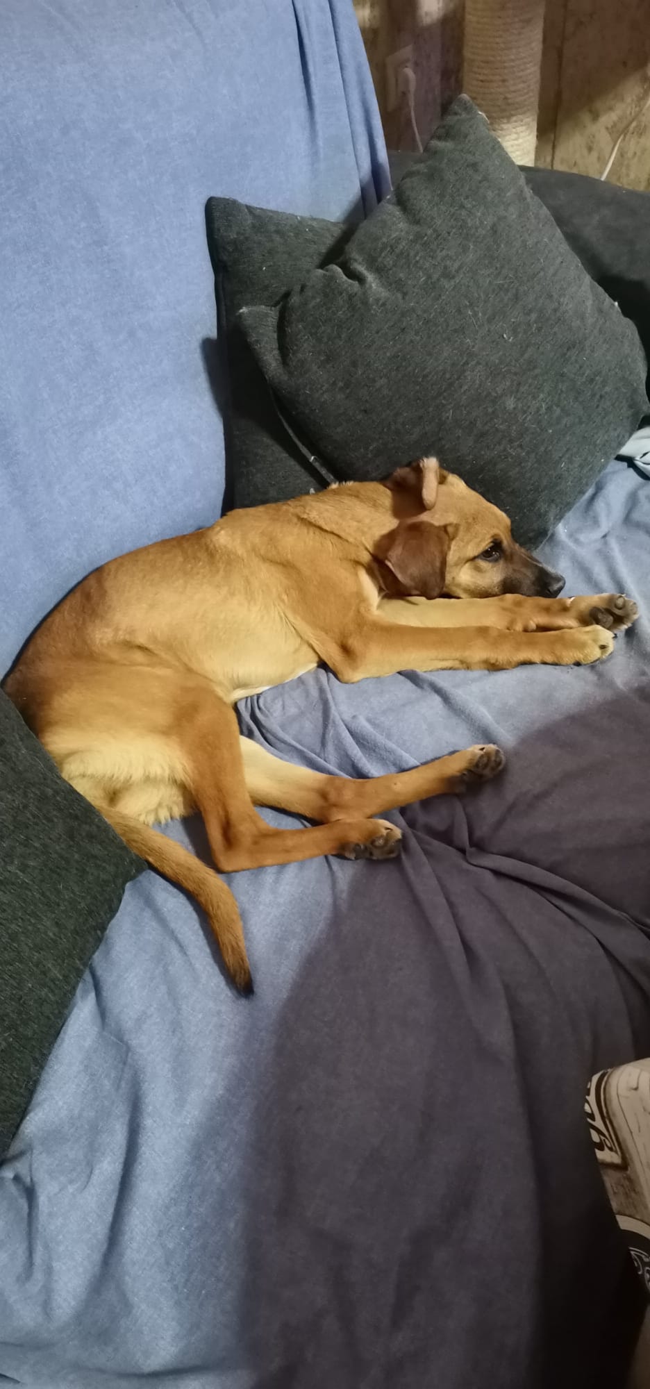 A pesar de su horroroso pasado Maebis es un amor y super cariñosa con personas y juguetona con otros perros. También es OK con gatos.