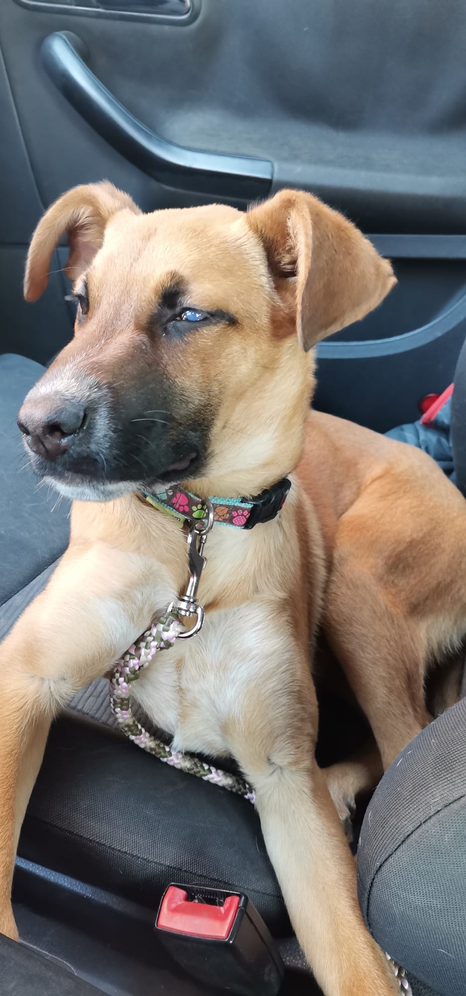 Cuando llegó (el 3 de febrero) tenía un ojo en mal estado, pero con cuidados veterinarios y visita a la especialista hemos conseguido salvarle el ojo y está perfecta.