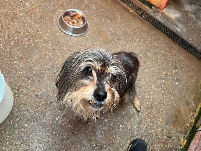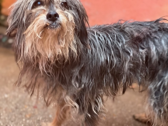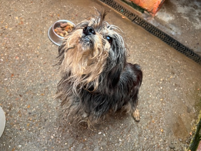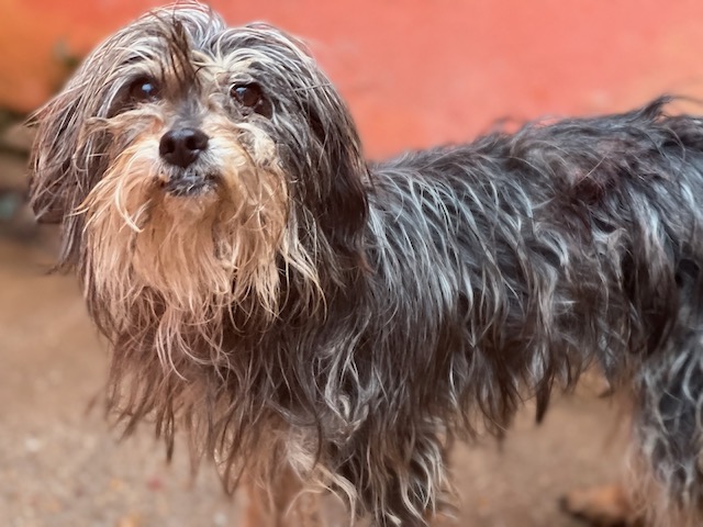 Ha llegado llena de pinchos y nudos, no sabemos que vida habrá llevado pero desde luego no la han cuidado.