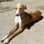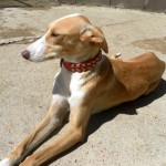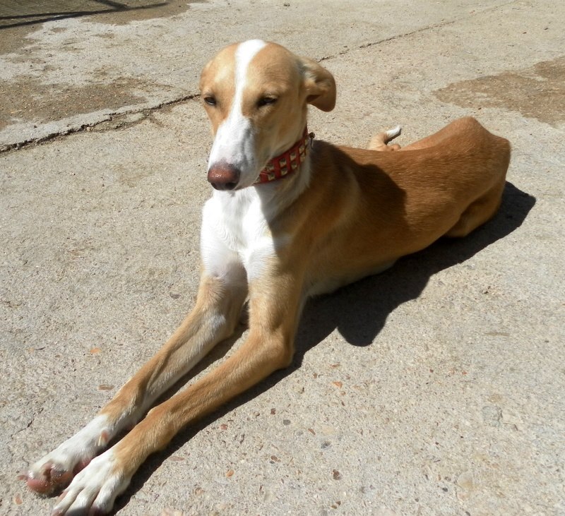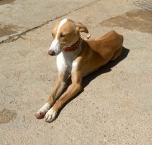 Liss es una joven podenca sociable con otros perros y personas, tranquila y muy cariñosa.