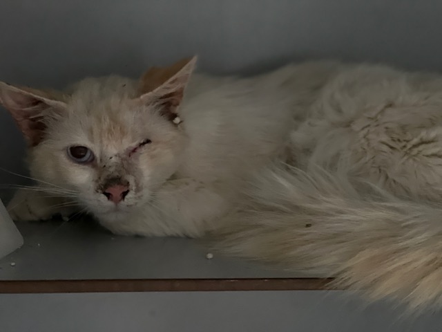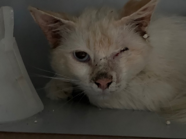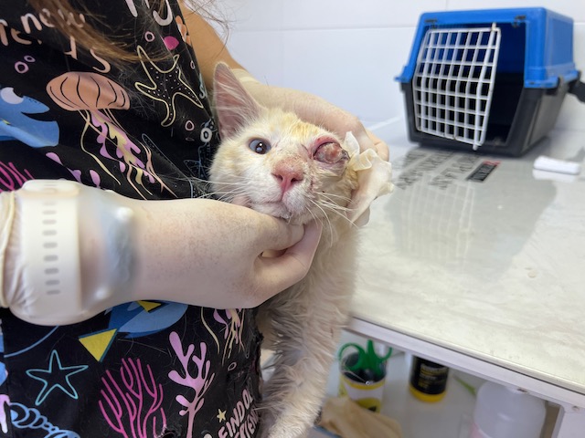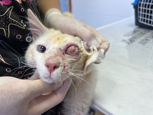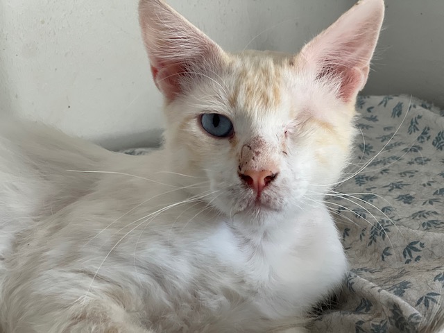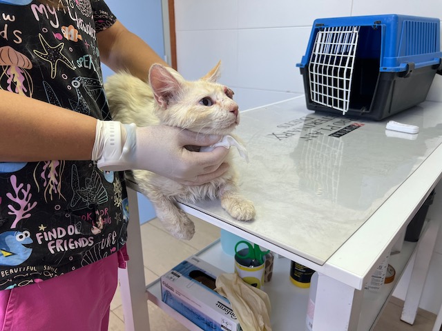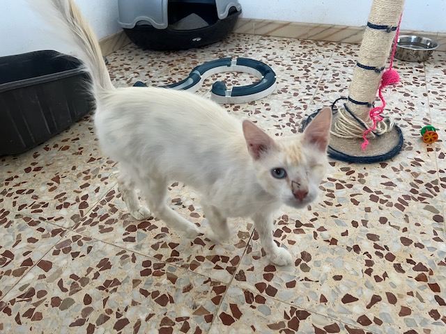 George llegó con el ojo fuera, lo hemos operado y ya está bien.