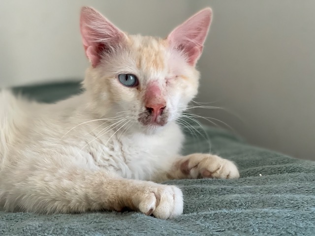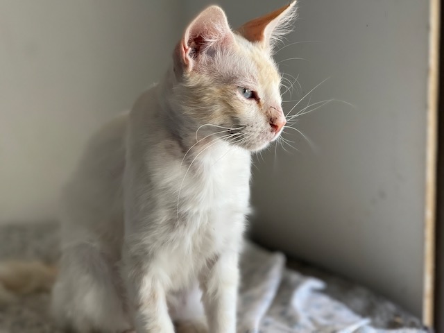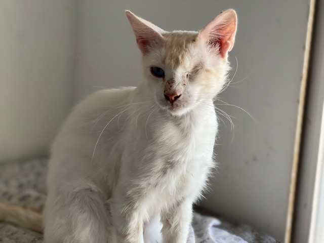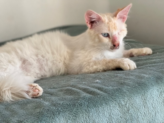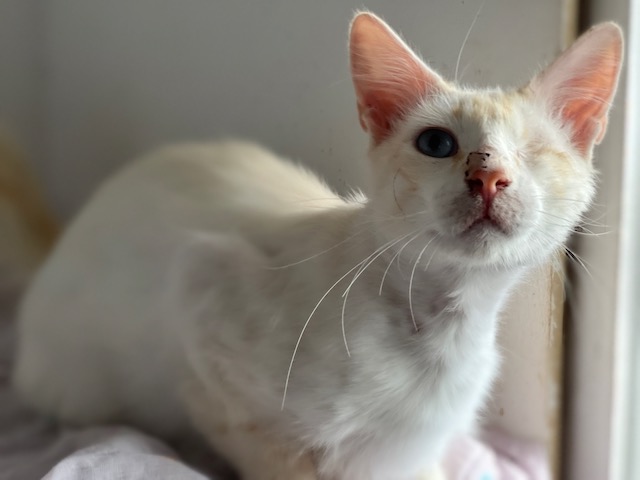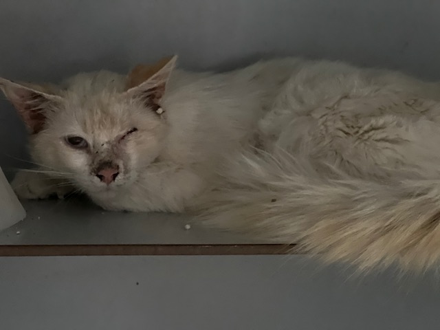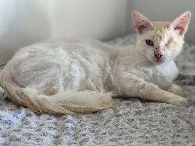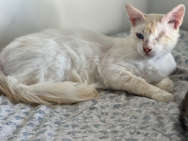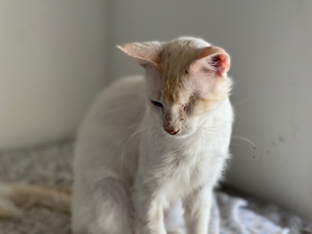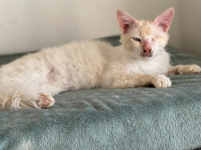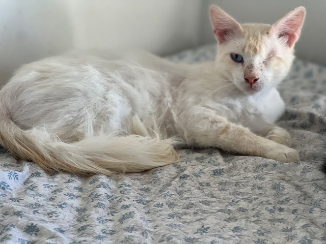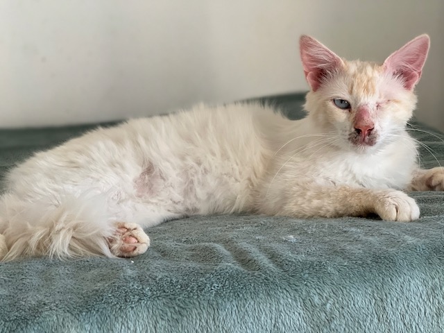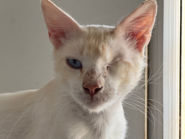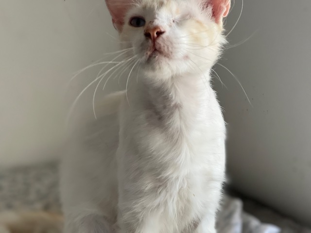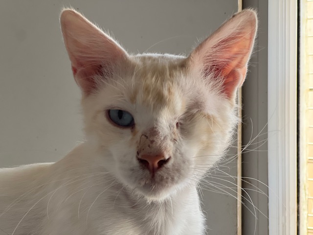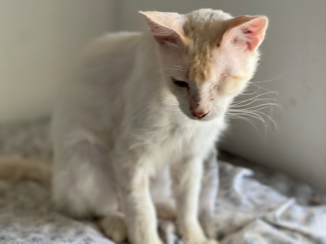 George es buenísimo y muy tranquilo, no sabemos si es por eso o porque los demás lo encuentran más debil, pero los demás gatos le pegan, ya no sabemos donde ponerlo, por favor una casa de acogida y/o adopción .
