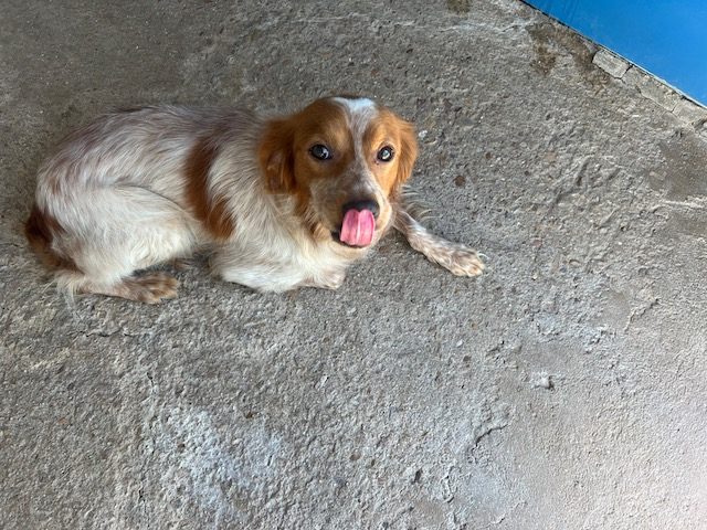 Estaba el solo por una plaza de Puertollano y la recogieron unos voluntarios, nadie lo ha reclamado así que estará abandonado.