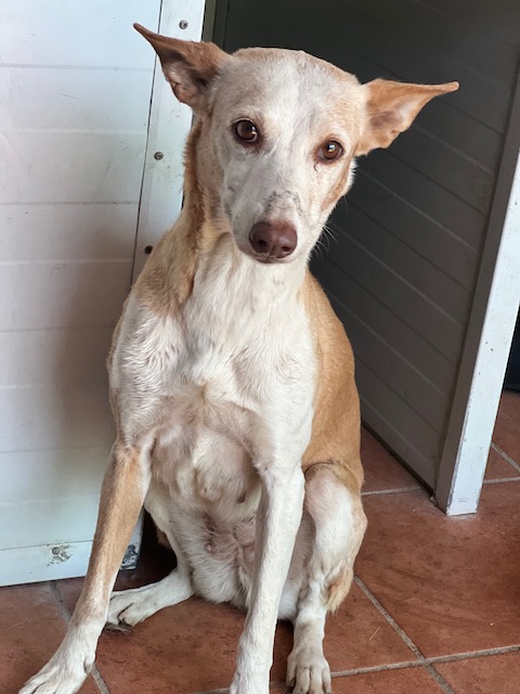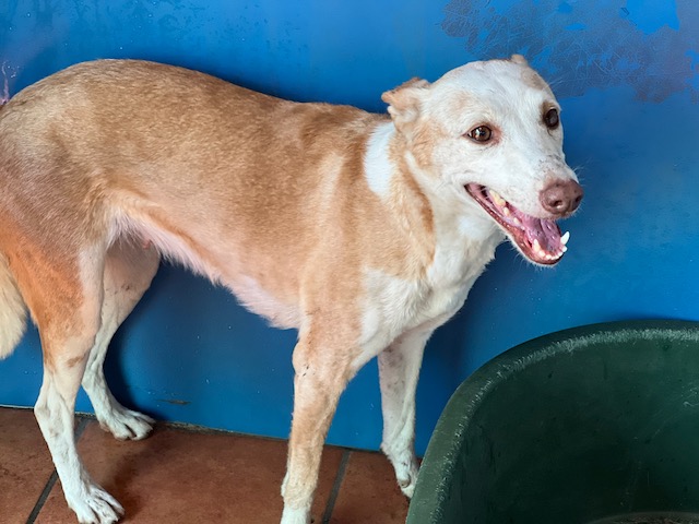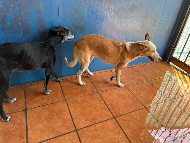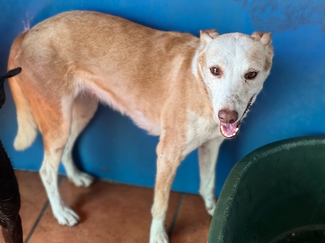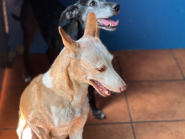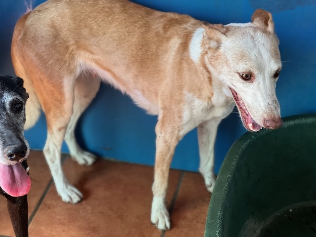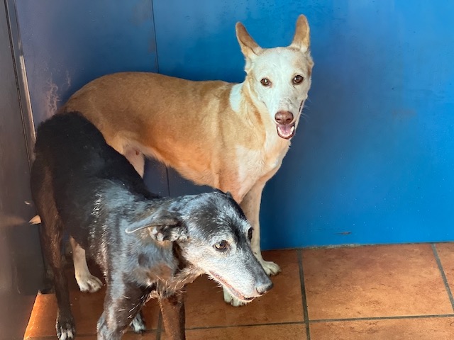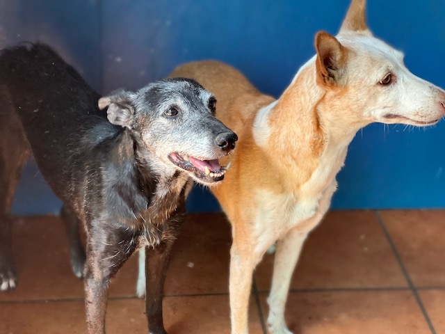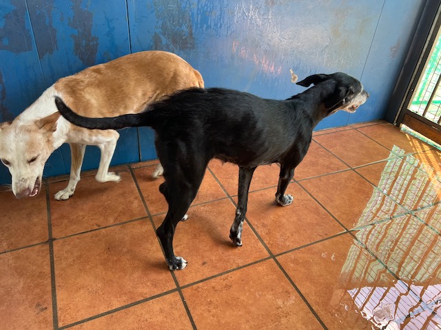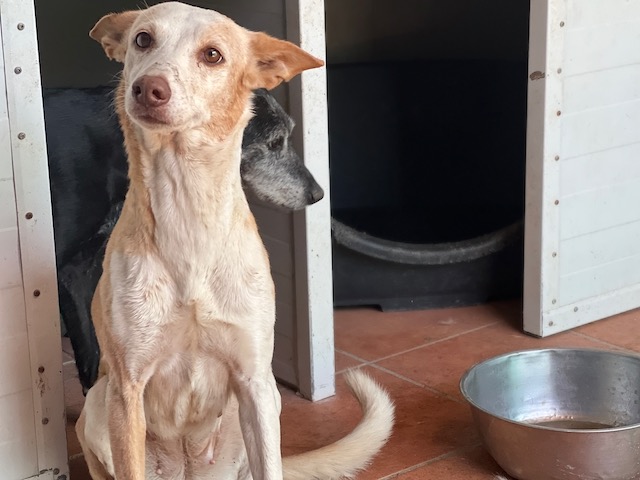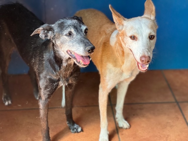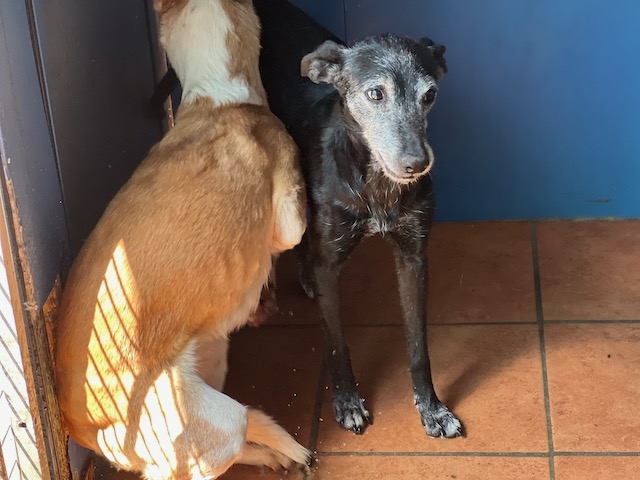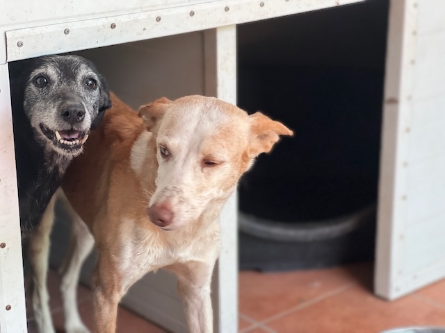 Las dos estaban abandonadas por El Poblado de Puertollano, dos voluntaias cogieron primero a Mirinda y a Oprah gracias a que teniamos a Mirinda ya.
