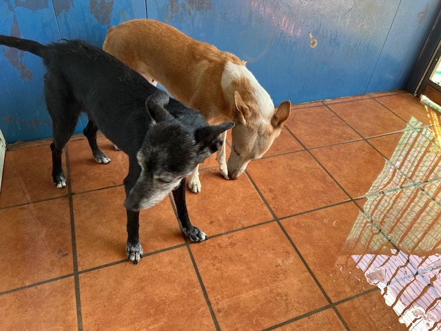 Las dos estaban abandonadas por El Poblado de Puertollano, dos voluntaias cogieron primero a Mirinda y a Oprah gracias a que teniamos a Mirinda ya.