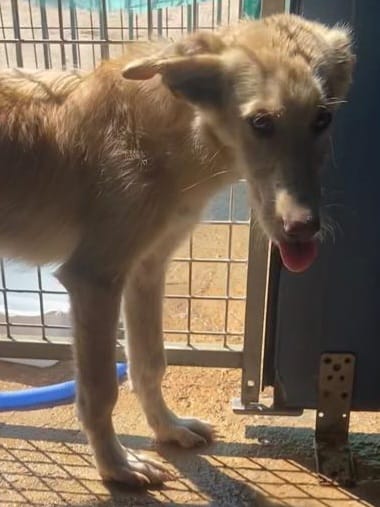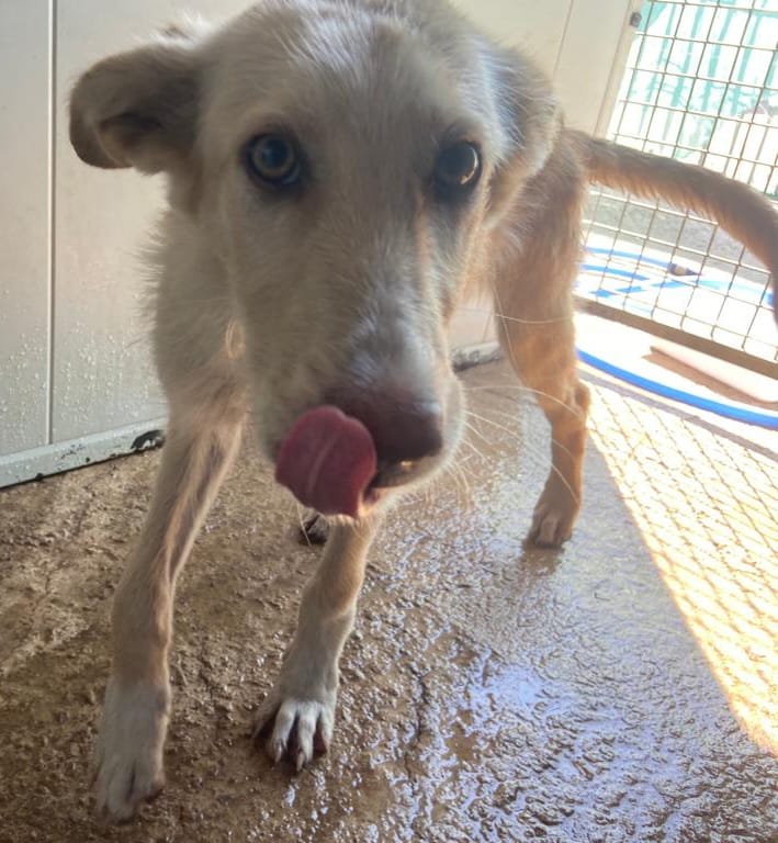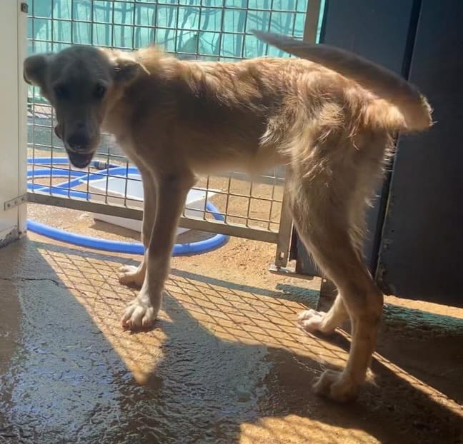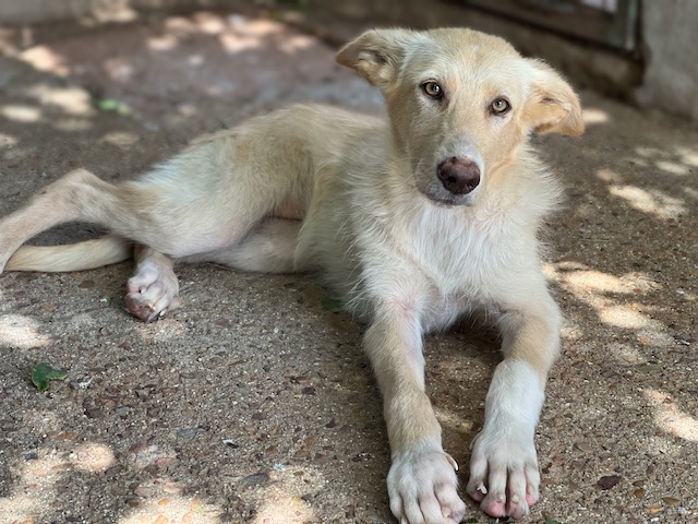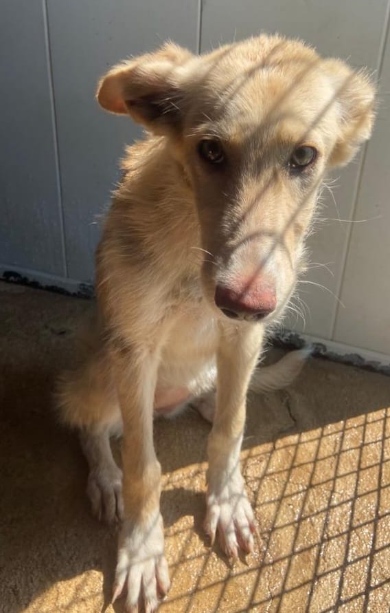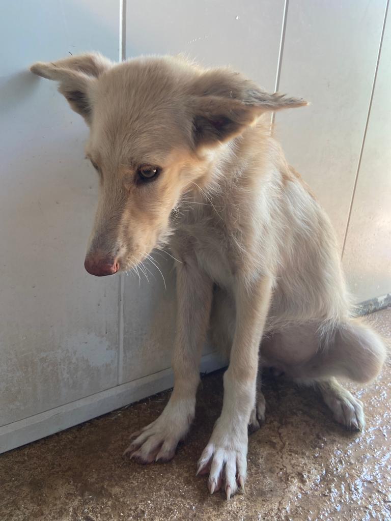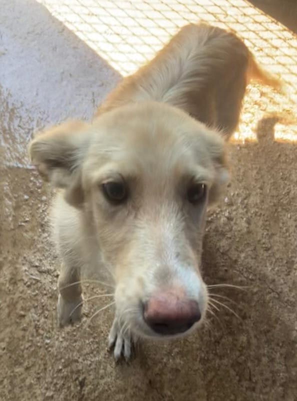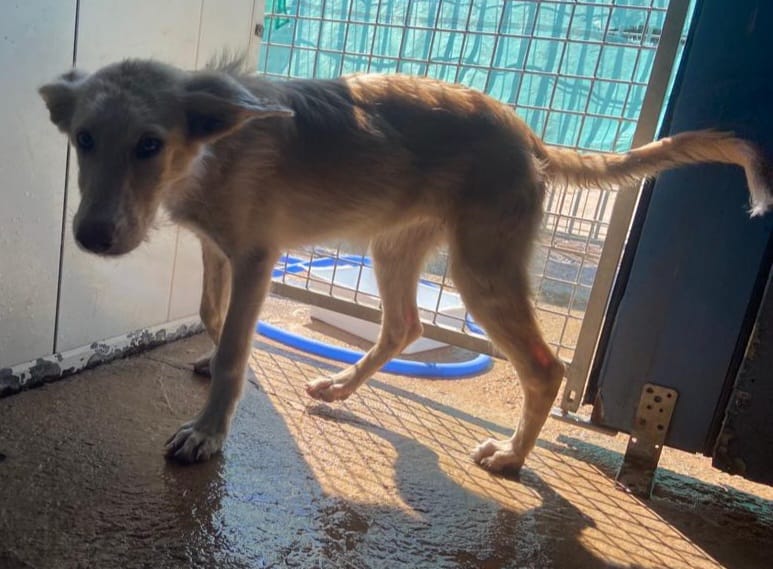 Es una preciosa cruce de podenca que estaba abandona en el campo de Puertollano.