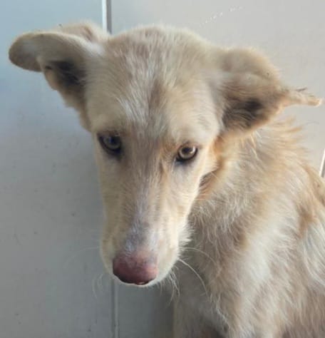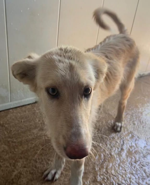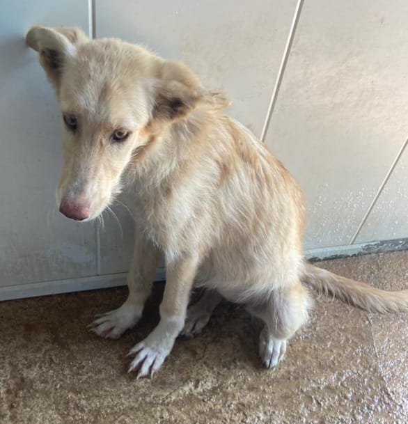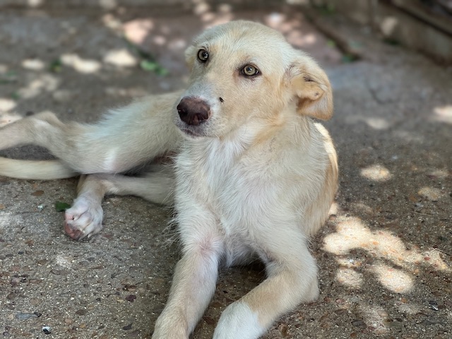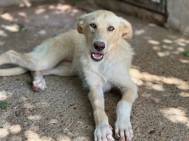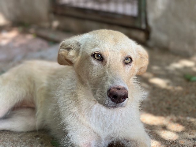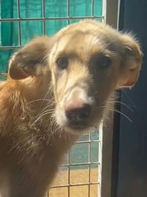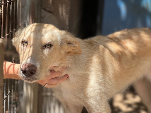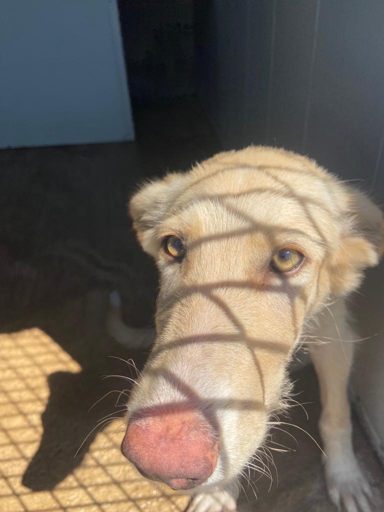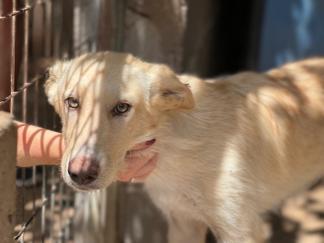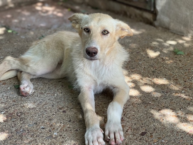 Es una preciosa cruce de podenca que estaba abandona en el campo de Puertollano.