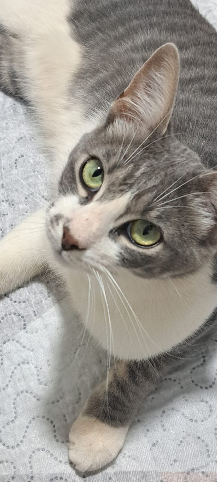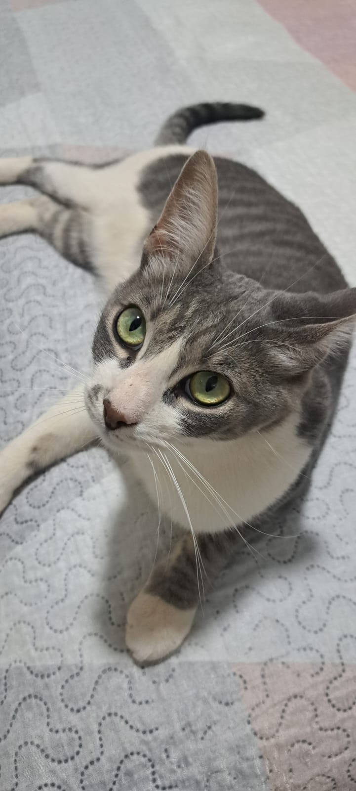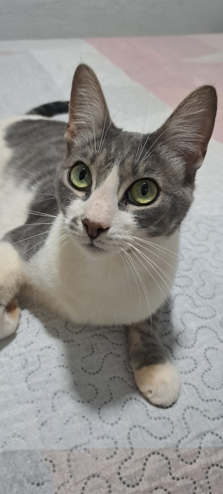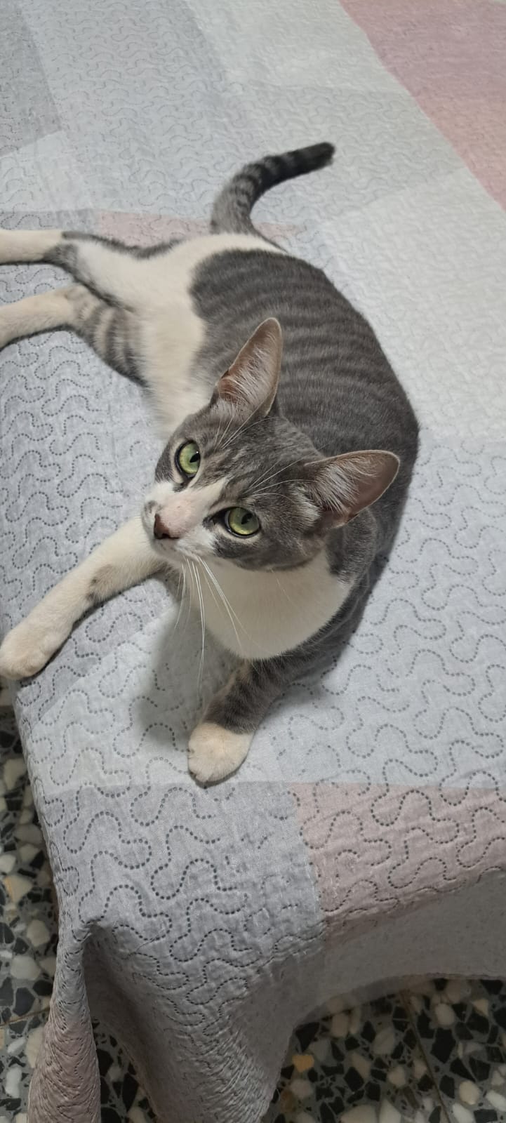 BOMBON (macho )el más bueno y tranquilo y le encanta los humanos, es gato de sofá y te sigue a todos lados y le encanta los mimos.