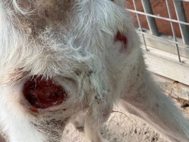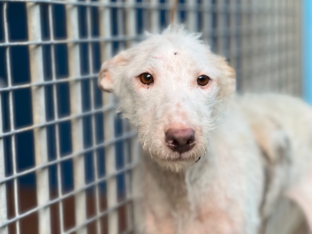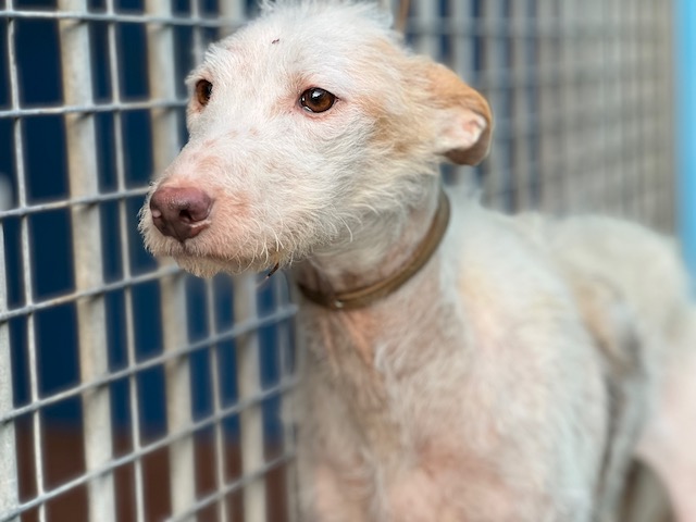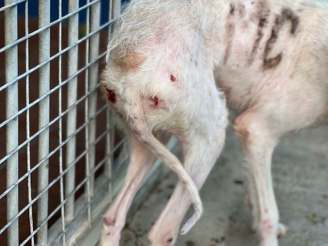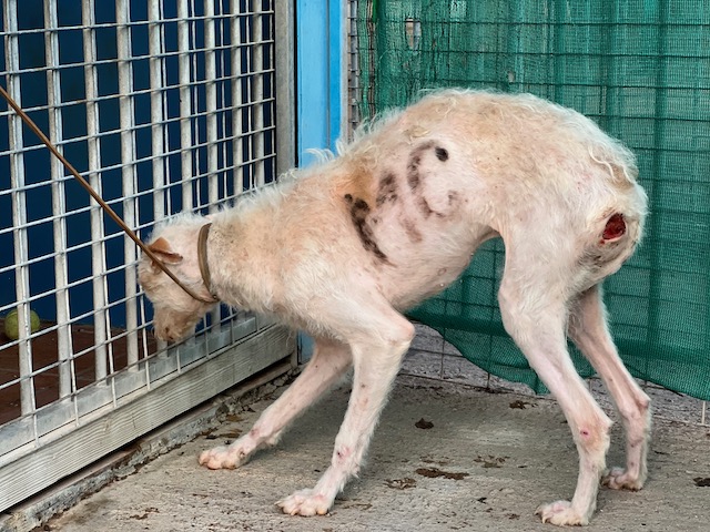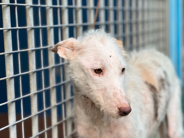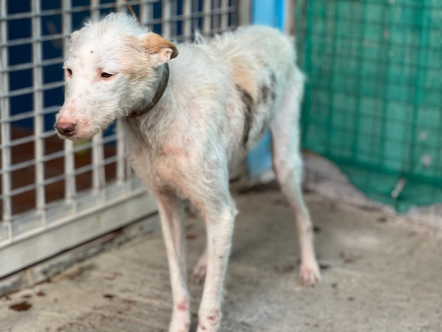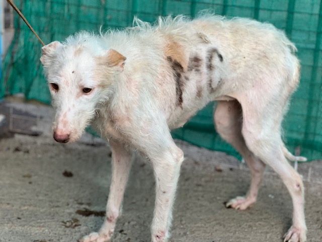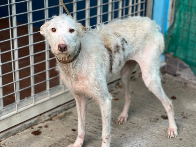 A Dolly la hemos encontrado en una zona en la que ya hemos encontrado muchos perros en estado lamentable, en esa zona vive imaginad que monstruo maltratador….